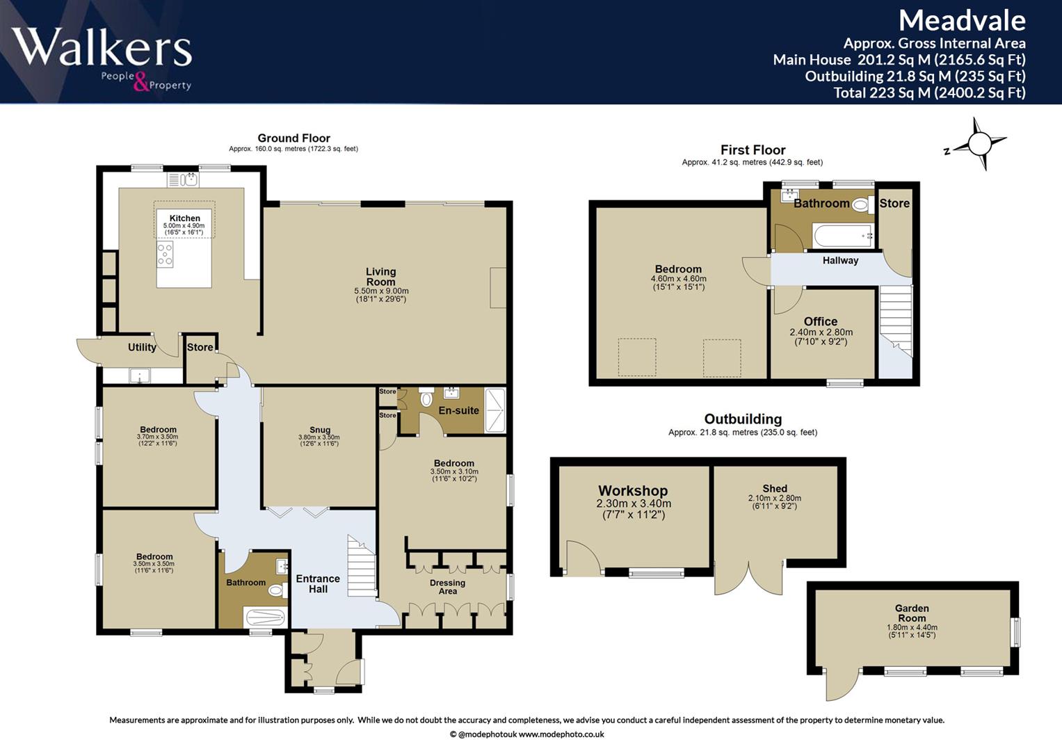 A central entrance hallway with fitted wardrobes and practical understairs storage leads into the heart of the home, where a snug provides a warm and inviting retreat. Two well-proportioned guest bedrooms are located on the ground floor, served by a newly fitted shower room. The principal bedroom also occupies the ground floor and features a generous walk-in wardrobe/dressing room alongside an elegant en-suite shower room.