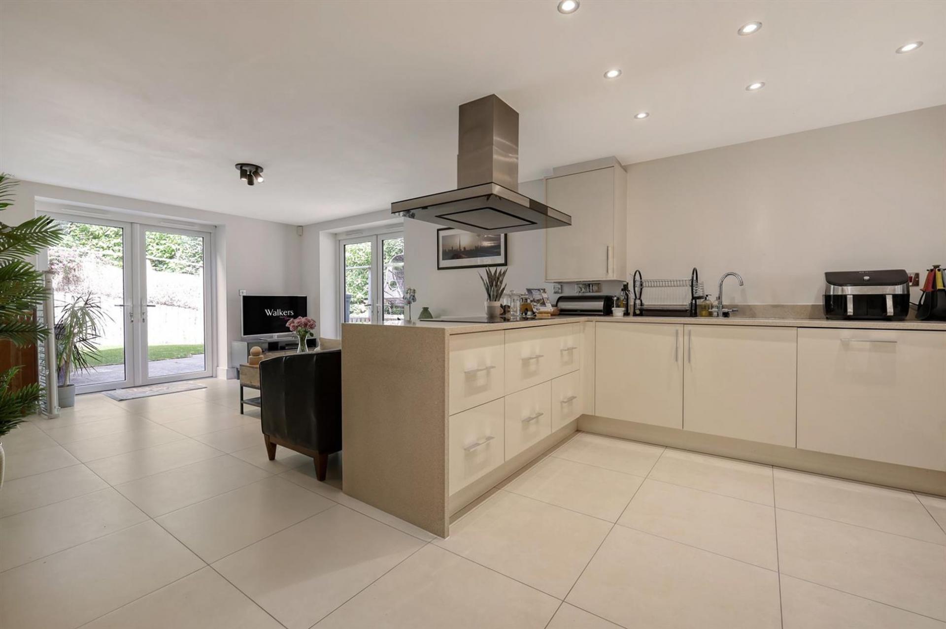 The ground floor accommodation is split-level and commences with a wide hallway with double doors to a formal lounge with dual aspect views, windows to the front and back. There is also a study/ playroom and WC on this level. Steps lead down to a beautifully fitted, open plan kitchen/dining, family room with a range of integrated appliances and a separate utility room. There are two sets of double doors leading to the rear garden.