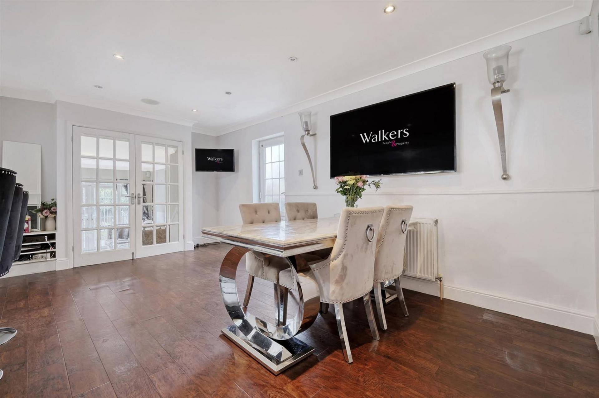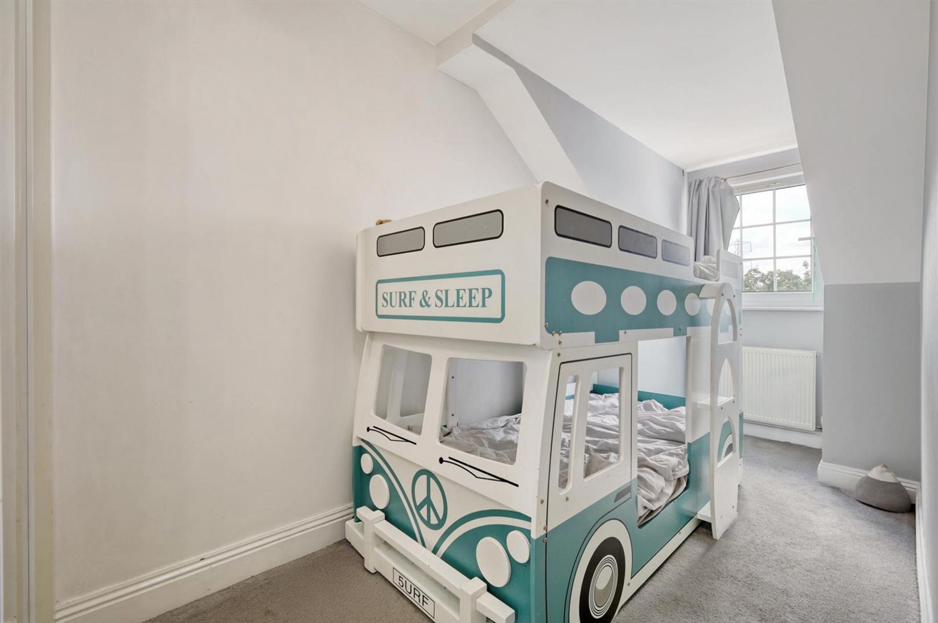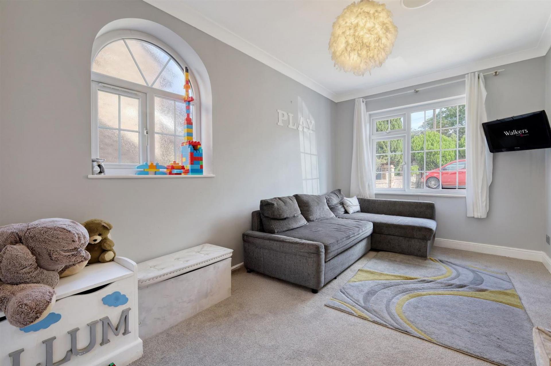 The ground floor opens with a welcoming entrance hall leading to a variety of versatile rooms. At the front, a study and playroom provide perfect spaces for working from home or family activities. The modern open-plan kitchen and dining room form the heart of the house, complete with a central island and stylish finishes. From here, double doors open into a bright and spacious living room with garden views, creating an inviting setting for relaxation or entertaining. A separate utility room and a sleek ground-floor bathroom complete the layout. Upstairs, four well-proportioned bedrooms provide excellent accommodation. The principal bedroom benefits from an en-suite, while the remaining rooms are served by a family bathroom. Each room is thoughtfully decorated, with large windows ensuring plenty of natural light.