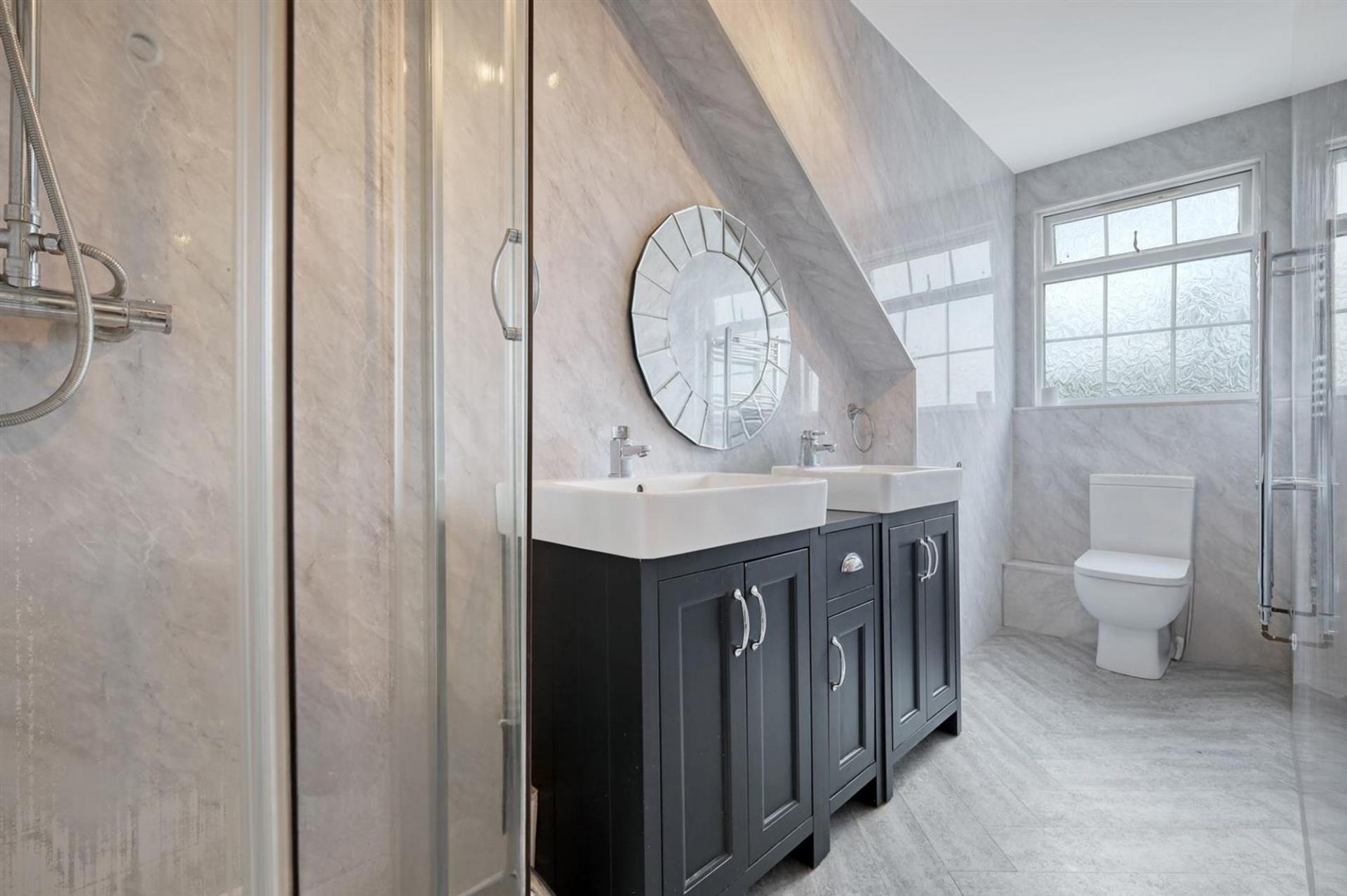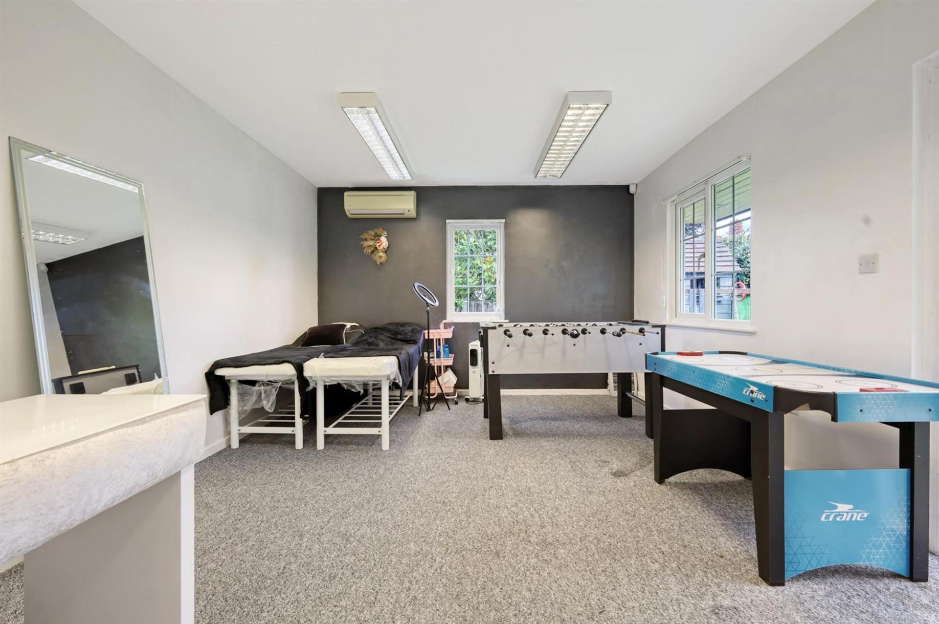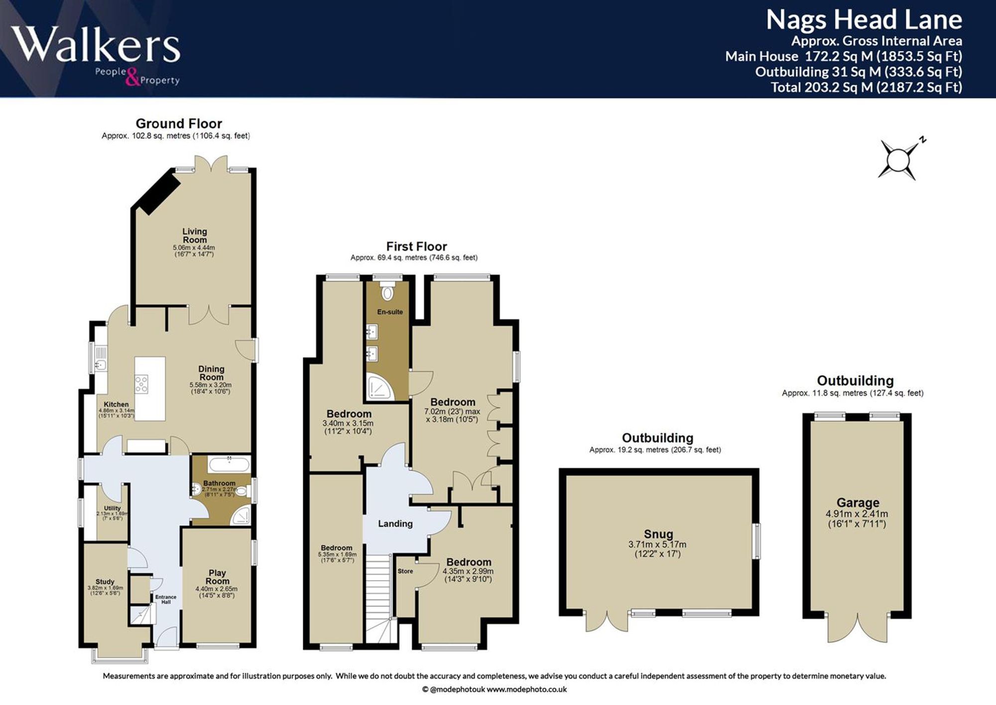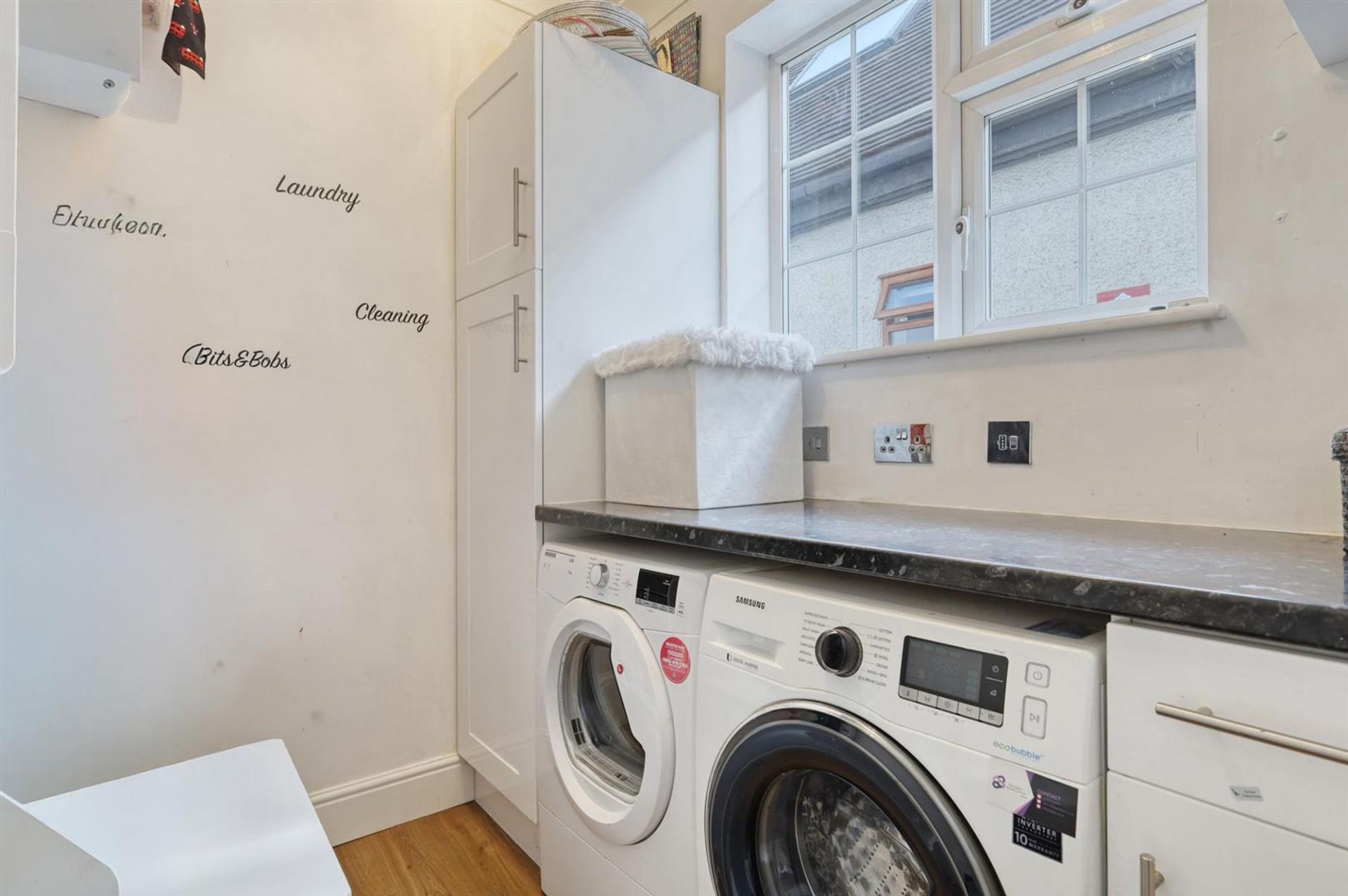 The ground floor opens with a welcoming entrance hall leading to a variety of versatile rooms. At the front, a study and playroom provide perfect spaces for working from home or family activities. The modern open-plan kitchen and dining room form the heart of the house, complete with a central island and stylish finishes. From here, double doors open into a bright and spacious living room with garden views, creating an inviting setting for relaxation or entertaining. A separate utility room and a sleek ground-floor bathroom complete the layout. Upstairs, four well-proportioned bedrooms provide excellent accommodation. The principal bedroom benefits from an en-suite, while the remaining rooms are served by a family bathroom. Each room is thoughtfully decorated, with large windows ensuring plenty of natural light.