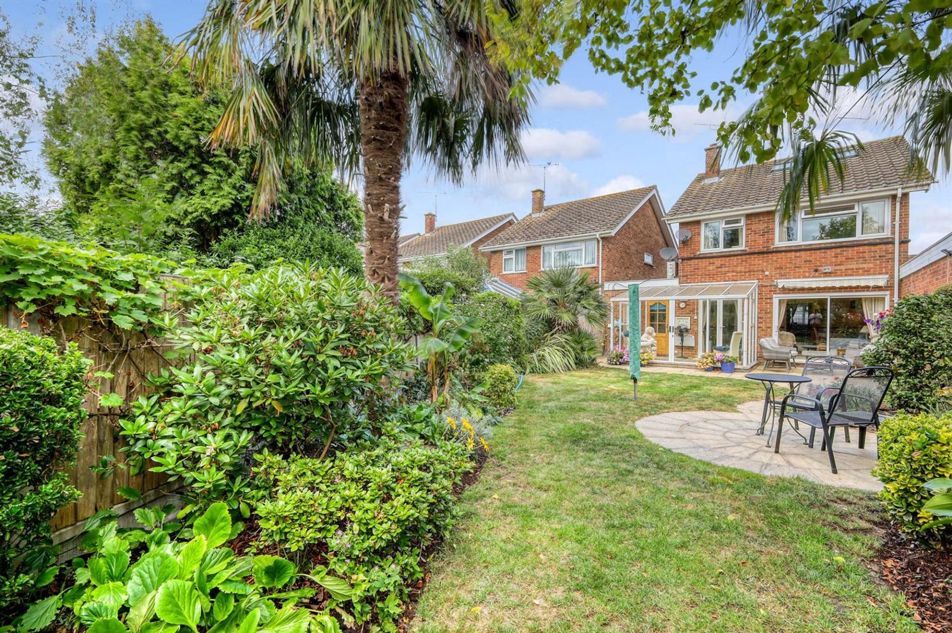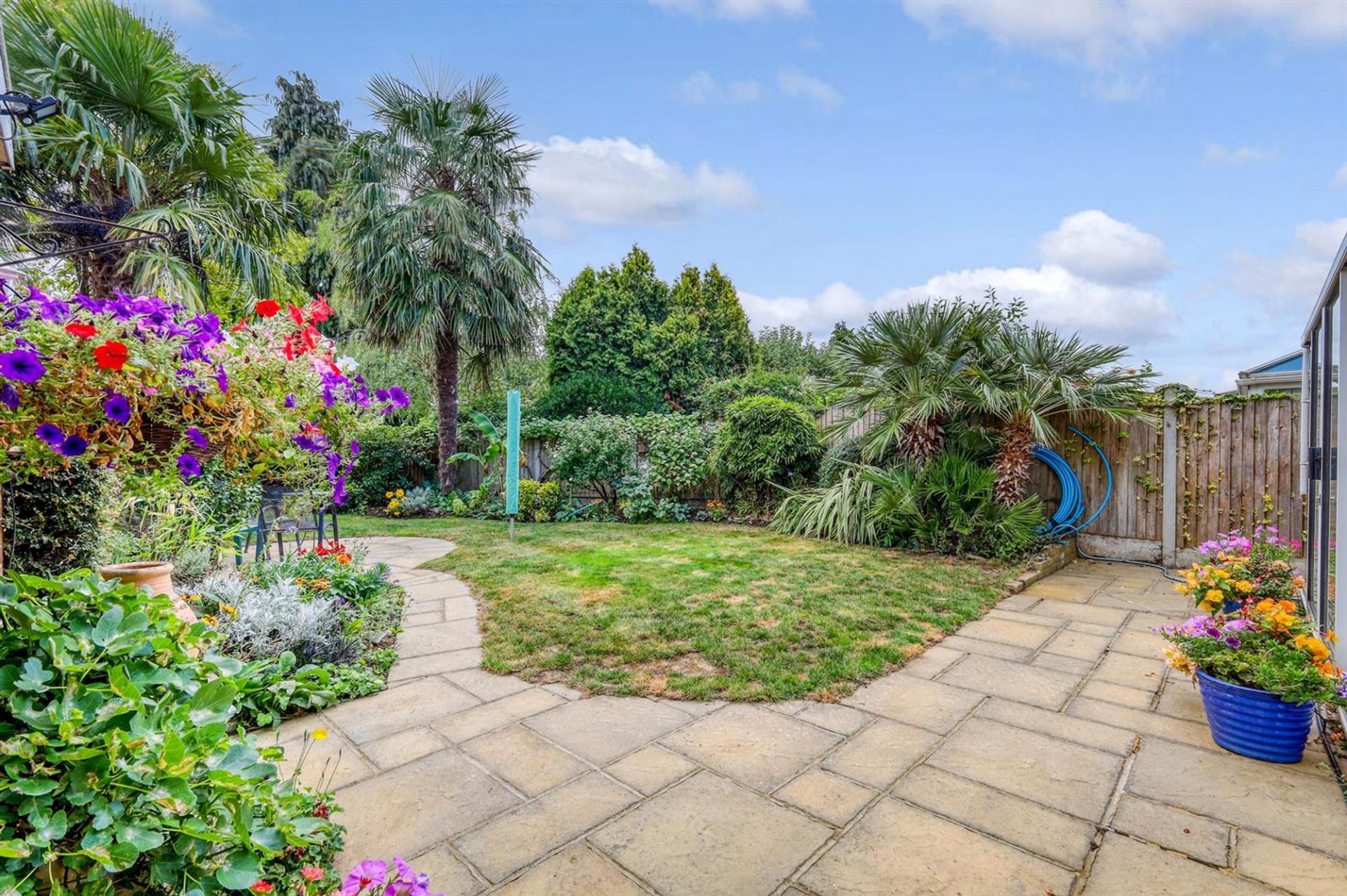 Upstairs, the home features three bedrooms. The principal bedroom benefits from air conditioning and includes a wall of fitted wardrobes, bedroom two also has air conditioning and along with bedroom three they both overlook the rear garden. The family bathroom is fully tiled and fitted with a modern white suite including a shower-over-bath. To the second floor there could be a further bedroom or office space with eaves storage and a velux window overlooking the garden. Outside, the garden has been thoughtfully planted with an array of colour, offering a tranquil space to enjoy all year round.