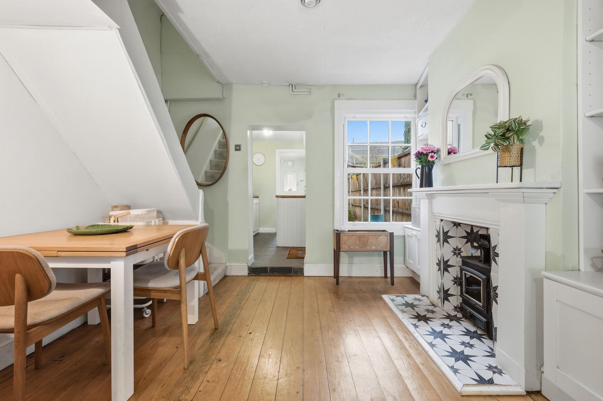 Upon entering, you are greeted by a bright and spacious living room, with a feature wood burning stove, tastefully designed to accommodate a variety of furnishing styles while maintaining a cosy and inviting feel. Beyond this, the dining room offers a naturally lit space perfectly suited for everyday meals or entertaining, flowing seamlessly into the well-appointed kitchen. The kitchen provides ample storage and work surfaces, leading on to a contemporary bathroom positioned to the rear of the ground floor.