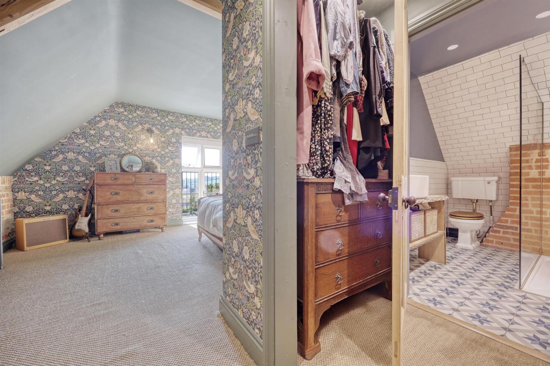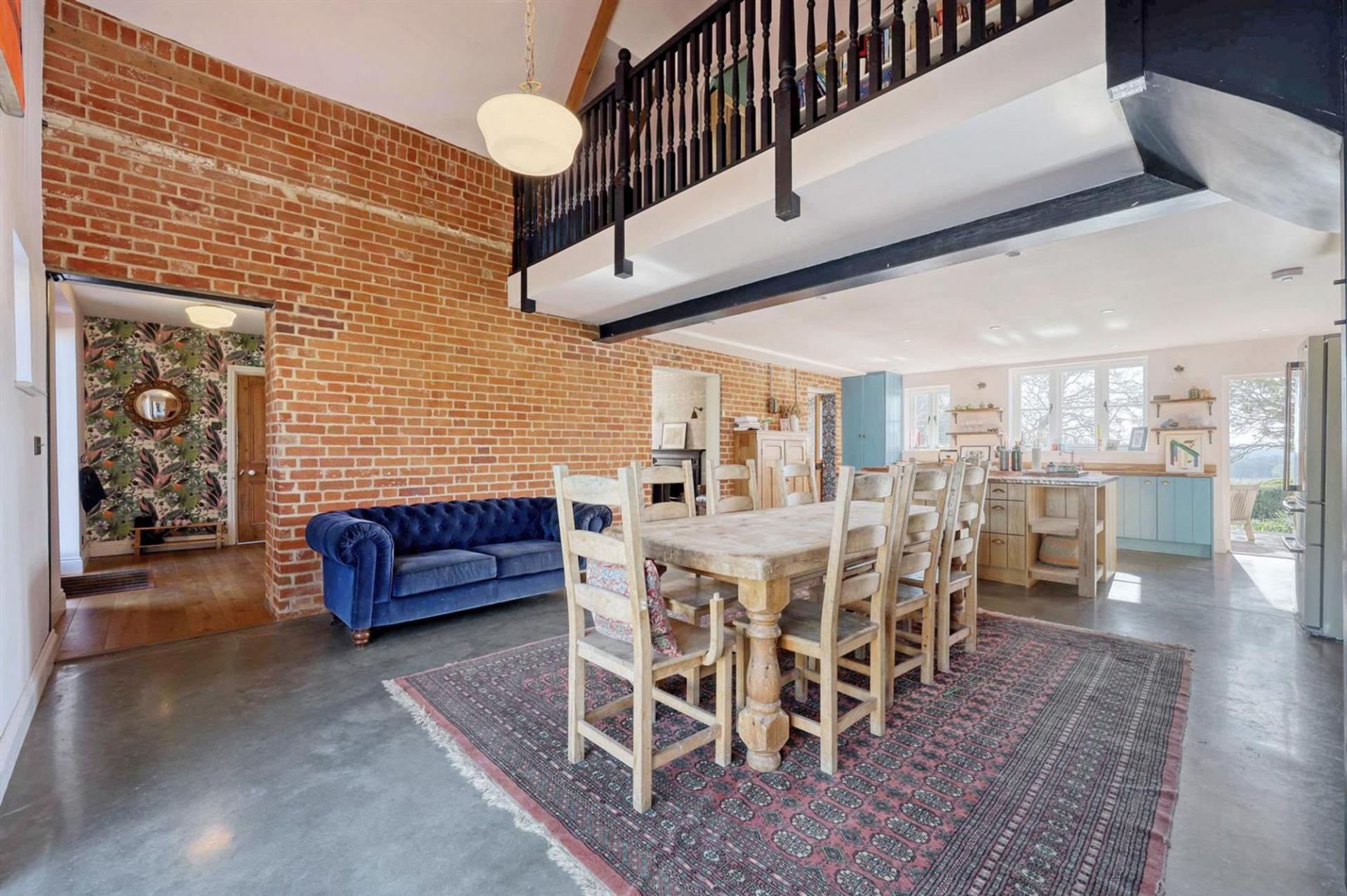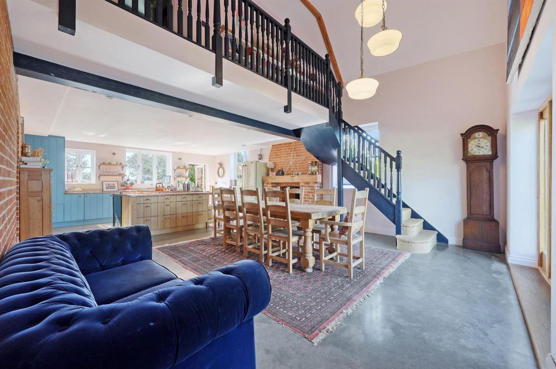 An extraordinary chance to own a piece of English heritage, this remarkable Victorian School House has been masterfully restored, blending original period details with contemporary luxury. From the moment you step through the grand oak doorway, you're met with a breathtaking sense of space and history. The dramatic open-plan living area stuns with double-height ceilings, a bespoke kitchen framed by exposed brickwork, a gleaming Aga, and a polished concrete floor, all crowned by the sweeping galleried staircase. Every corner of this home speaks of craftsmanship, elegance, and a respect for its historic soul.
