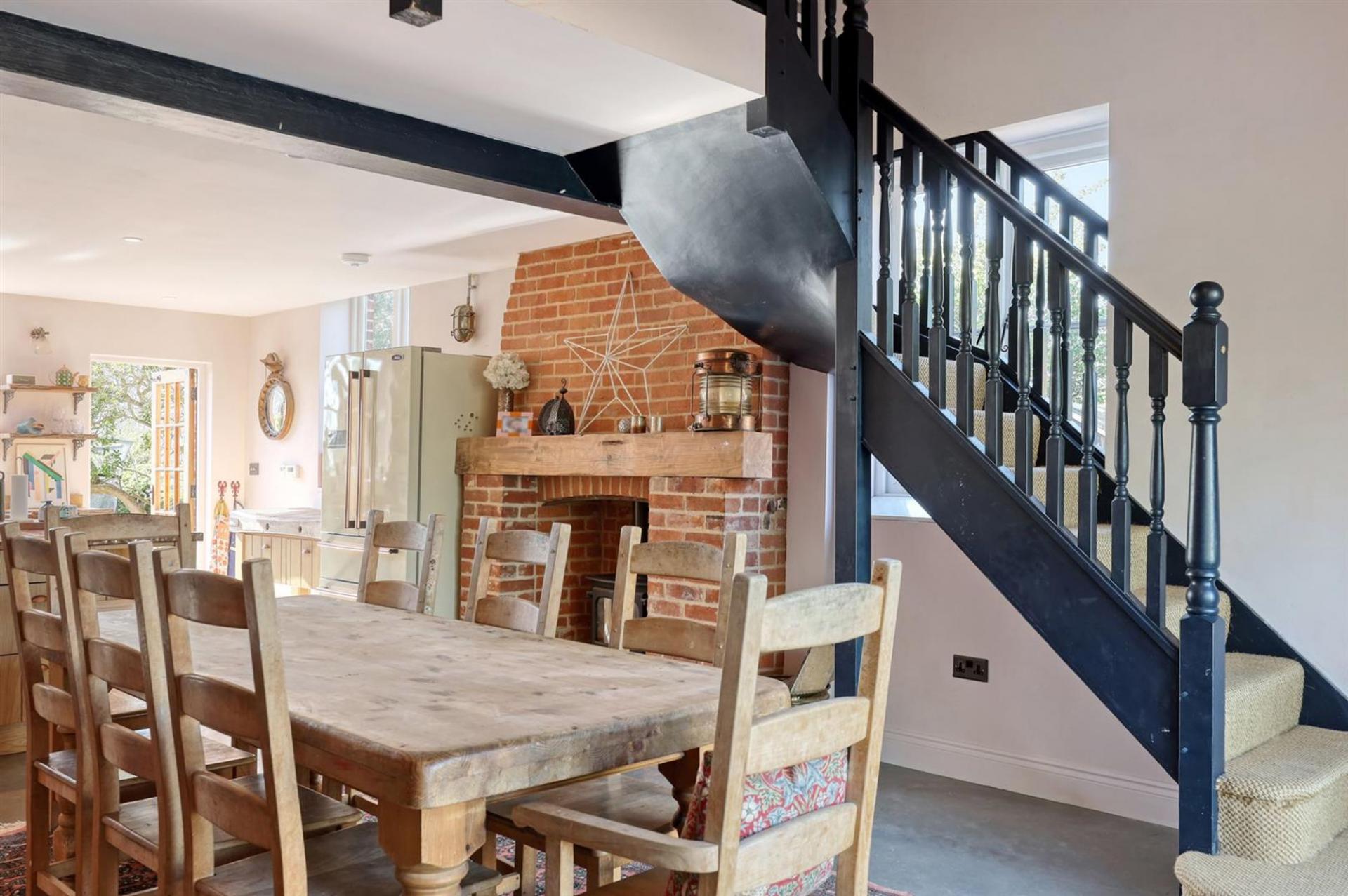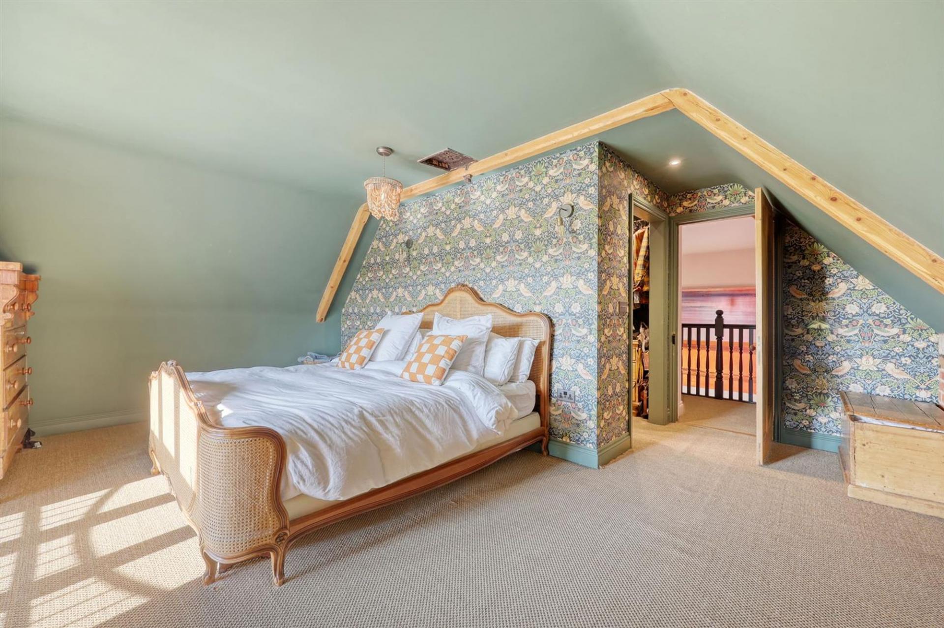 The ground floor unfolds around a breathtaking open-plan heart, a space designed for entertaining, relaxing, and soaking in the uninterrupted rural views. A cosy lounge with an original fireplace invites you to unwind, while a handy utility room with stable door and a chic downstairs WC add practicality. Upstairs, the gallery landing leads to four charming bedrooms, the principal suite offers an indulgent escape, with a dressing room and elegant en-suite. Two further double bedrooms and a characterful single room share a stylish family bathroom, all capturing the home’s unique charm.