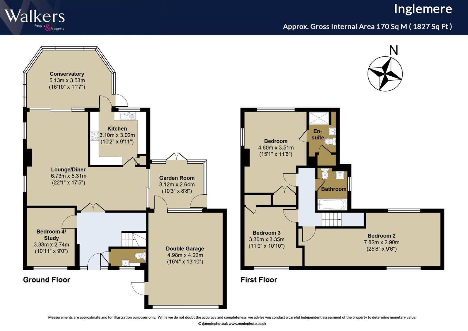 Upon entering the property, you are greeted by a spacious entrance hall leading to the generous lounge with a log-burning stove, perfect for cosy family evenings. The ground floor also includes a dining area, a functional kitchen, an additional reception room that could serve as a home office or playroom, a bright conservatory, and a convenient ground floor W/C. The integral garage provides additional storage and parking options. Upstairs, three double bedrooms offer plenty of space, with the main bedroom featuring an en-suite bathroom. A well-appointed family bathroom serves the remaining bedrooms.