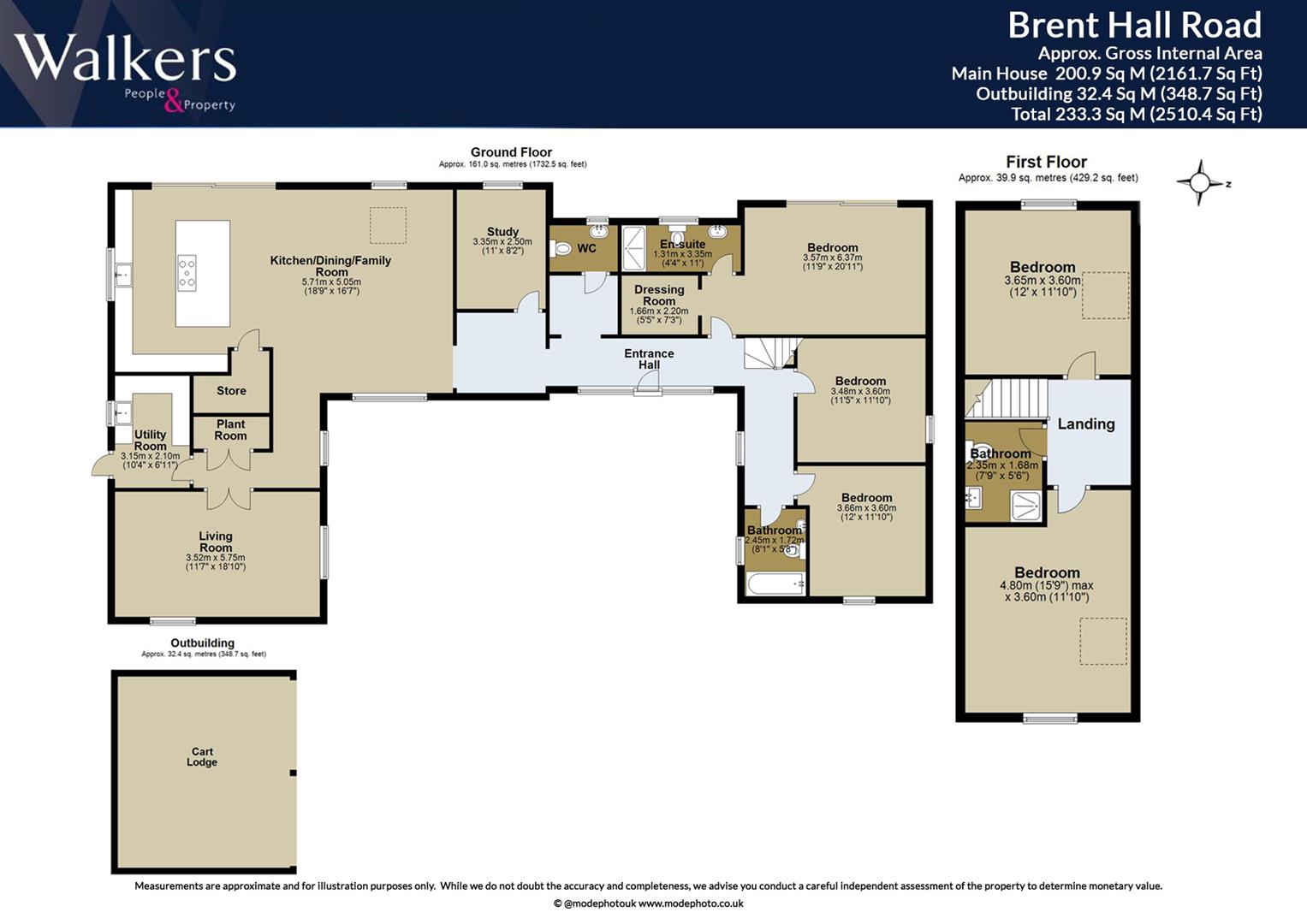 The master suite is a sanctuary of comfort, complete with an ensuite bathroom, dressing room, and patio access. Two additional double bedrooms, a stylish family bathroom, and a guest WC complete the ground floor.