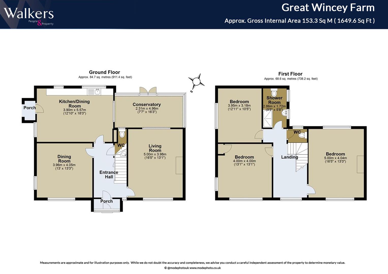 Great Wincey Farmhouse is a rare gem waiting for transformation. This beautiful Georgian-style home built in the 1950s offers an exciting opportunity for buyers to create their dream home on approximately 1.1 acres of land (subject to survey). Boasting three generously sized double bedrooms, two reception rooms, and a kitchen, the property features impressive views from every window. While in need of modernisation, the farmhouse's potential is undeniable, making it a fantastic renovation project for those with vision.