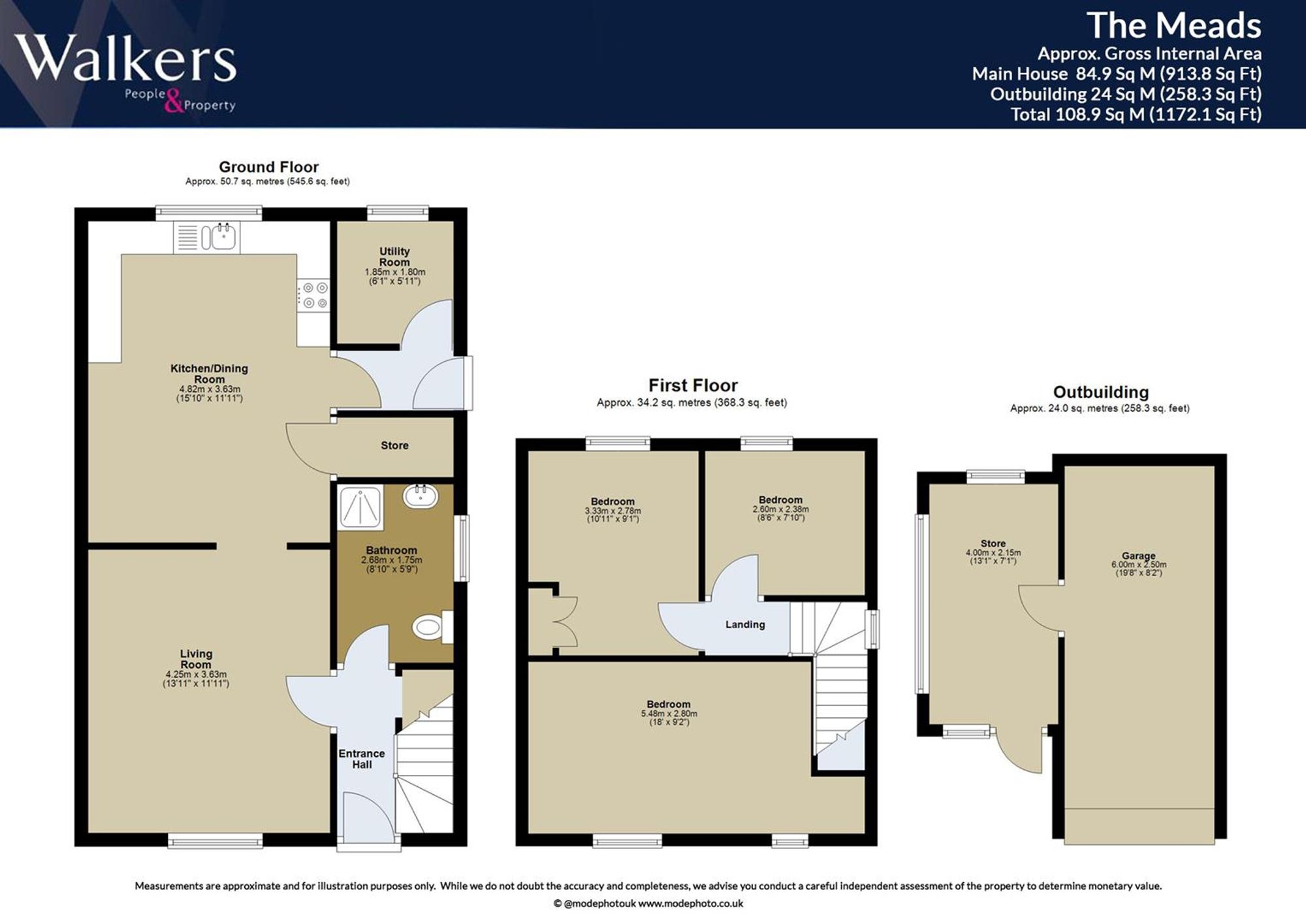 The kitchen is again of a good size, with a window overlooking the rear garden with a separate utility room and side door to the garden. The ground floor culminates with a downstairs bathroom. To the first floor there are three very good sized bedrooms.