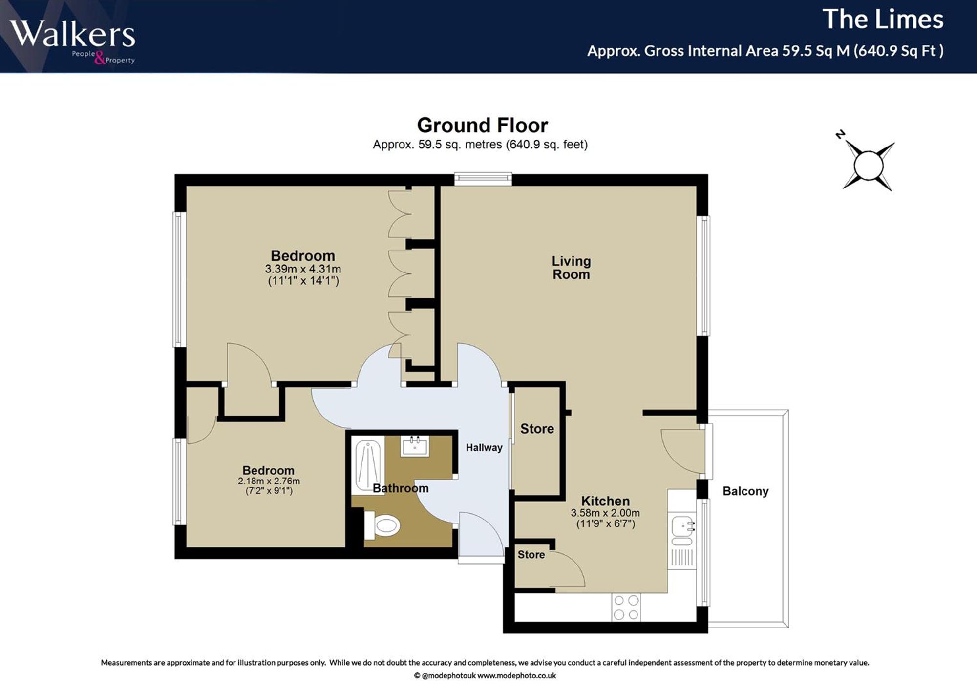 The separate, well-appointed kitchen offers a range of fitted units, integrated appliances, and granite worktops. Two large double bedrooms each benefit from built-in storage, ensuring a clutter-free environment. The modern bathroom, tastefully finished, completes the well-planned layout.