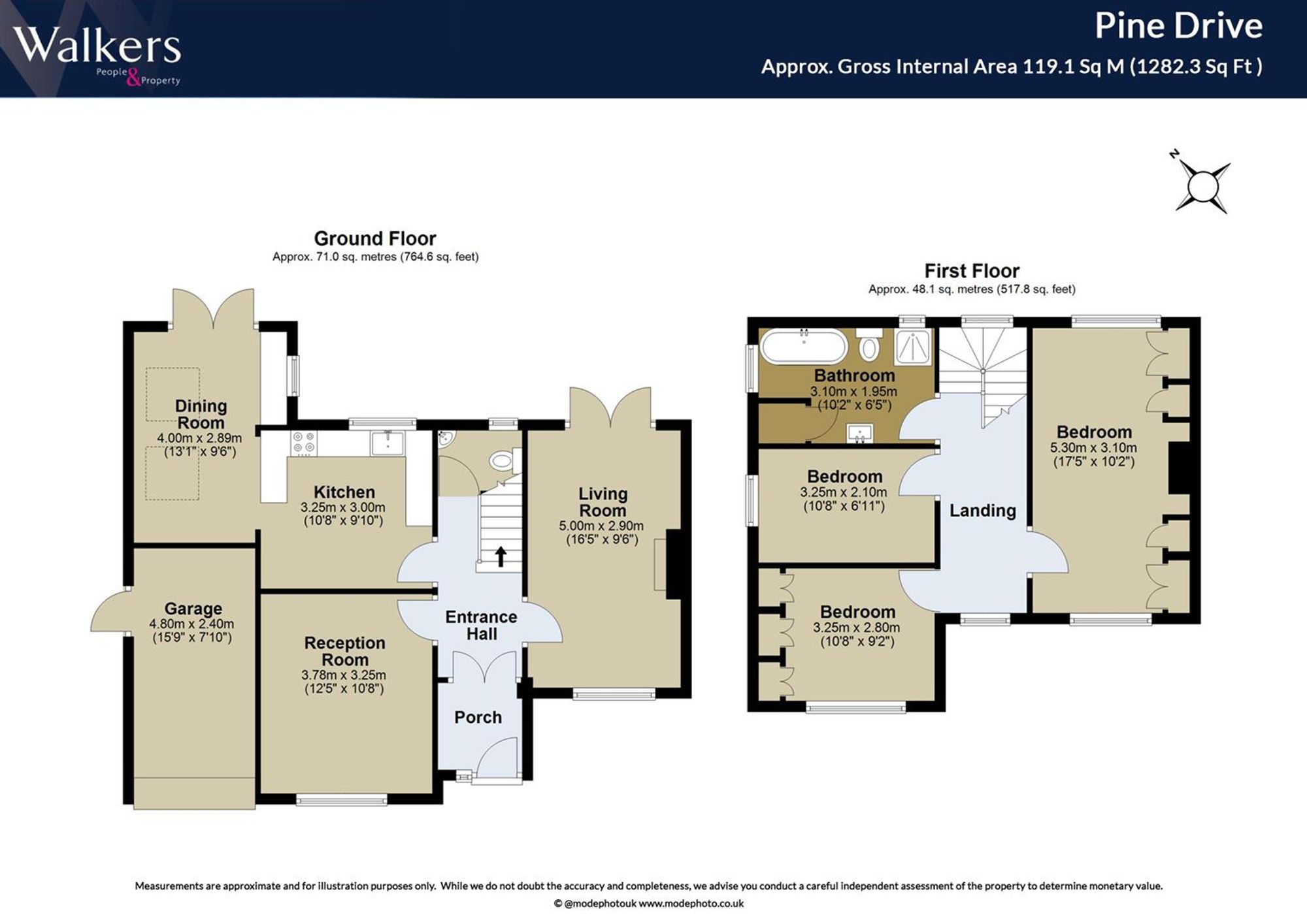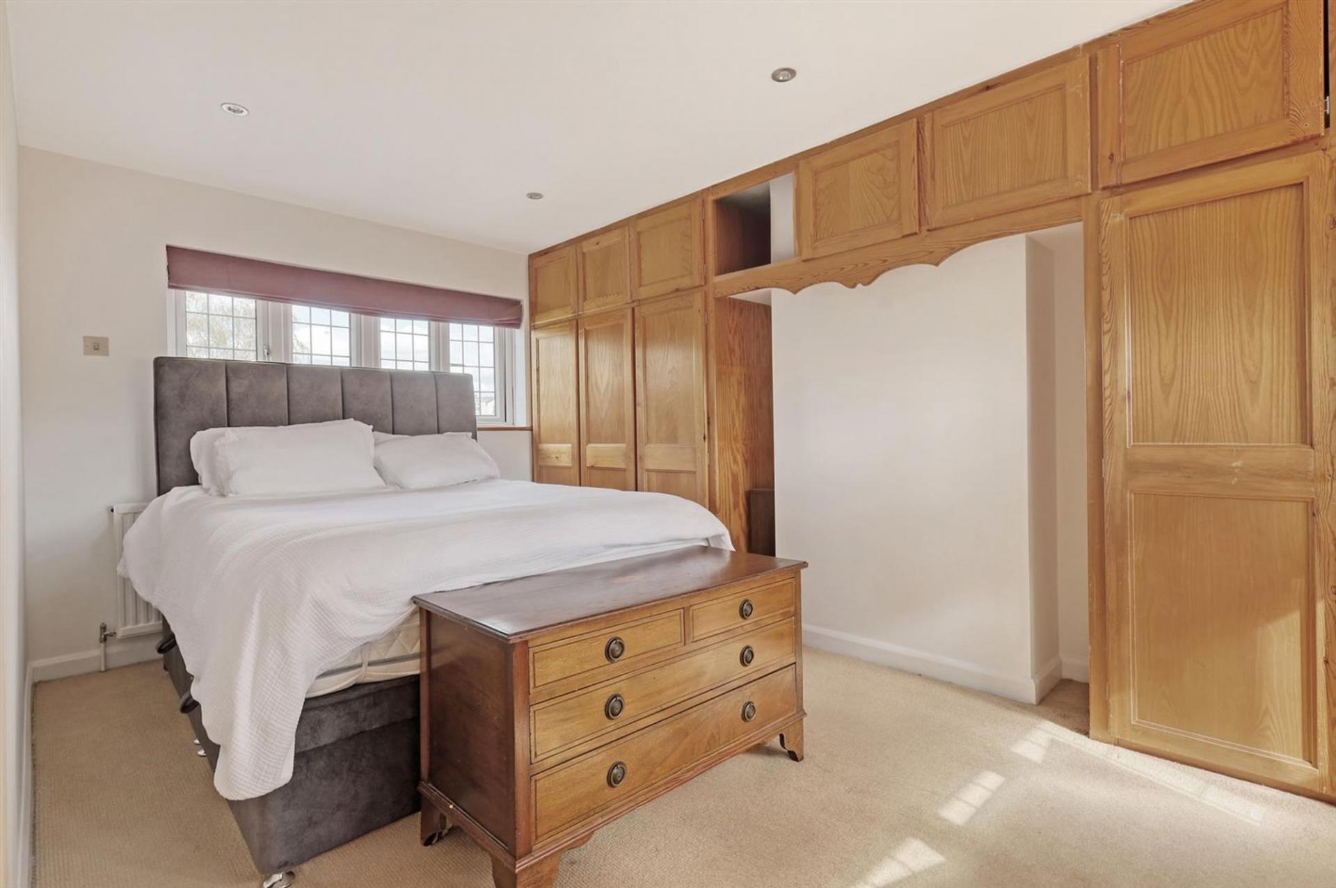 Upstairs, the first floor offers three well-proportioned bedrooms. The principal bedroom boasts fitted wardrobes, while two further doubles provide excellent family flexibility. A family bathroom with both bath and separate shower completes the accommodation.