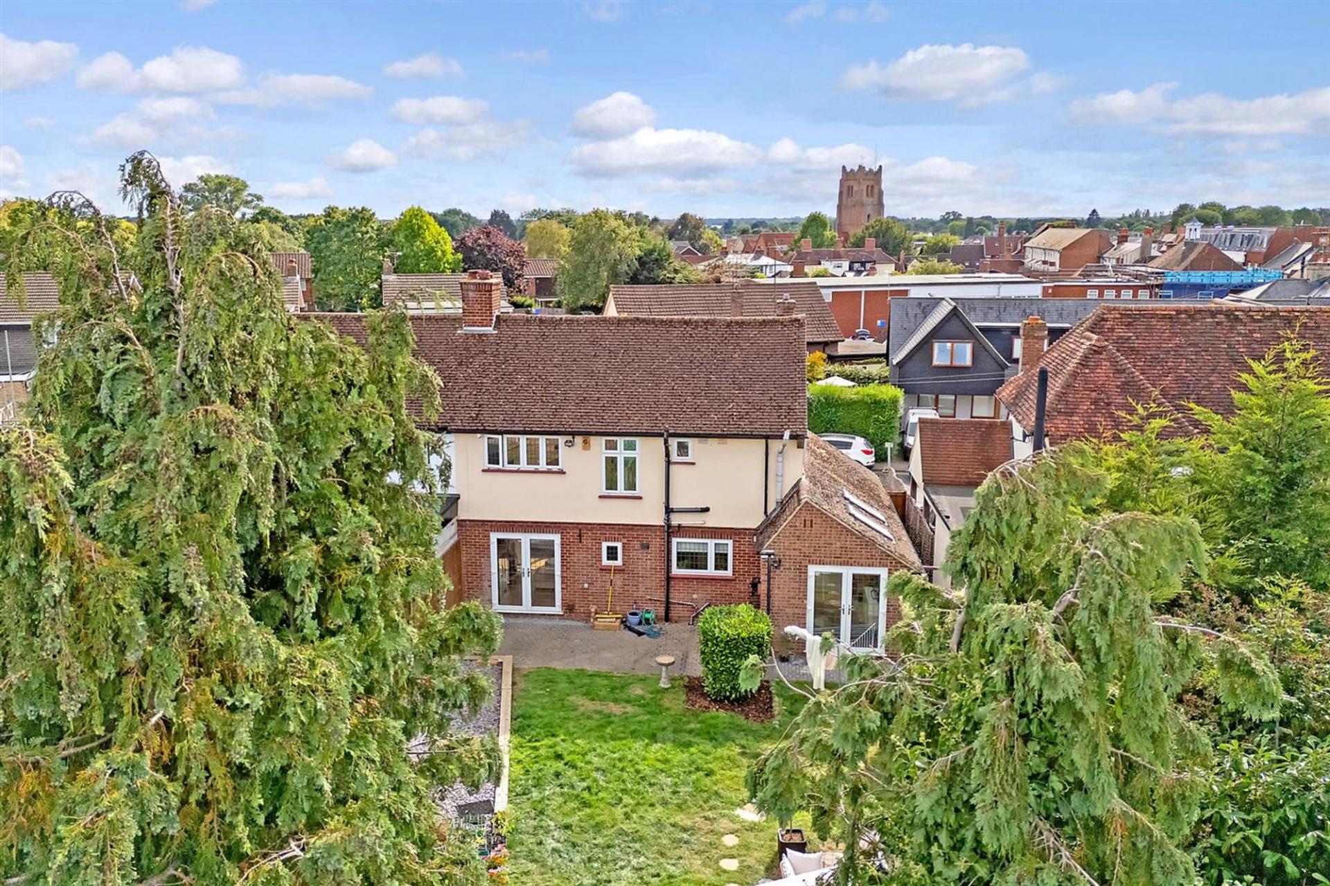Externally, the property enjoys a smart frontage with off-street parking, garage, and side access. The rear garden is a particular feature, extending to a large patio and lawn with mature trees and shrubs.
