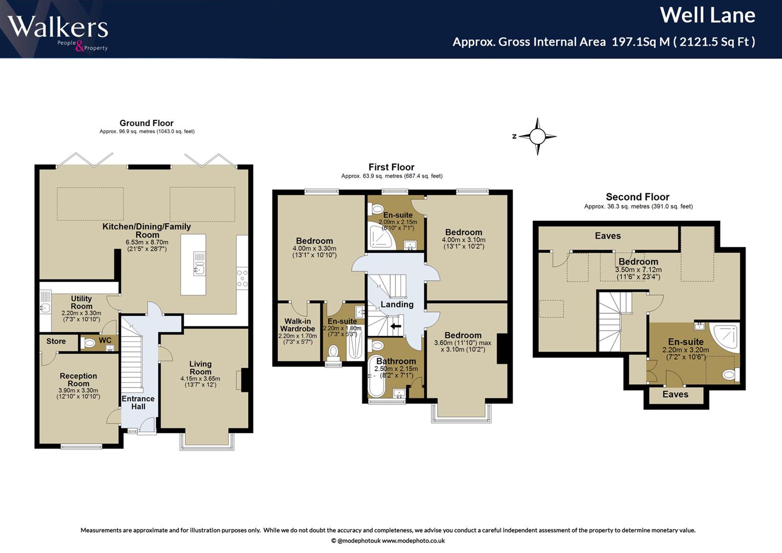 The first floor includes three double bedrooms and three bathrooms, two of which are en suites.
