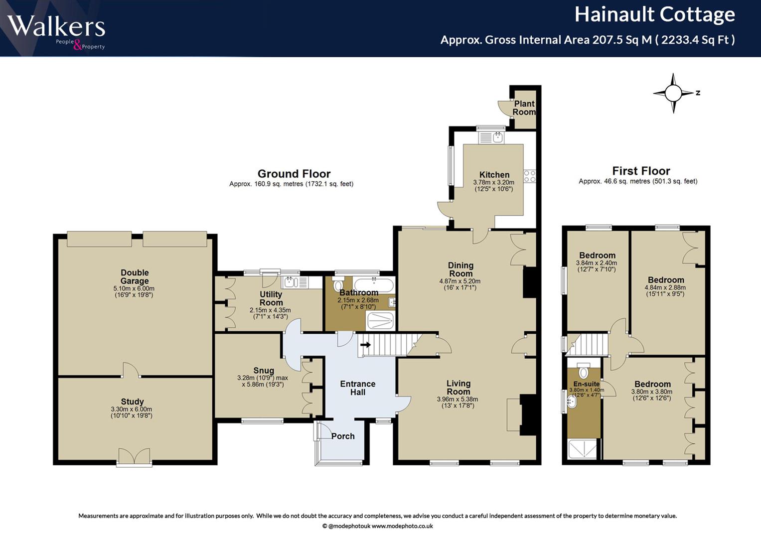 Upstairs, the three double bedrooms are flooded with natural light, with the main suite offering an en-suite shower room and fitted wardrobes.