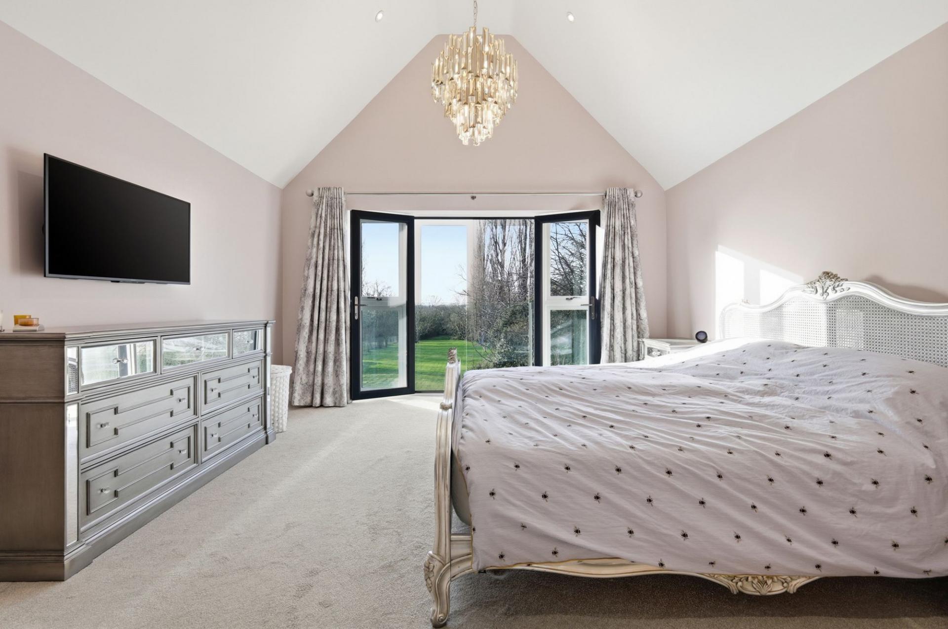 Externally, the property continues to impress with a large, paved outdoor seating area, overlooking the lawned rear garden which enjoys a high degree of privacy and far-reaching views. A detached double garage is complemented by a separate outbuilding currently arranged as a gym, offering excellent additional space for leisure or home working.
