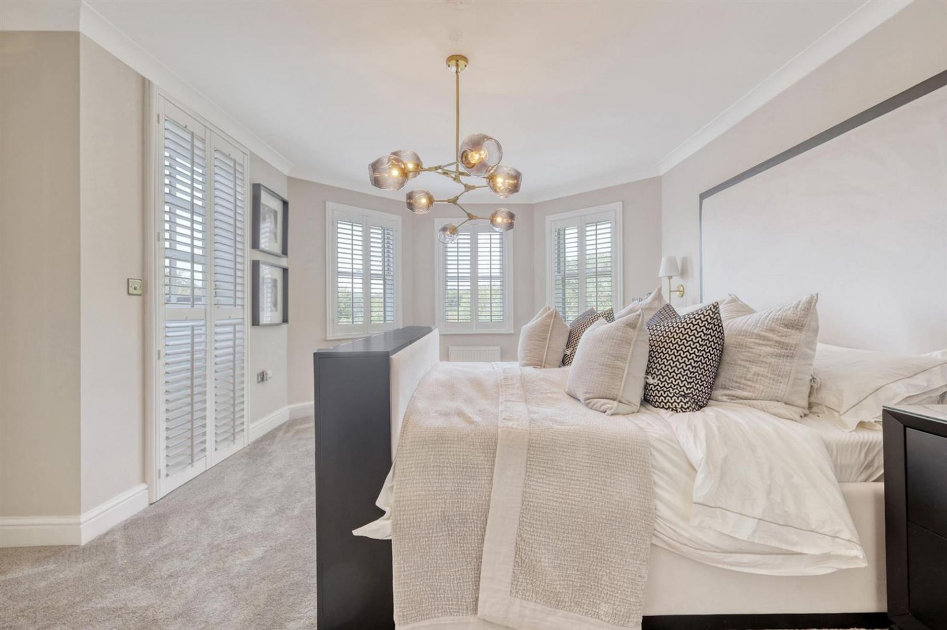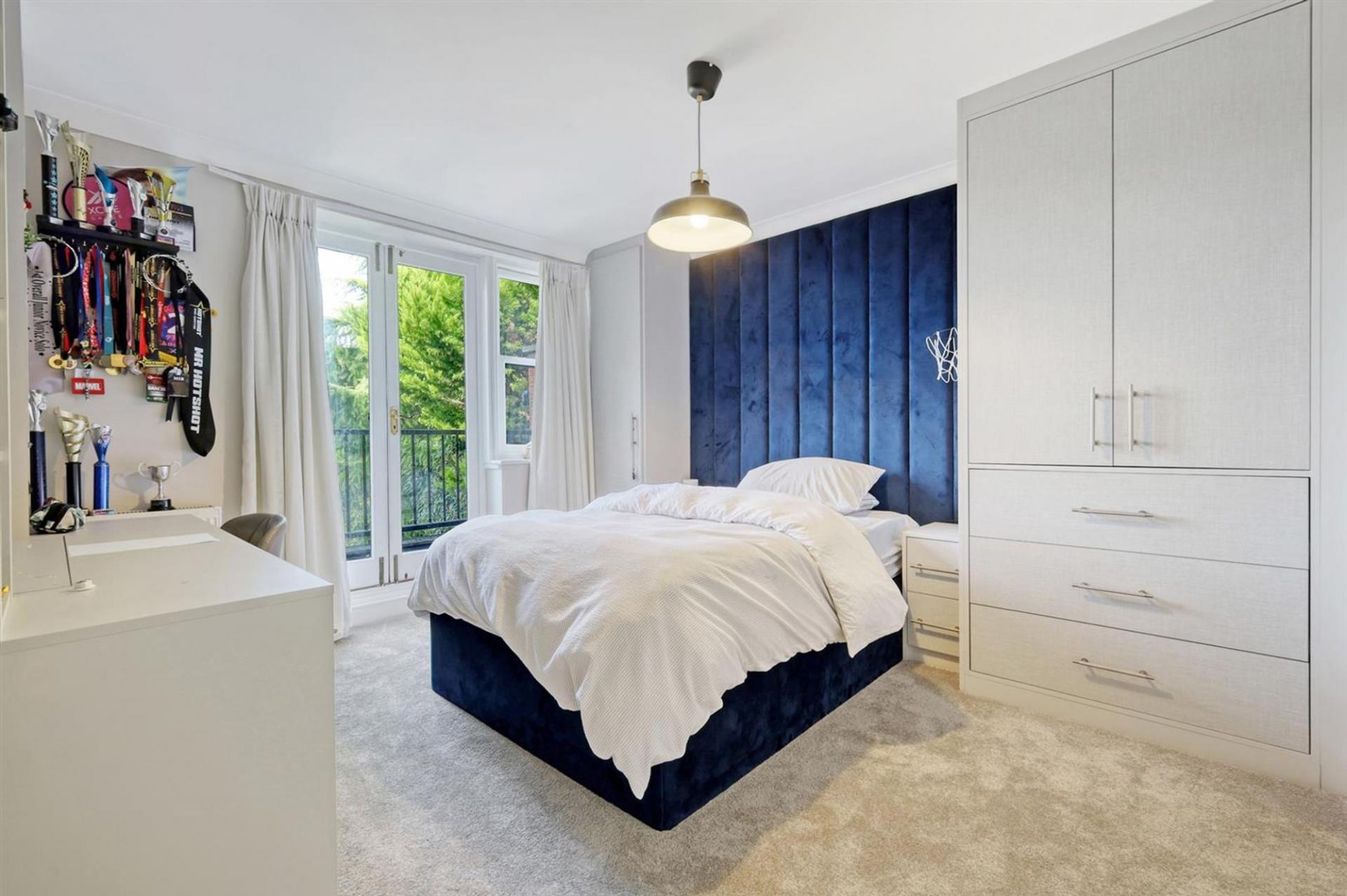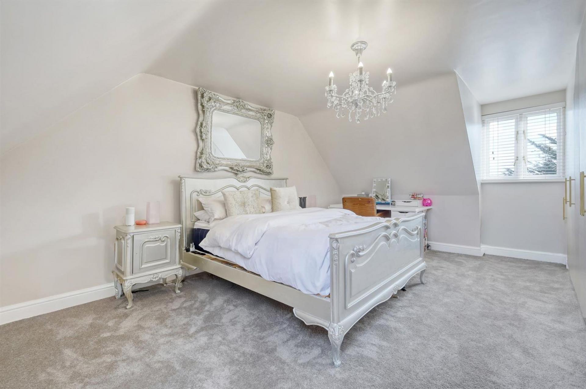 The entire top floor is dedicated to the principal suite, offering a sense of privacy and luxury. This superb space includes a large bedroom, a bespoke dressing area with fitted wardrobes, and a beautifully appointed bathroom with both bath and separate shower.