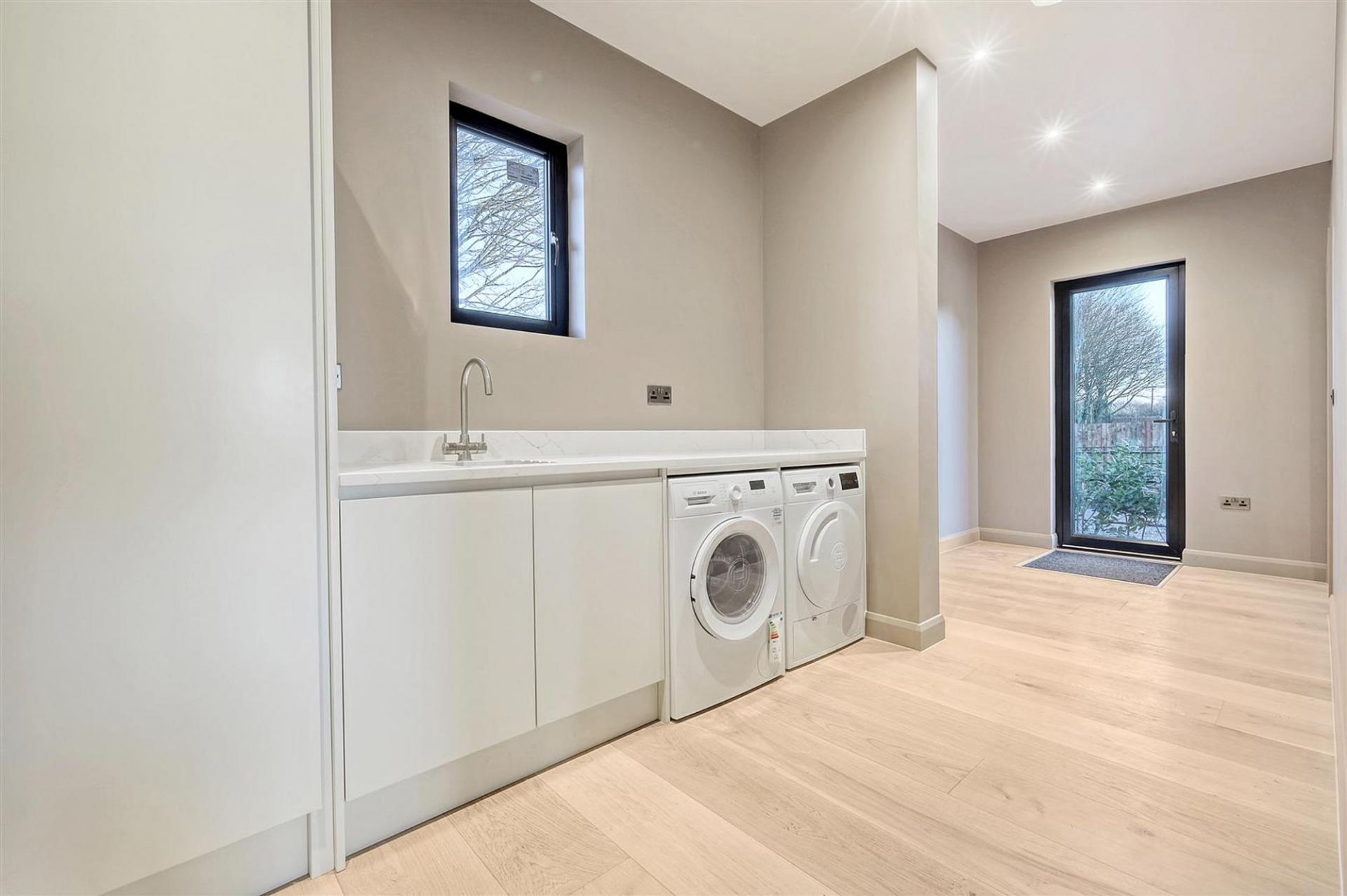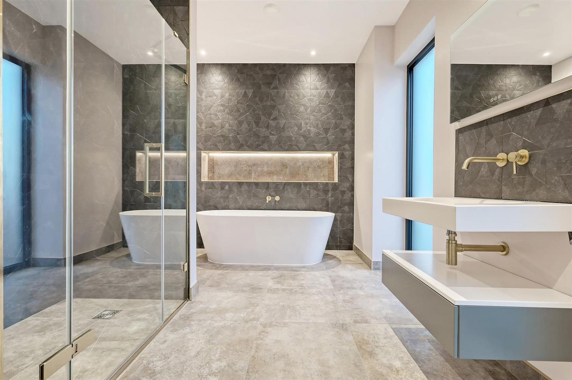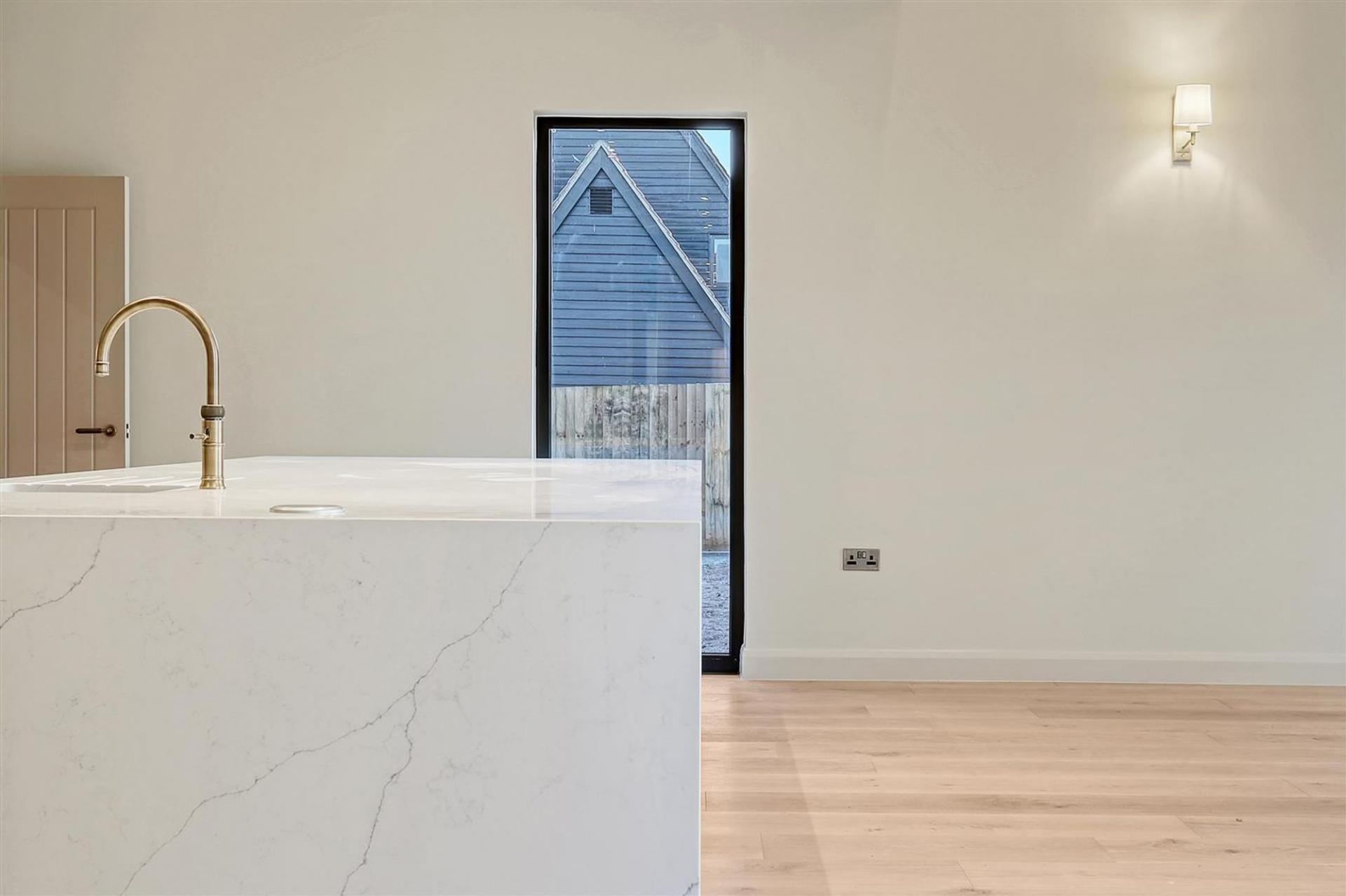 The ground floor welcomes you with a sleek resin-floored entrance hall that flows seamlessly into a breathtaking open-plan kitchen, dining, and living space. Large glazing frames the idyllic garden views and floods the home with natural light, while sliding doors allow for effortless indoor-outdoor living.