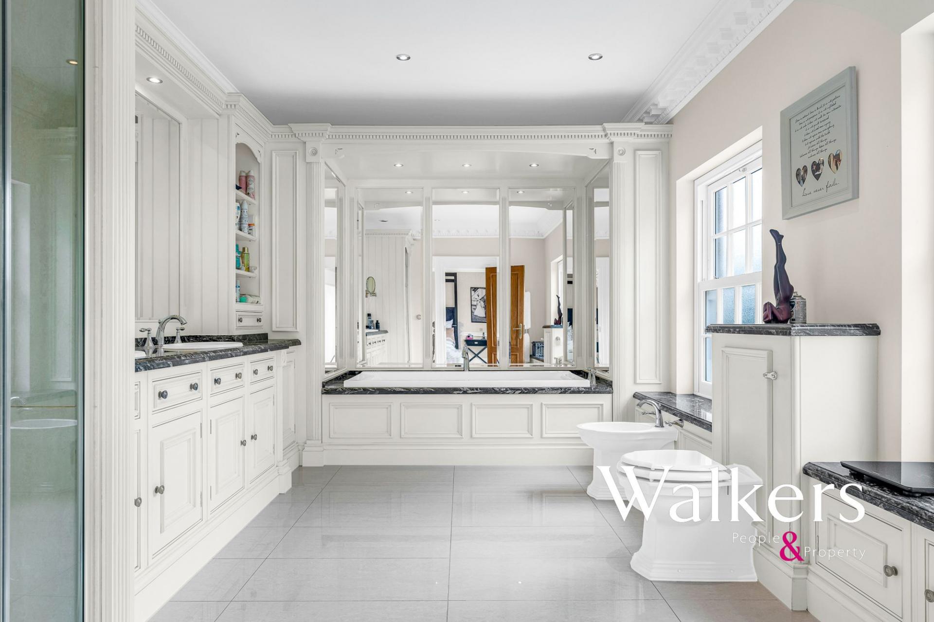 The first floor is arranged around a grand landing and provides excellent bedroom accommodation. The principal suite is particularly impressive, featuring a generous bedroom, a substantial dressing room, and a well-appointed en-suite bathroom. There are three further bedrooms on this floor, each benefitting from en-suite facilities.