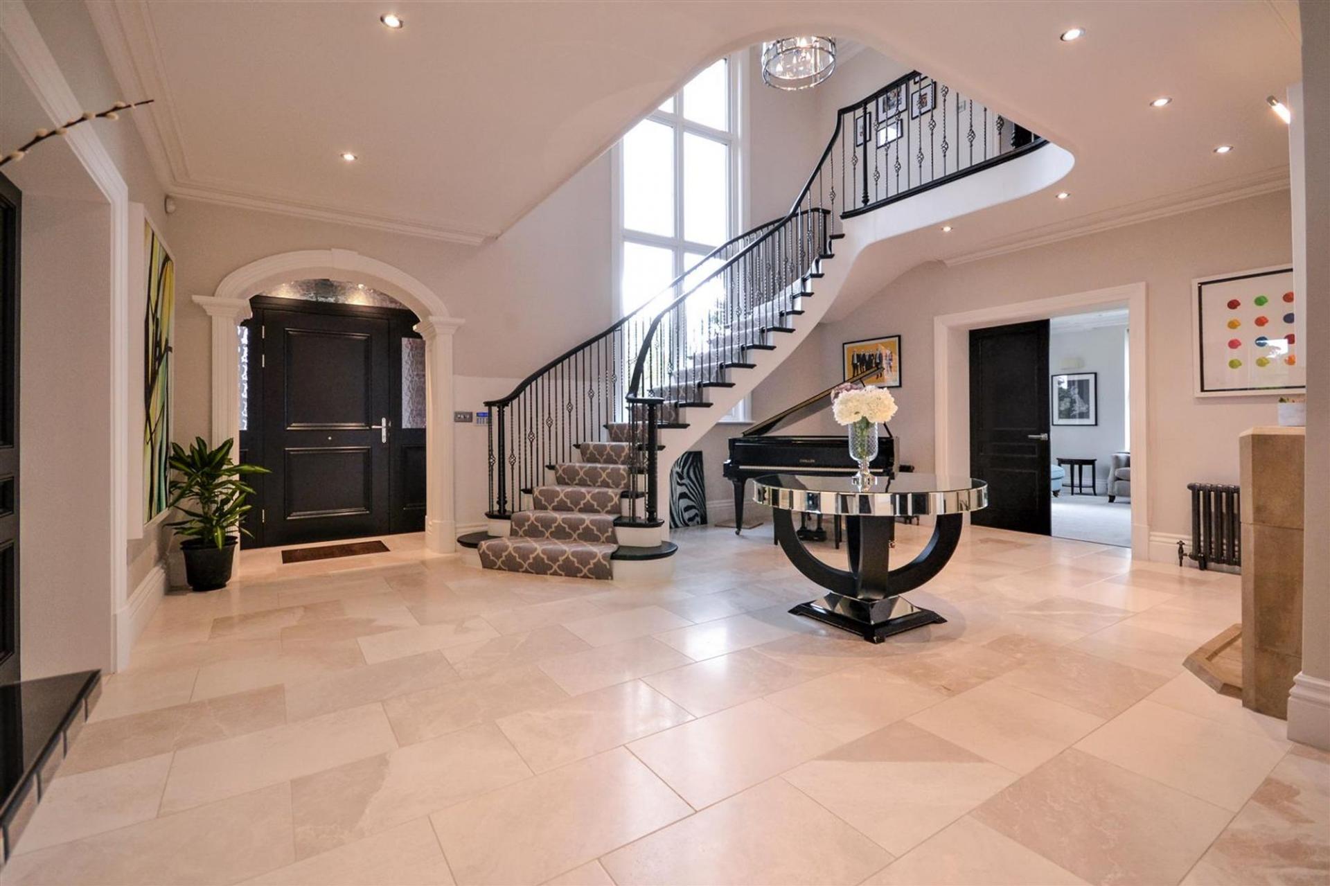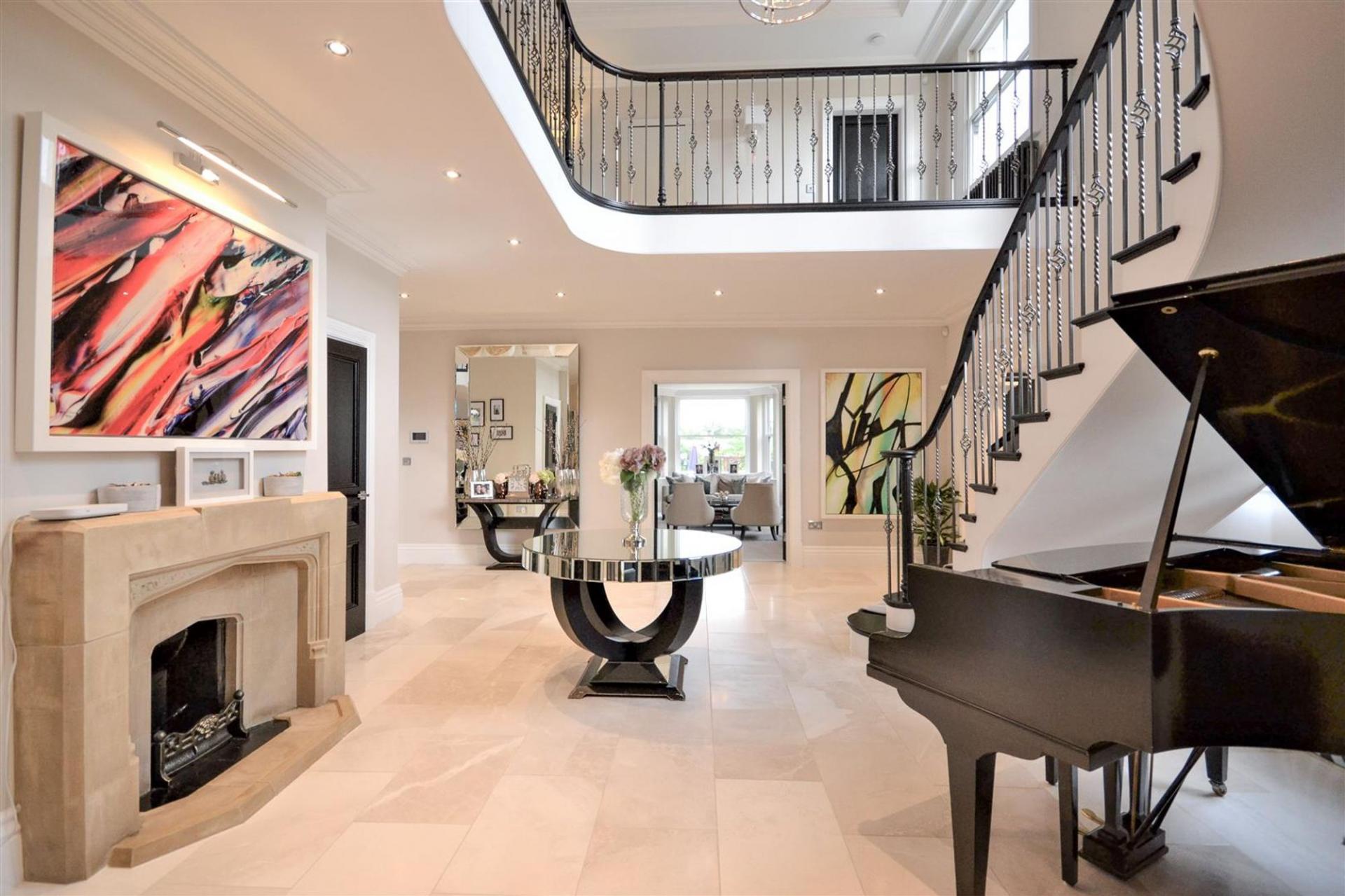 As you step through the entrance, you're greeted by an impressive reception hallway with a grand gallery landing. The ground floor features three spacious reception rooms, complemented by a large, modern kitchen-family room, perfect for entertaining. Additionally, there's a dedicated home office and a convenient utility room.