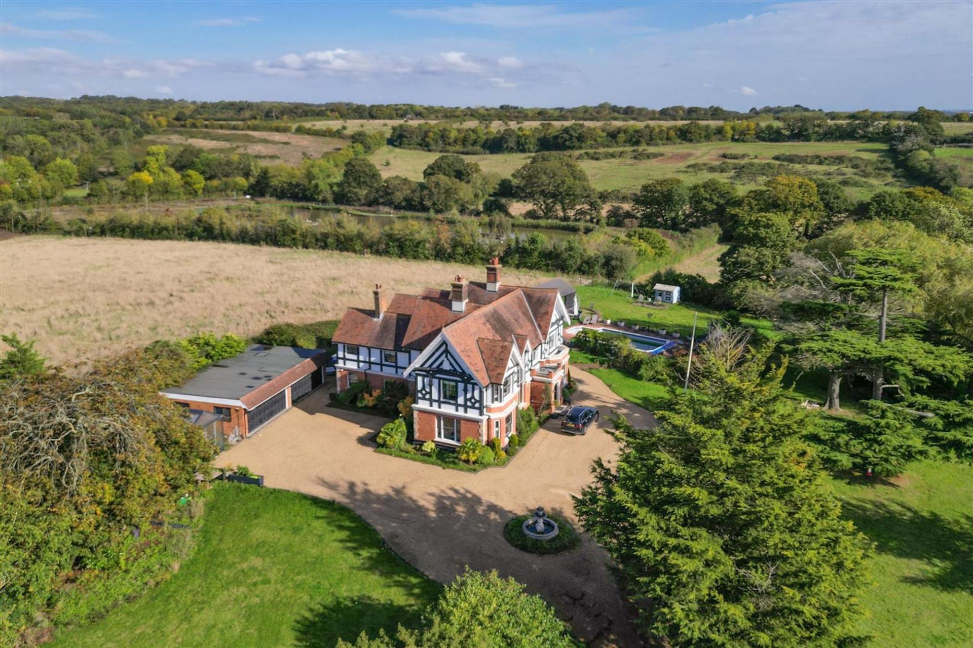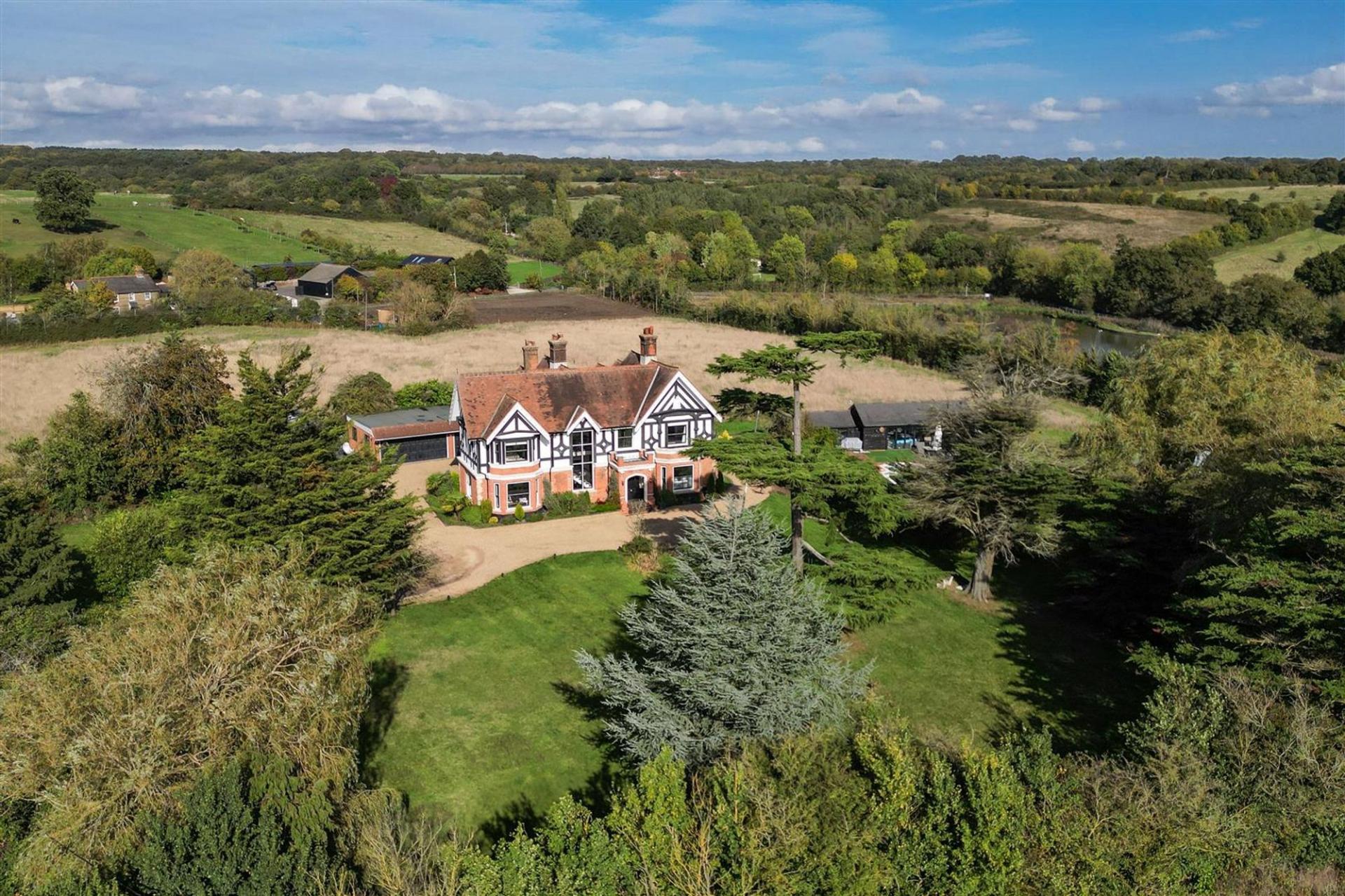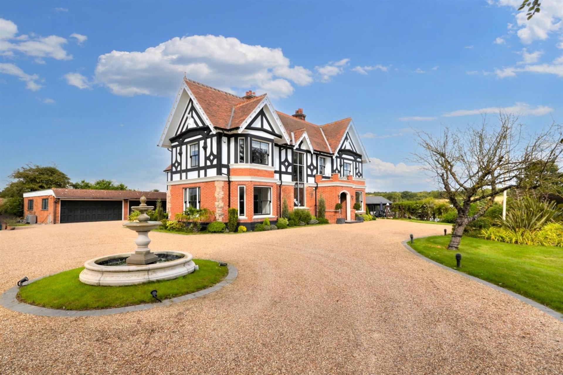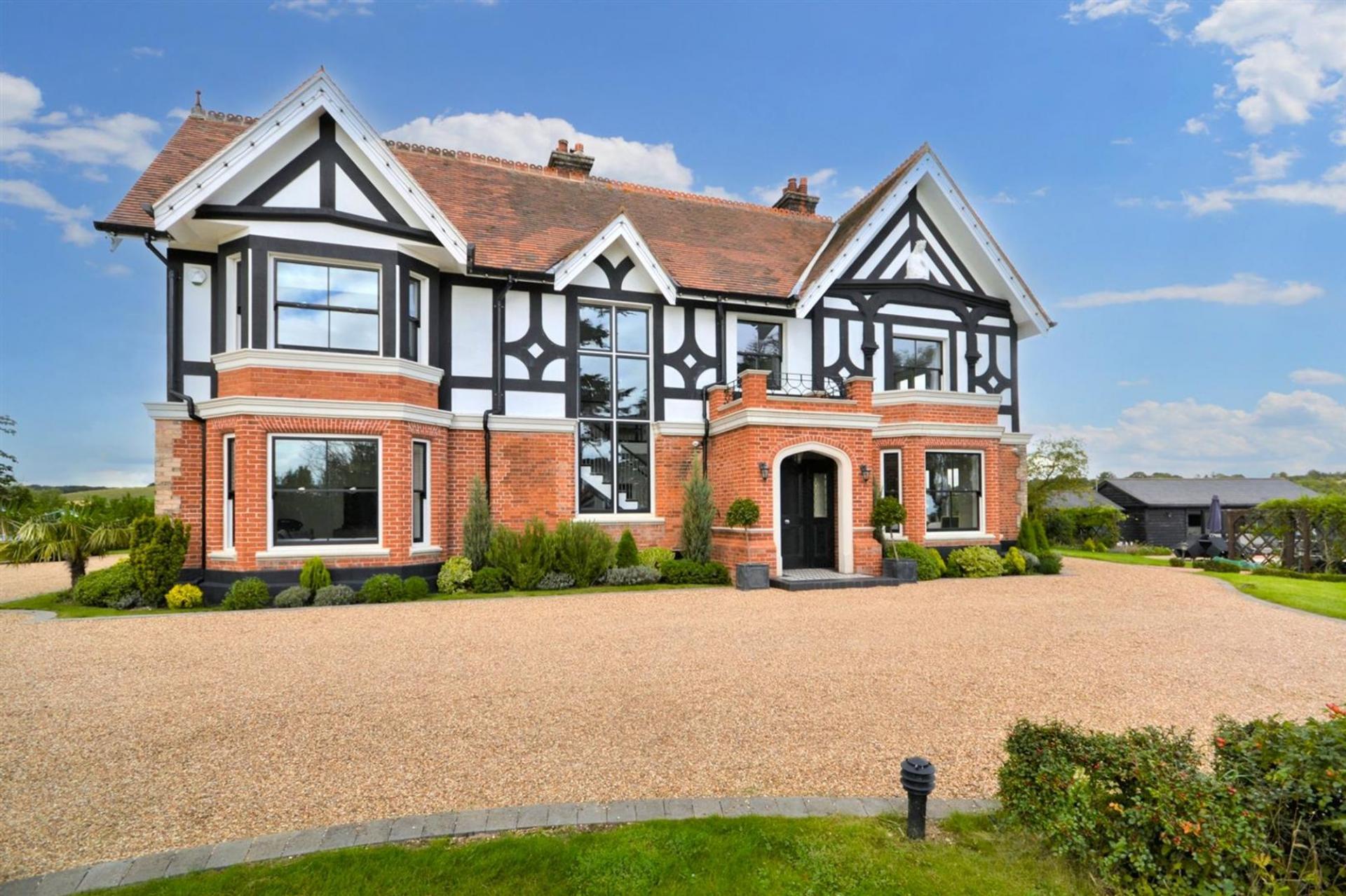 This exquisite country house, located in the peaceful area of Childerditch, Little Warley, Brentwood, sits on a plot of over 1.6 acres and boasts breathtaking views of the surrounding countryside. The property has been thoughtfully extended and meticulously renovated to offer luxurious living spaces while maintaining its classic charm.