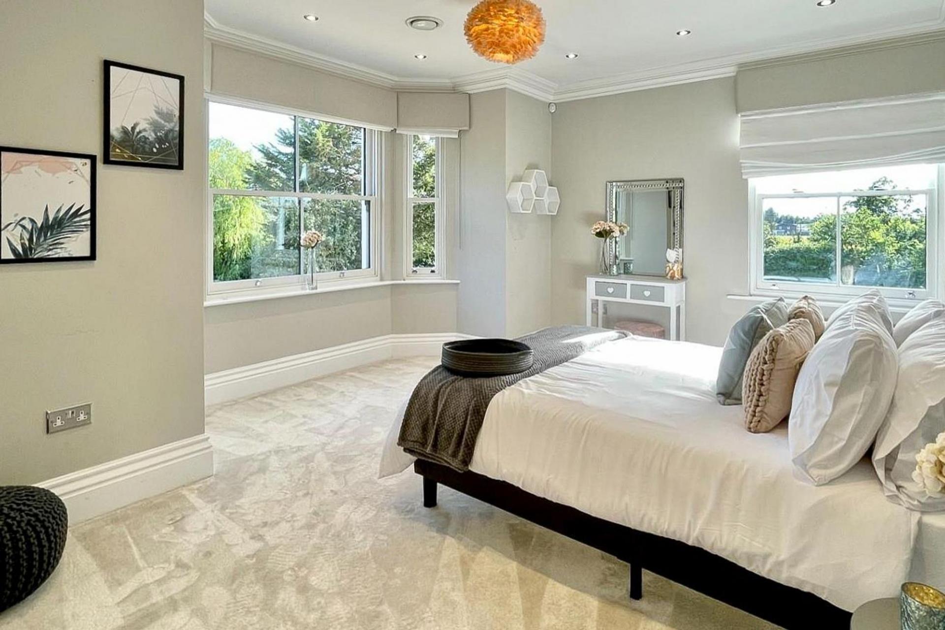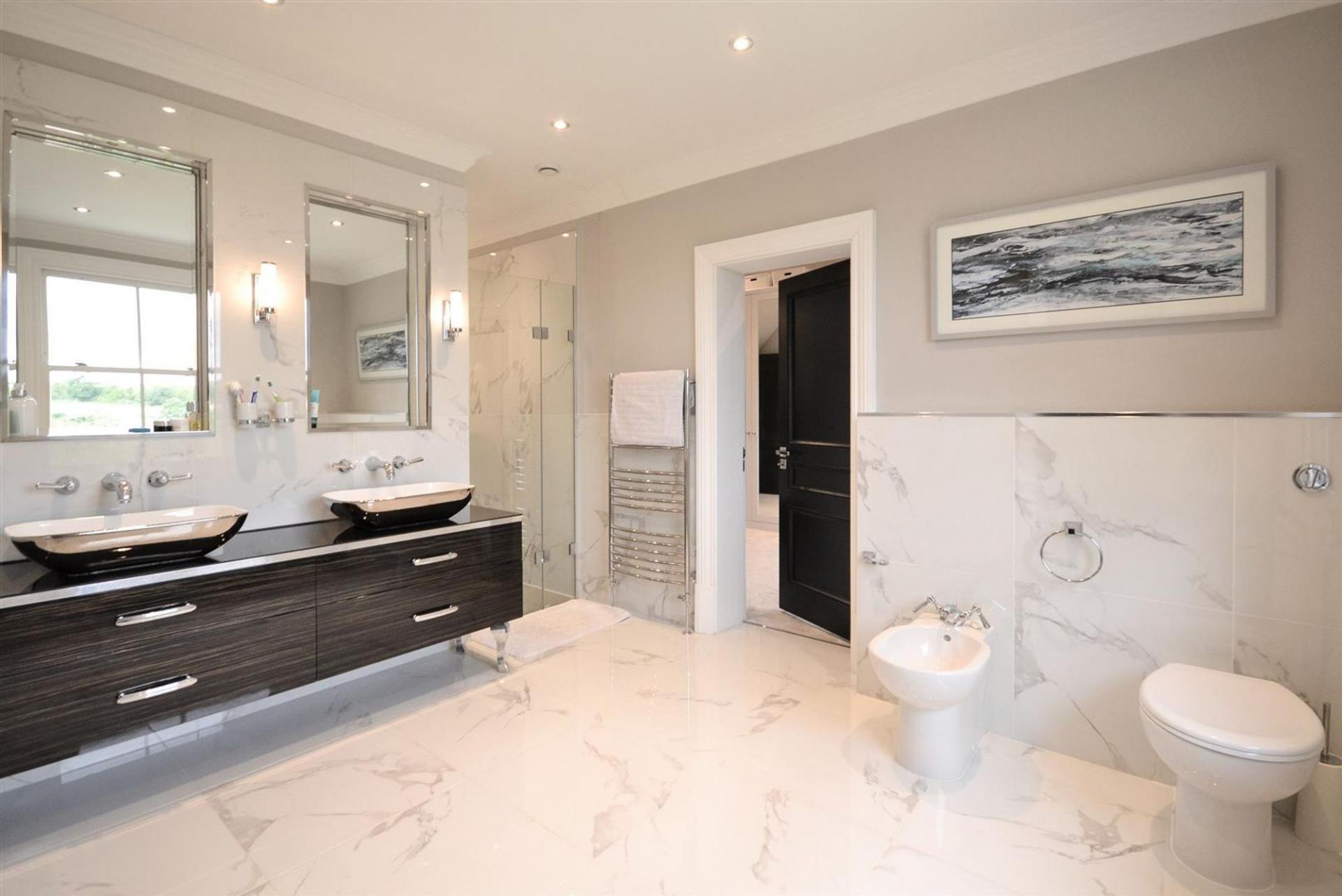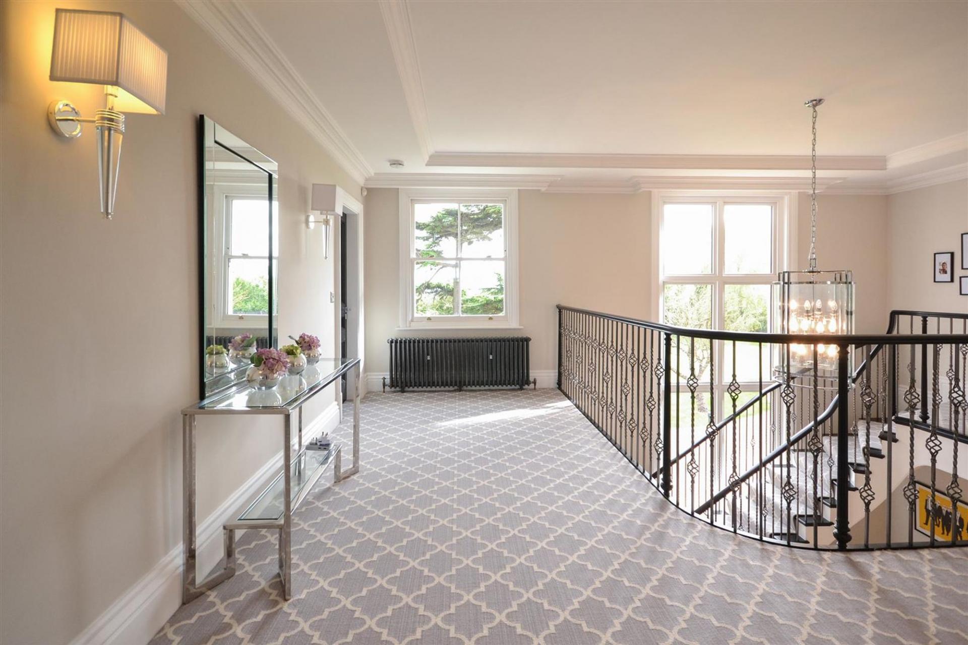 The first floor houses five well-proportioned bedrooms, three of which come with en-suite bathrooms..