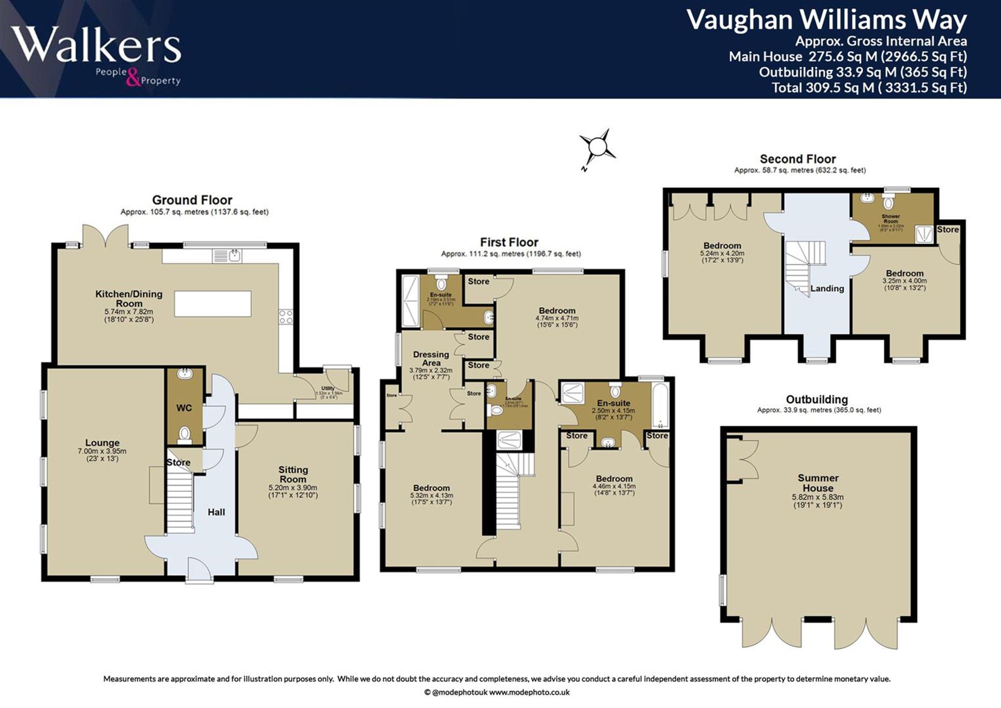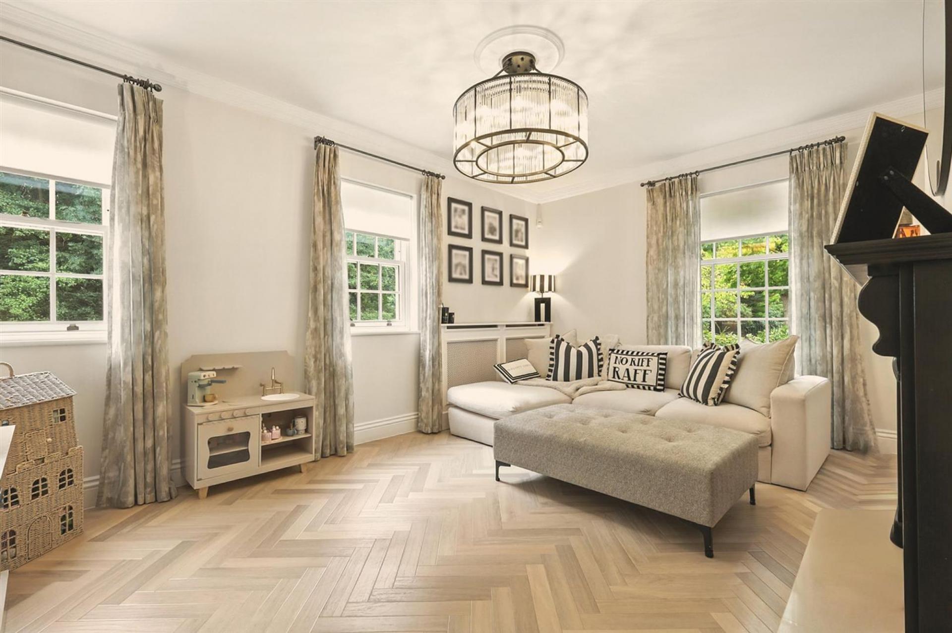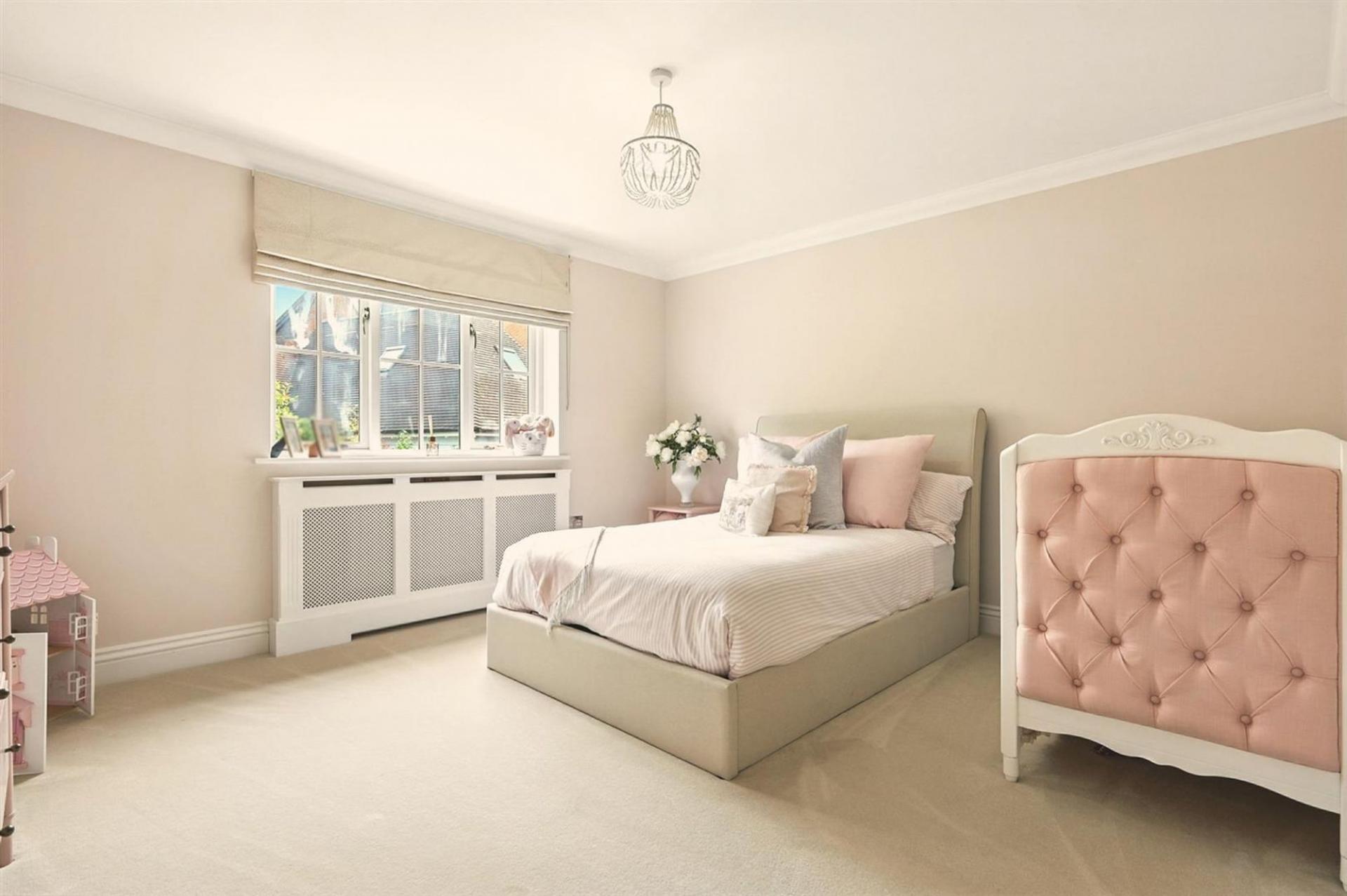 The first floor offers a luxurious principal suite with its own dressing area and en-suite bathroom, complemented by two further double bedrooms, each with an en-suite of their own. The top floor provides excellent additional family space, with two further bedrooms served by a shower room.