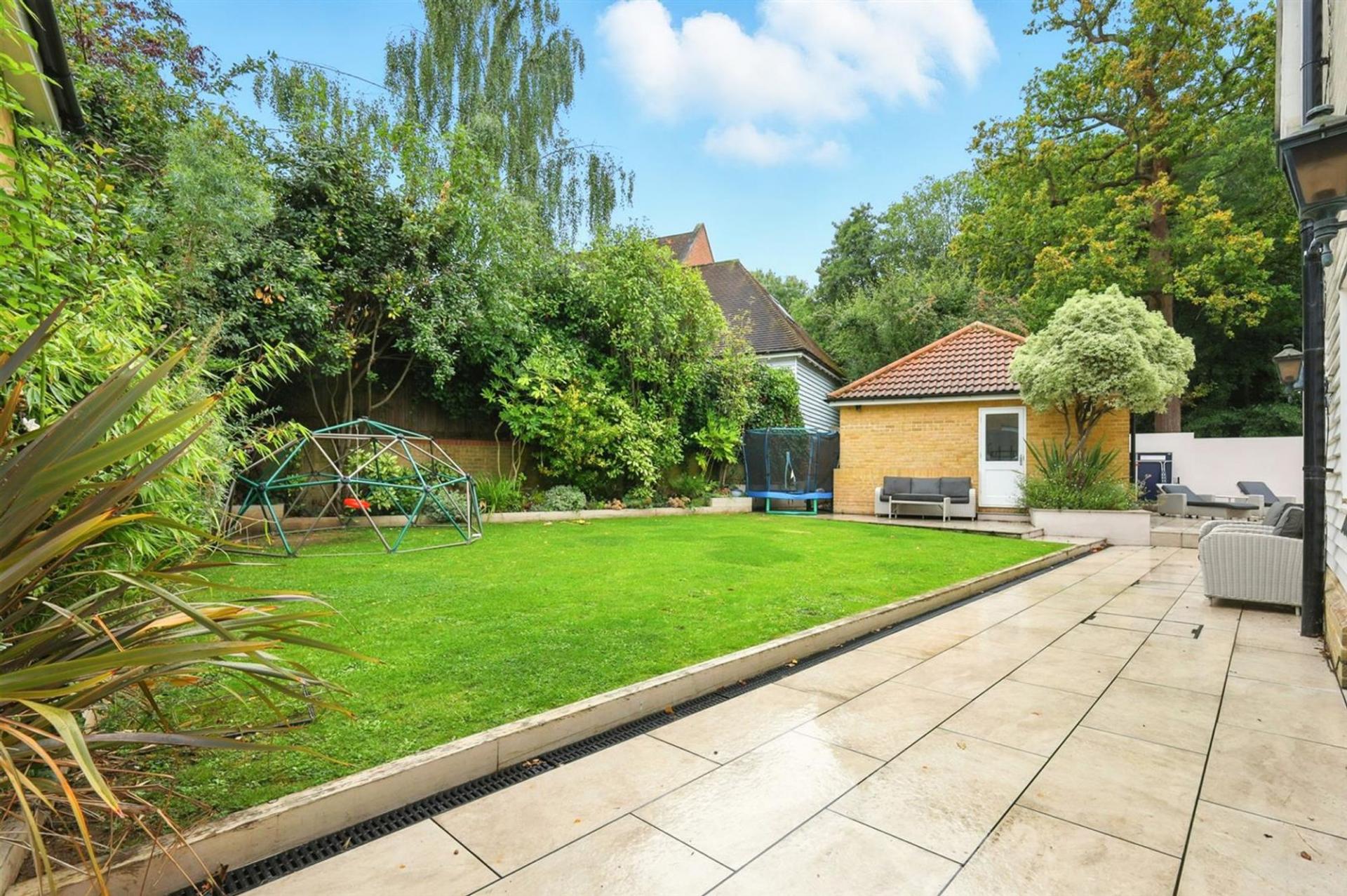 Outside, the landscaped garden has been designed with privacy and ease of maintenance in mind, while an excellent outbuilding offers huge flexibility as an entertaining space, studio, gym or home office.