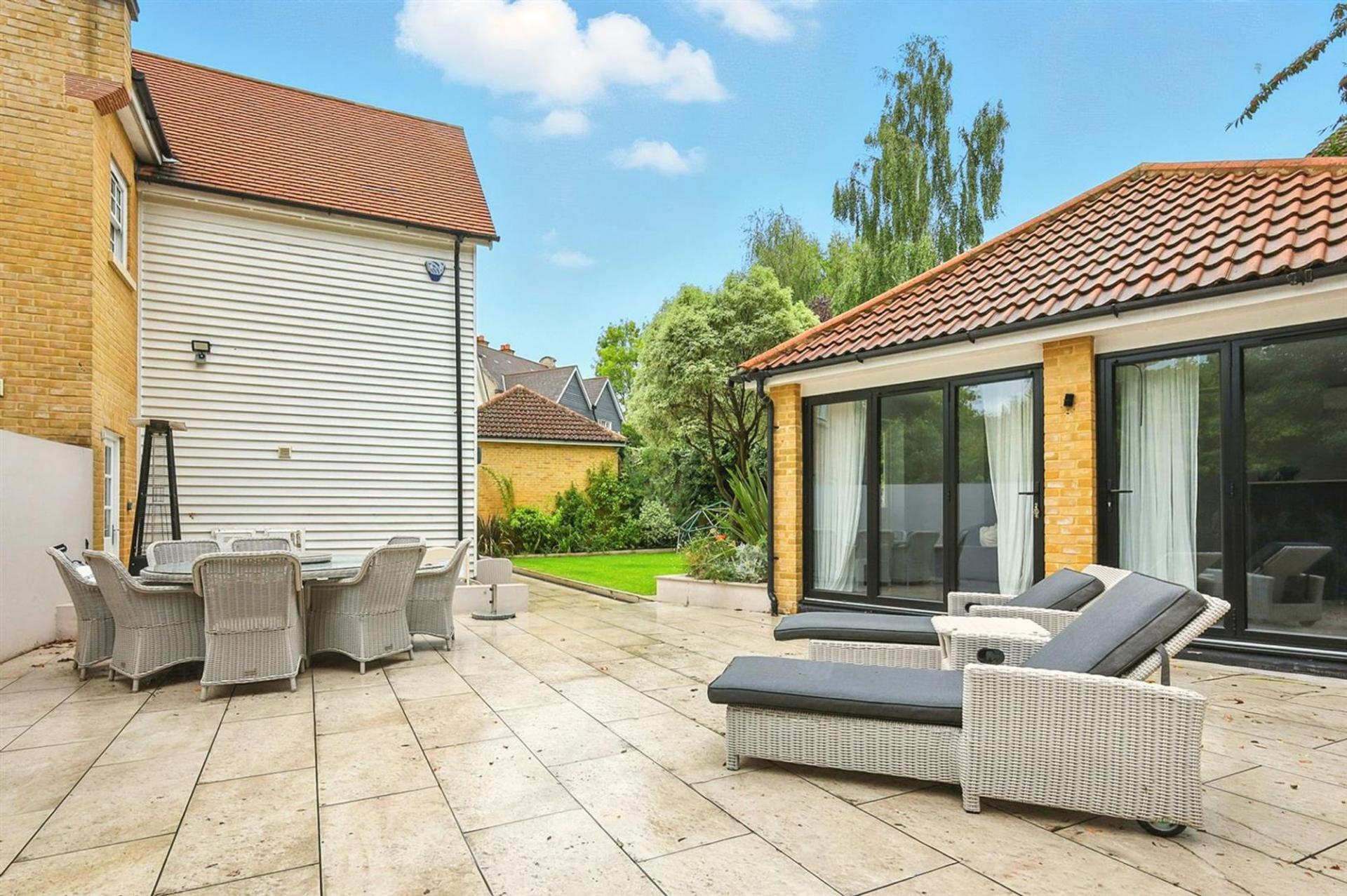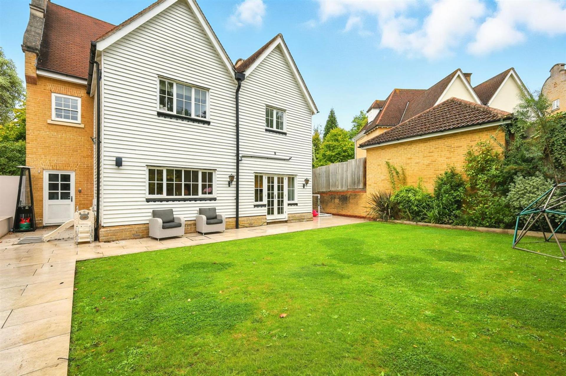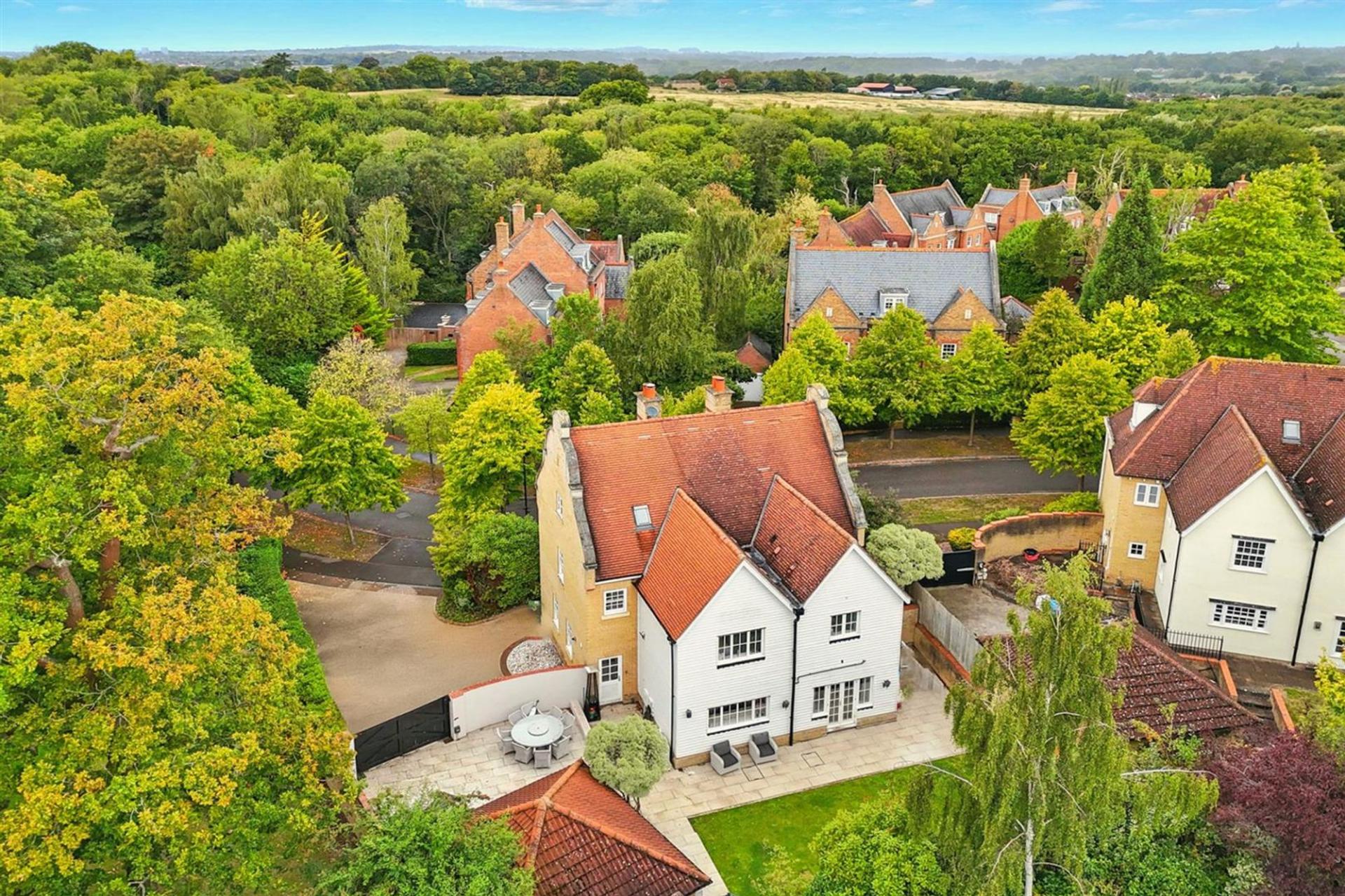 Set at the end of the road and enjoying a wonderful position adjacent to woodland, this Georgian-style residence is one of the largest of its kind within the ever-popular Clements Park development. With mellow brickwork, elegant sash windows and accommodation extending to just under 3,000 sq ft plus outbuilding, the property combines period styling with modern family living, all within walking distance of Brentwood Station.
