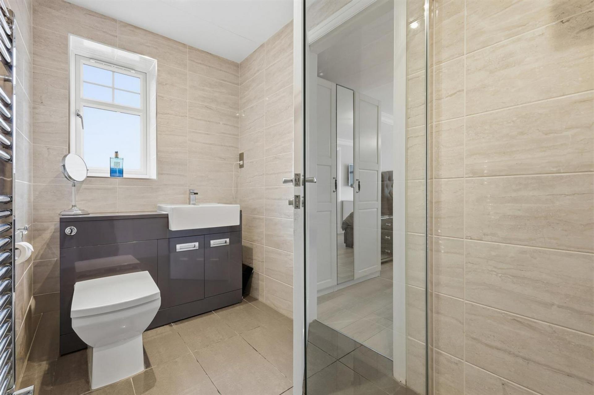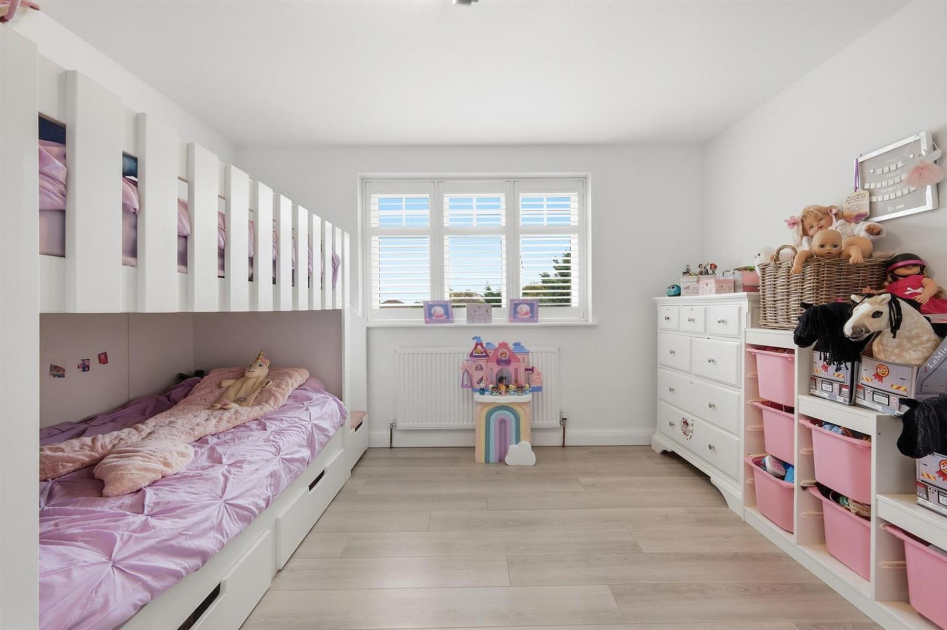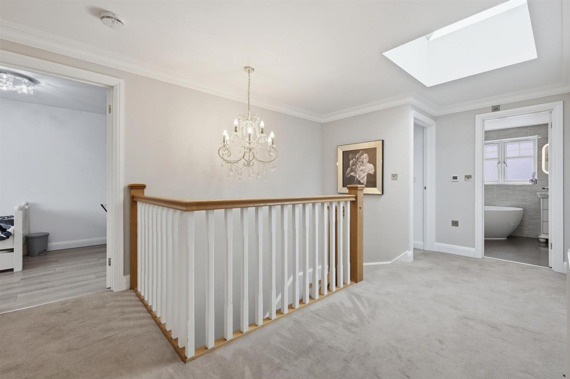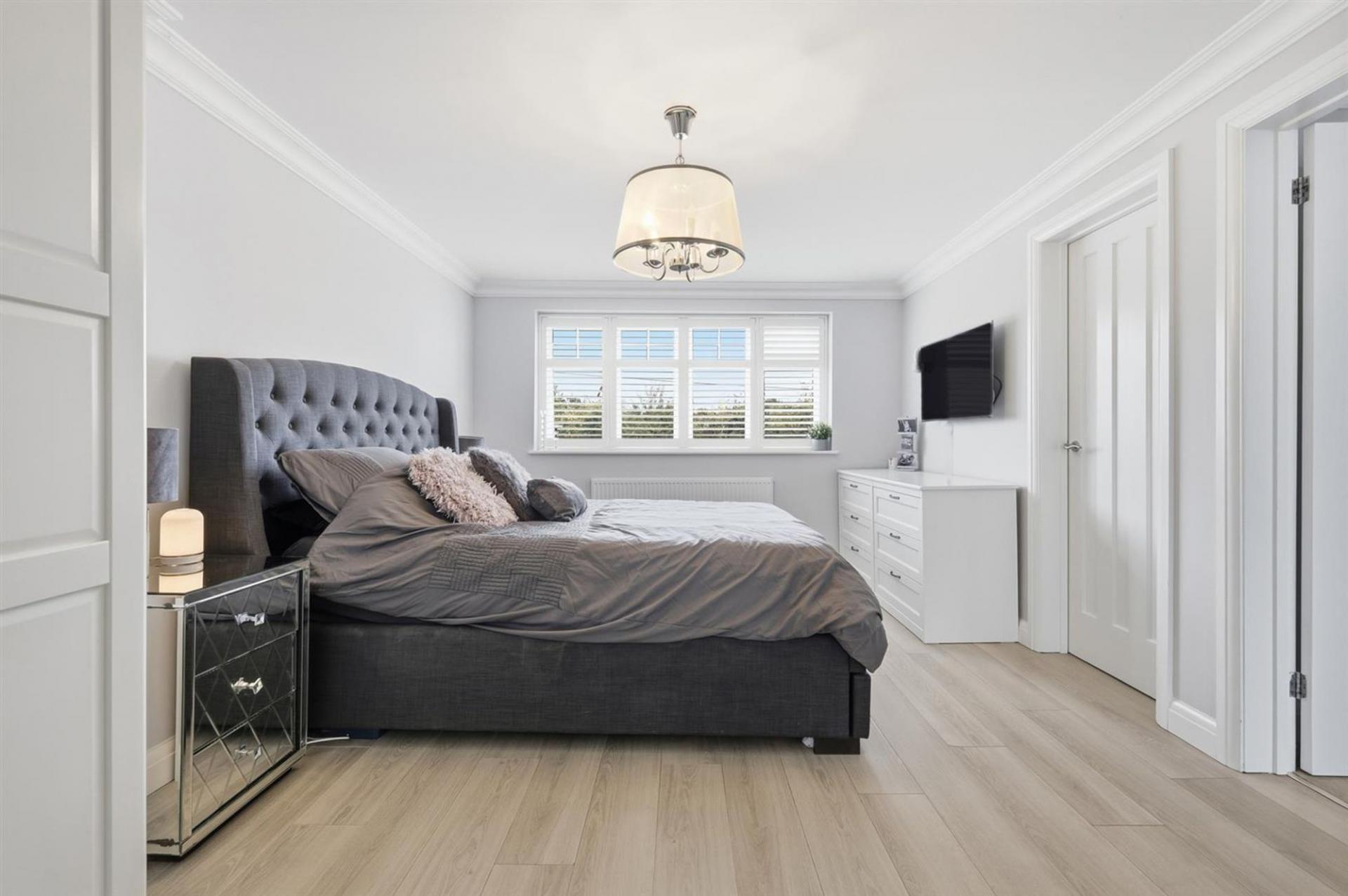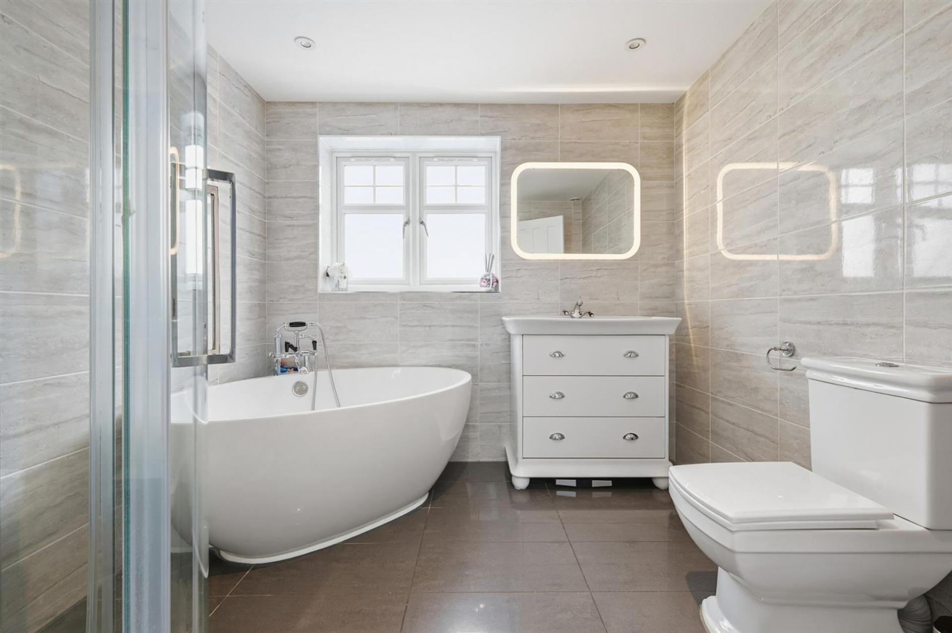 Upstairs, the first floor offers four well-proportioned bedrooms, including a superb principal suite with built in wardrobes and modern en suite shower room. The family bathroom is finished to an excellent standard, featuring a freestanding bathtub and a separate glass-enclosed shower.