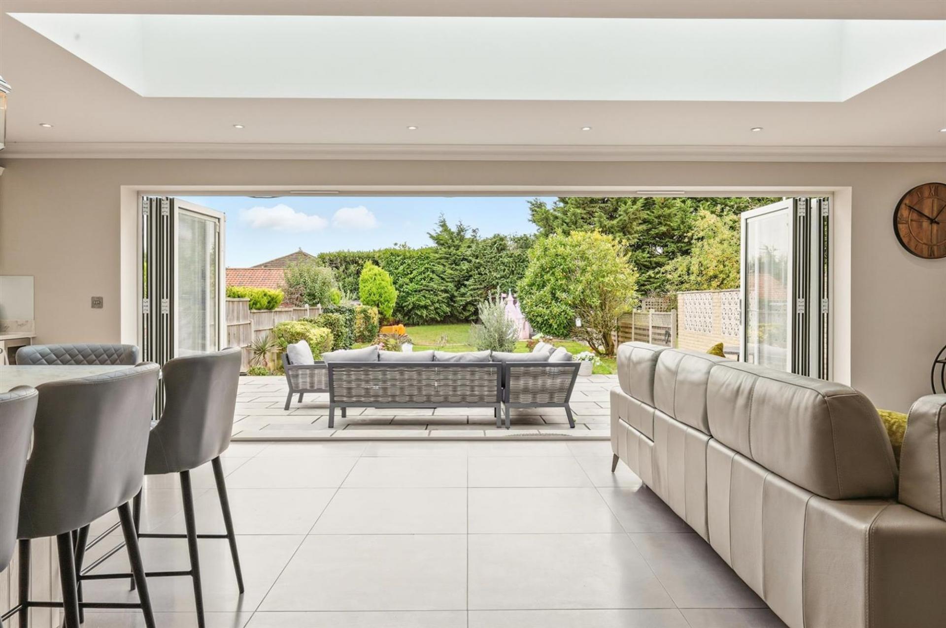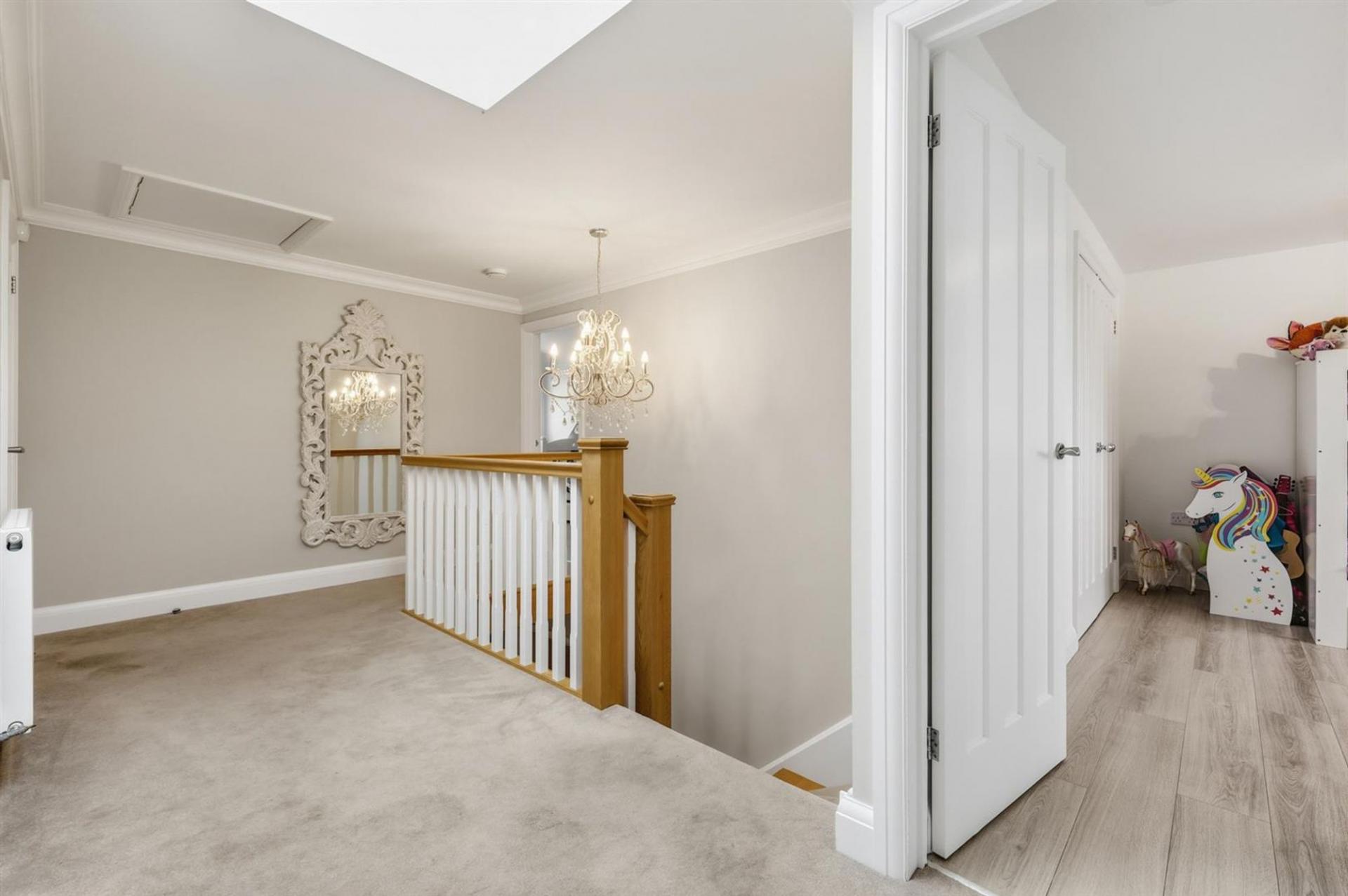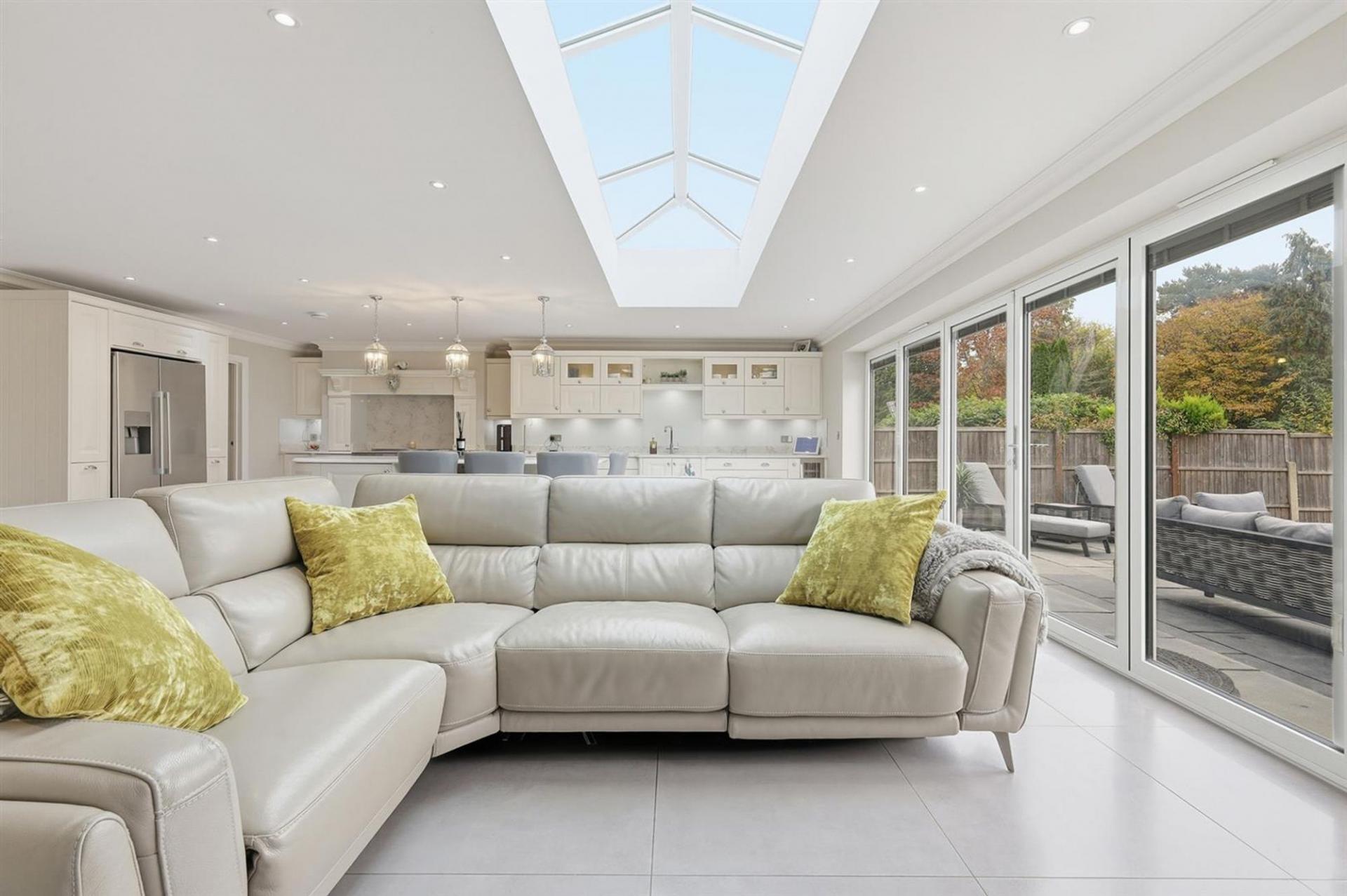 The heart of the home lies to the rear - a stunning open-plan kitchen, dining, and family room, flooded with natural light through large bi-folding doors that open directly onto the patio and garden. The kitchen itself is fitted with high-quality cabinetry and a central island, ideal for entertaining and day-to-day family life. Completing the ground floor is a utility room with external access and a convenient cloakroom/wc.