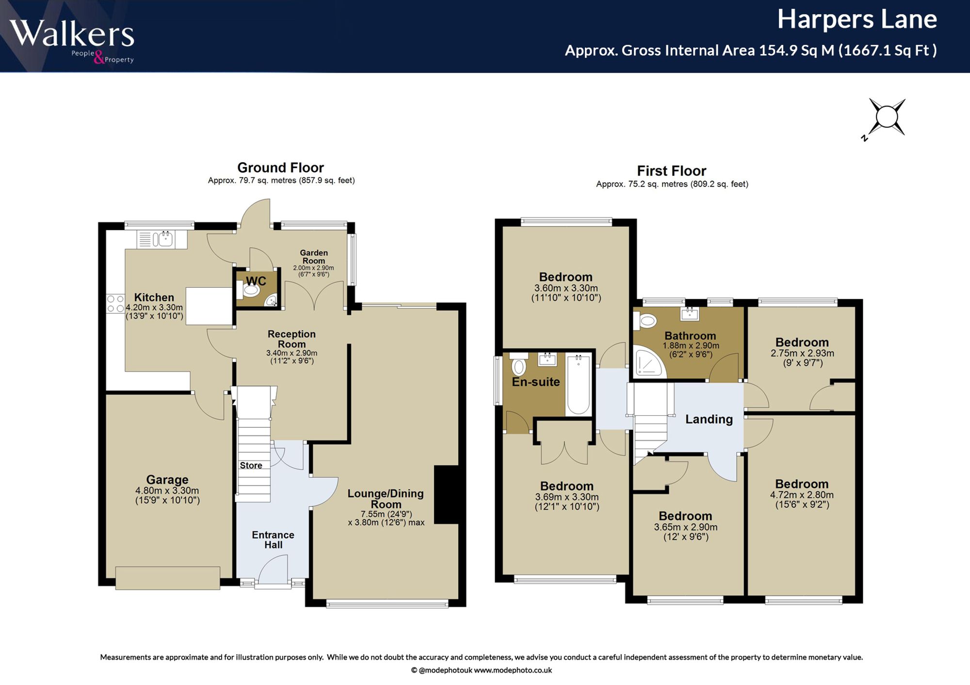 Extending to approximately 1,667 sq ft, the property provides versatile living space ideal for modern family life. The ground floor features a welcoming entrance hall leading to a bright and spacious lounge/dining room, perfectly suited to both everyday living and entertaining. The adjoining kitchen offers ample storage and worktop space, with views over the garden and convenient access to a separate reception room, ideal as a playroom, study or snug. A ground floor WC and internal access to the integral garage add further practicality.