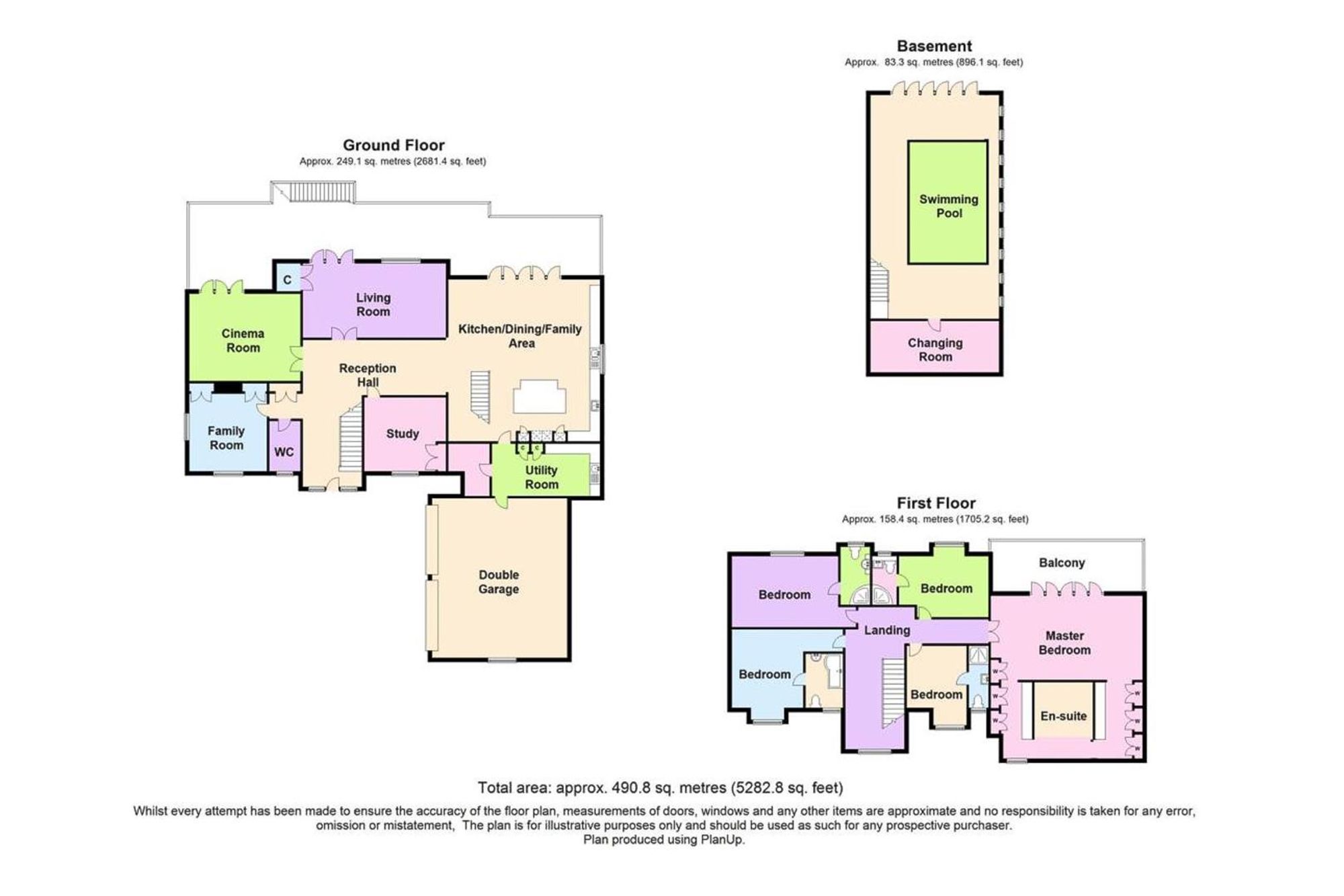 Upstairs, the first floor presents a luxurious master suite complete with his-and-hers dressing areas and a lavish en-suite bathroom, fitted with high-end fixtures from Villeroy & Boch. Each of the four additional bedrooms benefits from its own en-suite bathroom or shower room, all with underfloor heating.