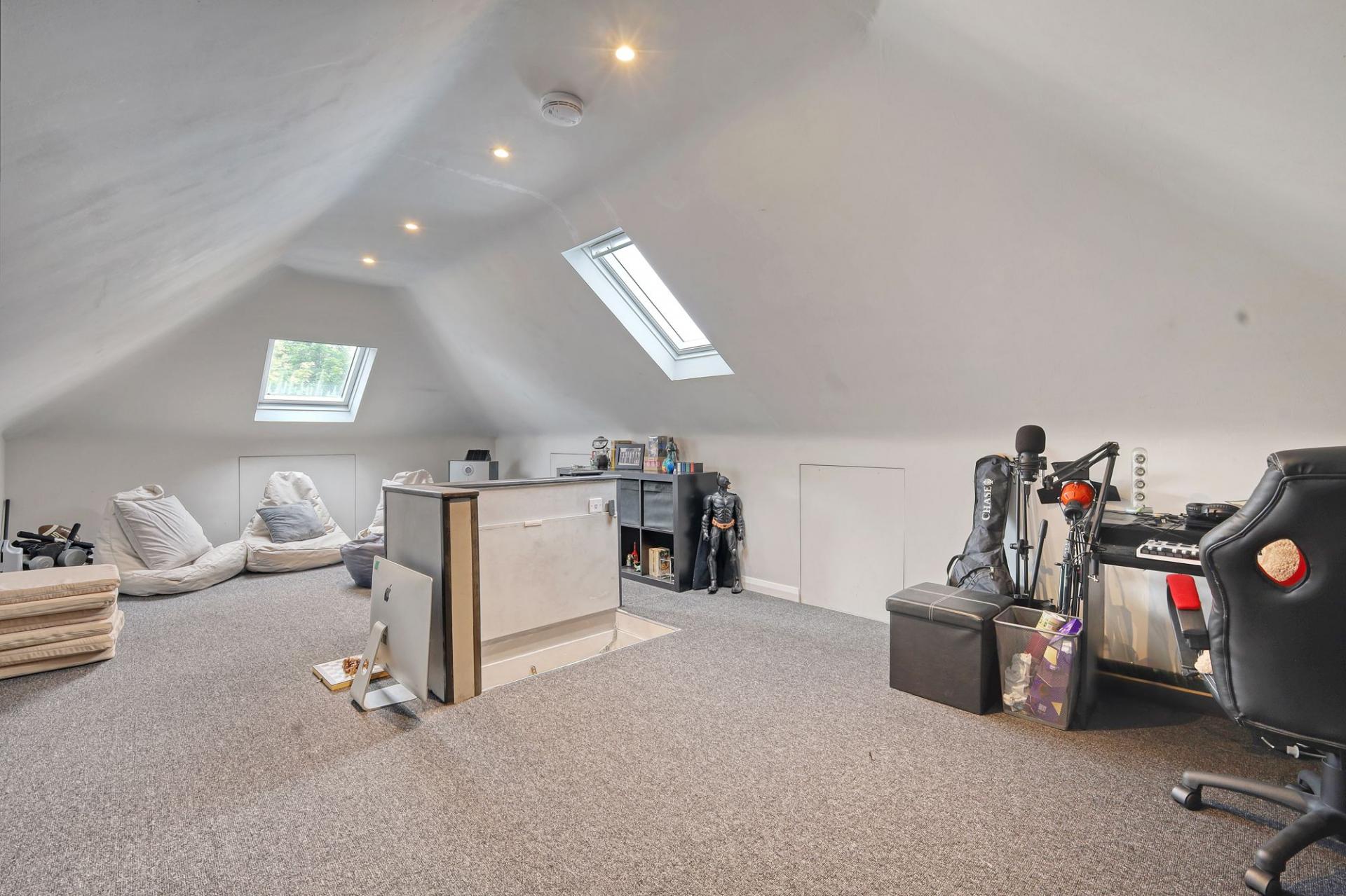 Rising to the second floor, the loft room presents a superb additional living area. Whether used as a fifth bedroom, playroom, hobby space or home office, this generous room adds flexibility and future-proofs the property for growing families.