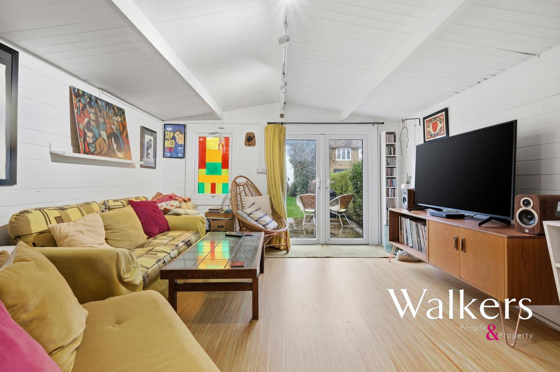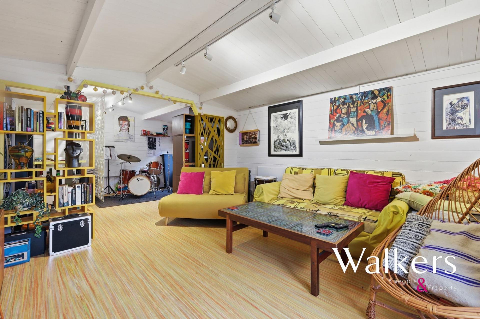 Externally, the home continues to impress. To the front, there is convenient off-street parking. The rear garden is a particular highlight, offering a generous outdoor space that is ideal for families, entertaining, or simply enjoying the outdoors. At the end of the garden sits a sizeable outbuilding currently arranged as a studio with an additional snug area and storage, presenting excellent potential for a home office, gym, creative studio, or leisure space.