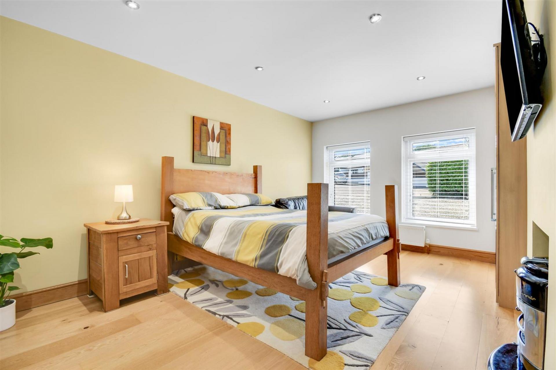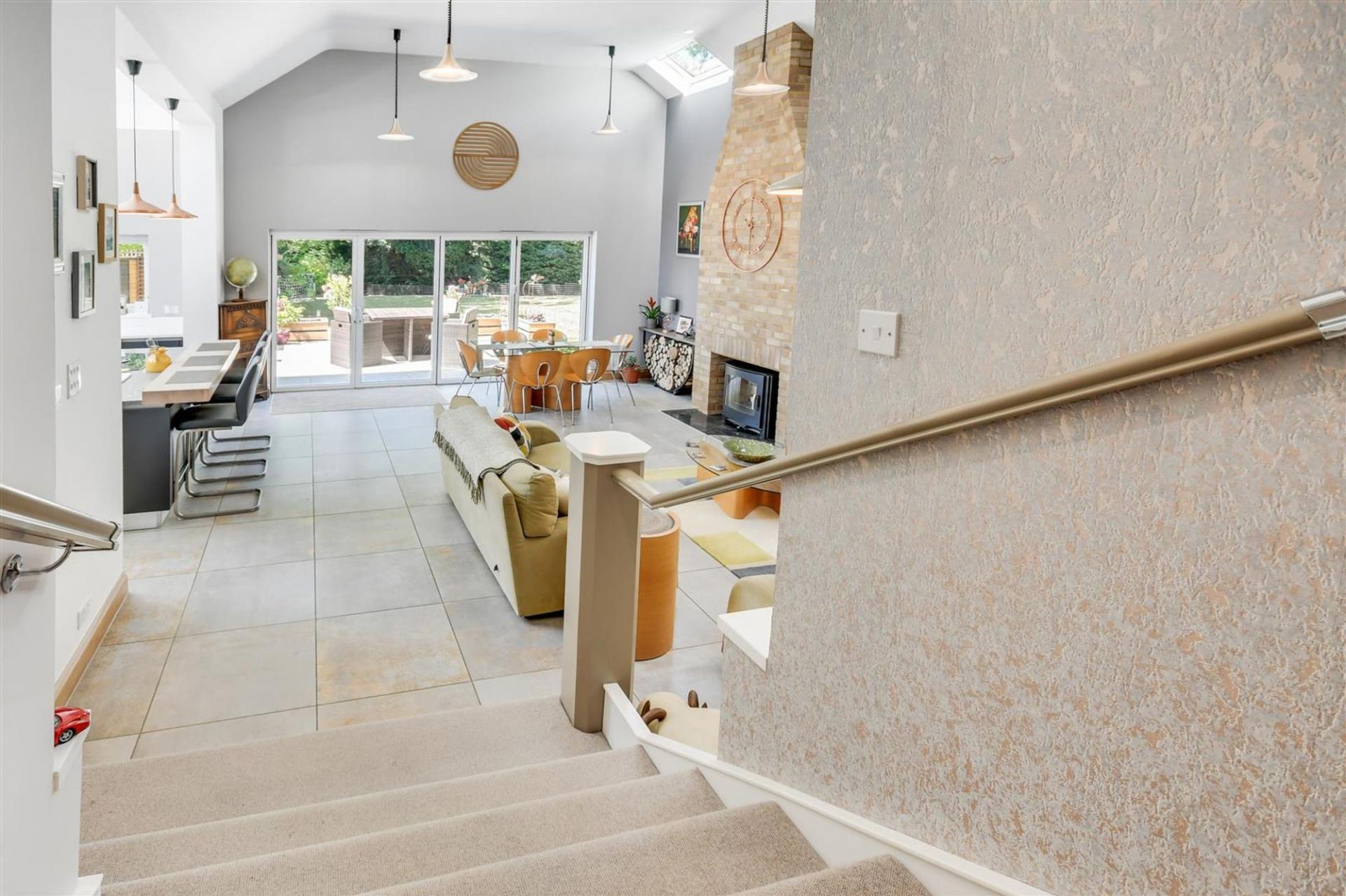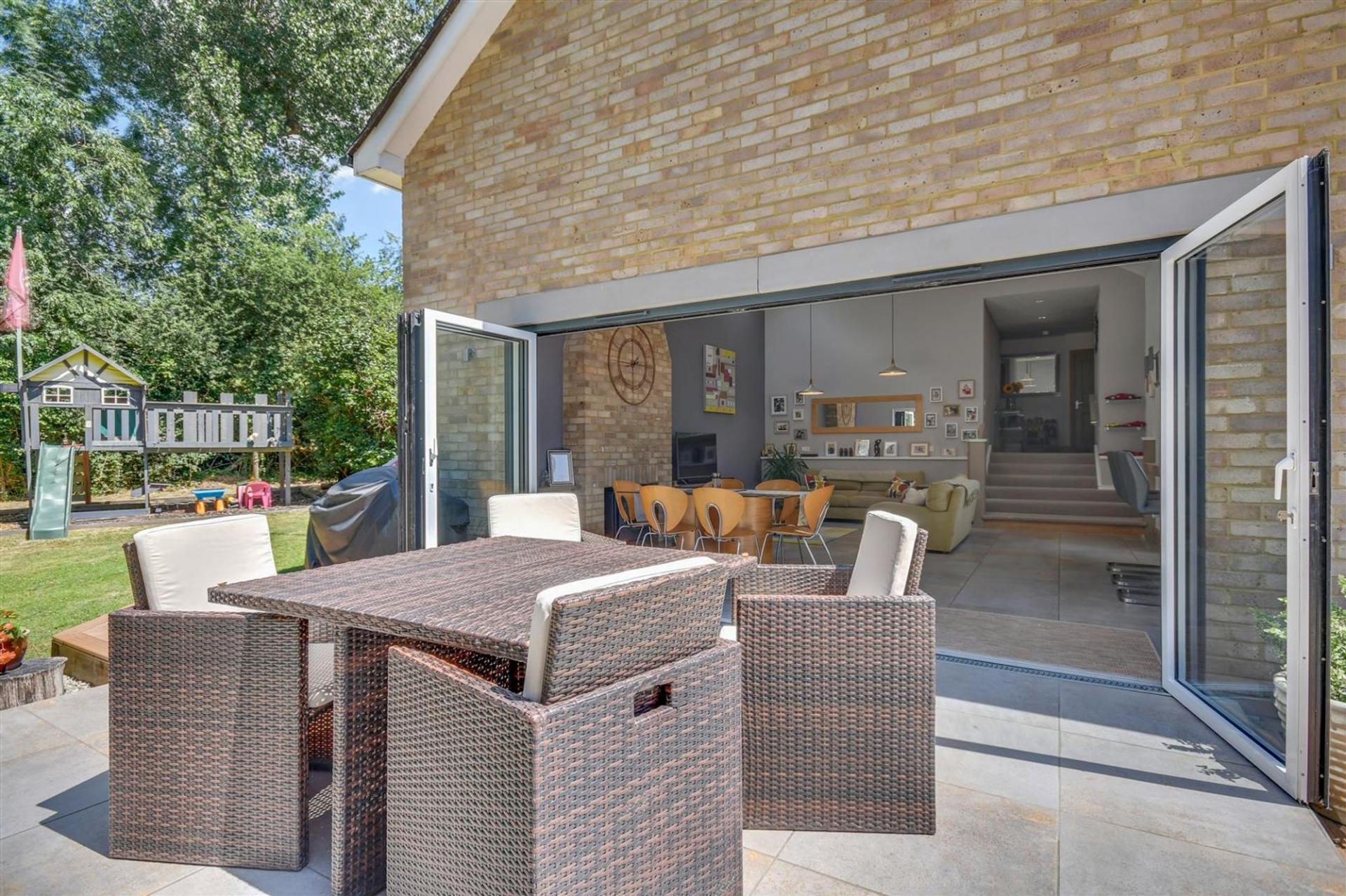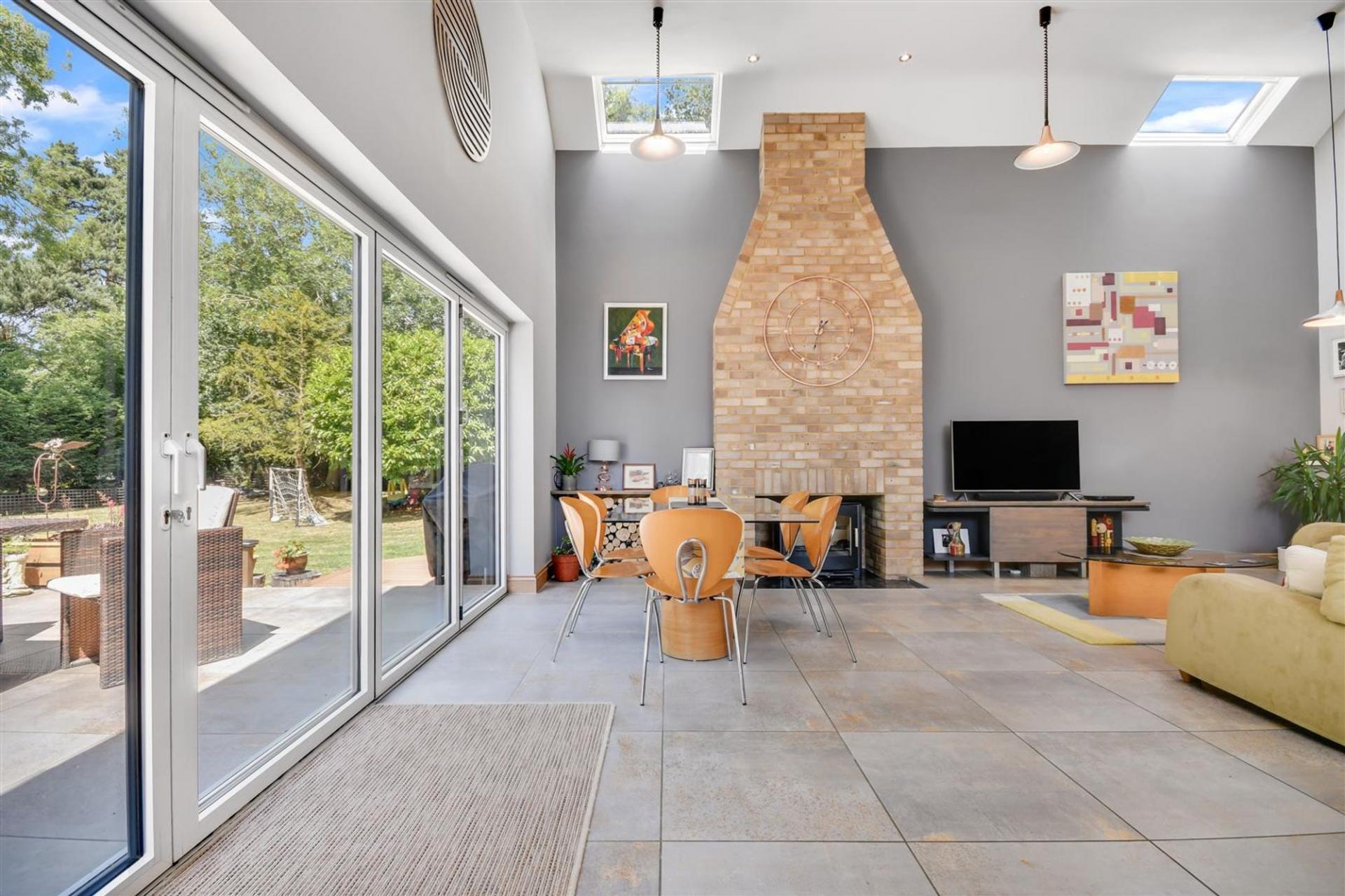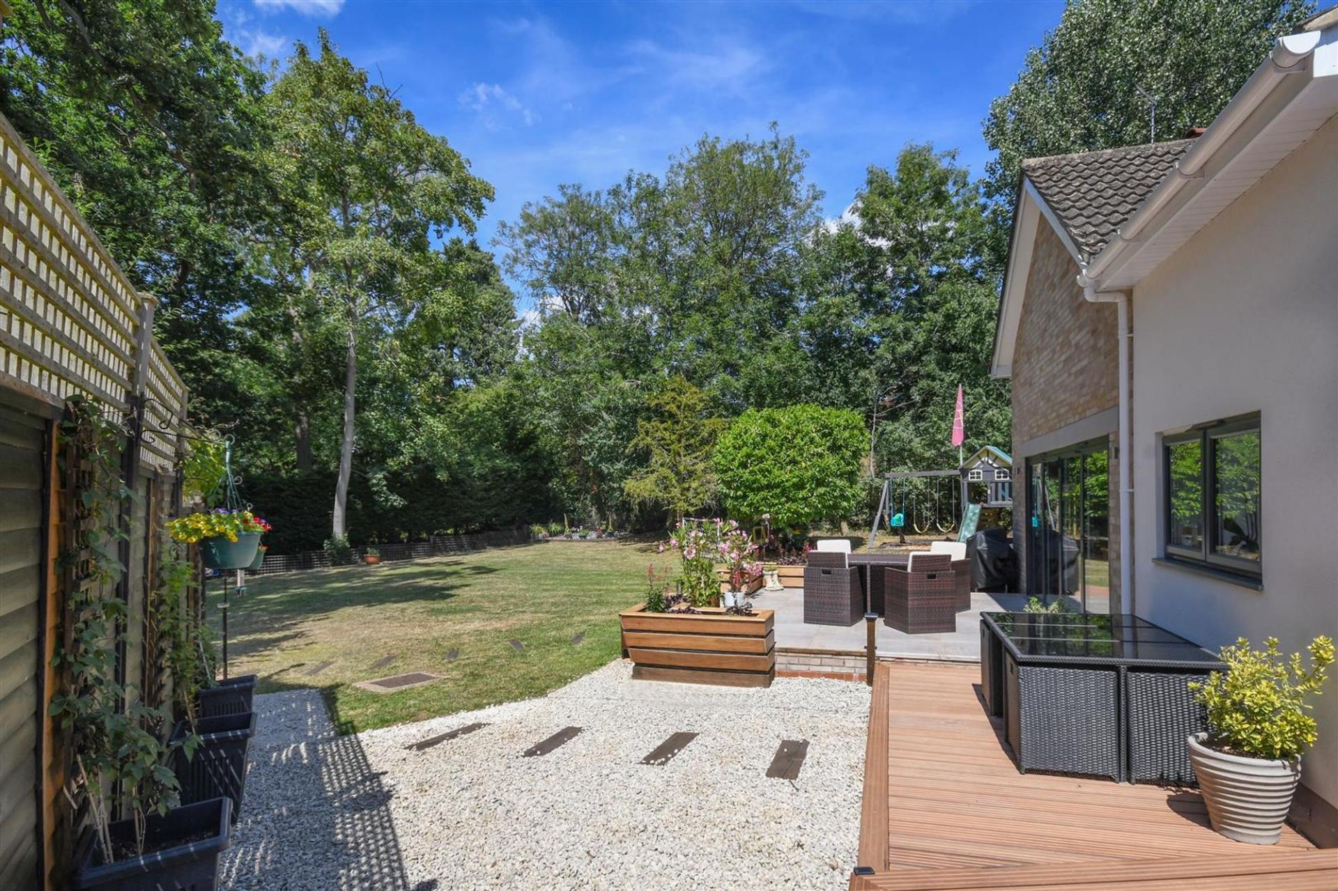 Step outside and the lifestyle continues. The generous wraparound garden is both beautifully private and bordered by mature trees, it includes a large lawn, a play area for children, and a paved summer patio that flows directly from the living space. The overall plot sits at approximately 0.3 acres (stls). To the front, there's ample driveway parking and a garage, completing a home that offers space, setting and design in perfect harmony.