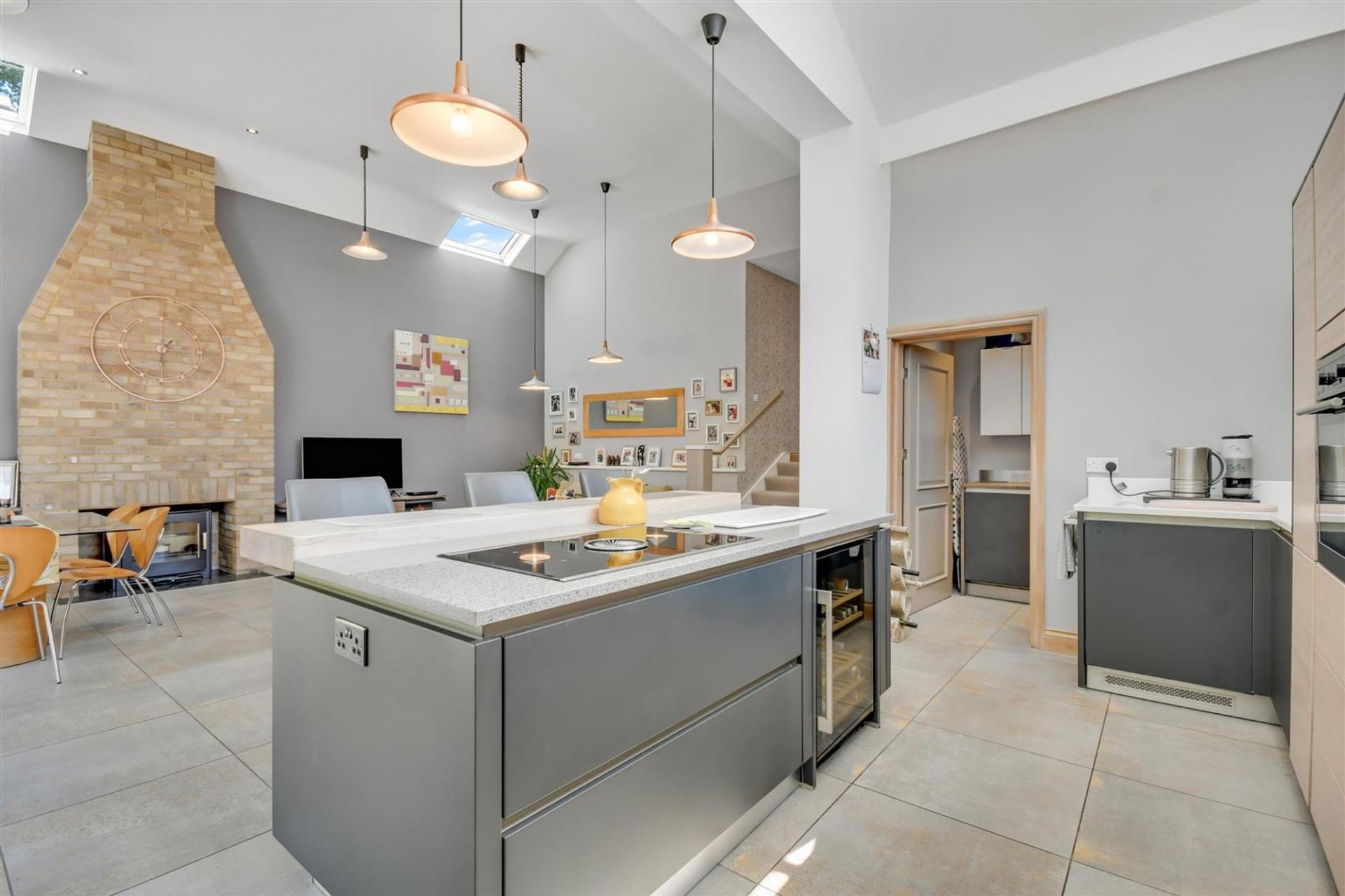 From the moment you step through the front door, the sense of scale and natural light captures your attention, the wide hallway leads into a breath taking vaulted open-plan kitchen, dining and lounge space, where a striking exposed brick fireplace anchors the room and bi-fold doors open fully onto the generous garden. Every inch of this home has been thoughtfully crafted, finished to an exceptional standard with a calm, contemporary feel. The bespoke kitchen is both beautiful and practical, complemented by a handy utility and separate laundry room, making this a home that works effortlessly for modern family life.