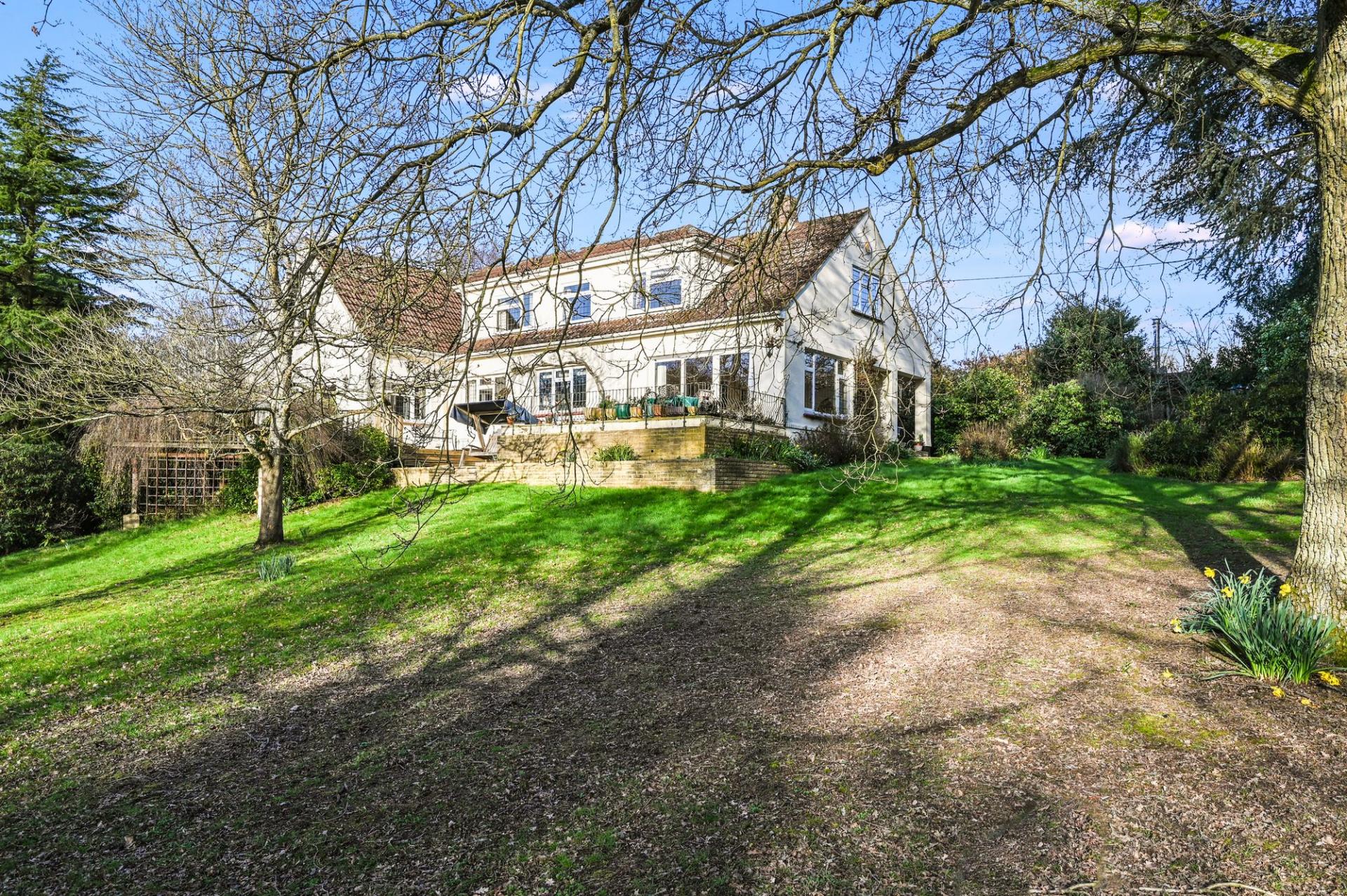 Tucked away in one of Little Baddow’s most sought-after private lanes, this impressive detached residence offers over 3,500 sq ft of versatile family accommodation. Surrounded by mature trees and gardens, the home blends generous living spaces with timeless charm, featuring multiple reception rooms, a large kitchen and breakfast area, and picture-perfect views over its secluded 1.29-acre plot. The property is complemented by a detached double garage and substantial outbuilding, ideal for hobby use or conversion (STPP).