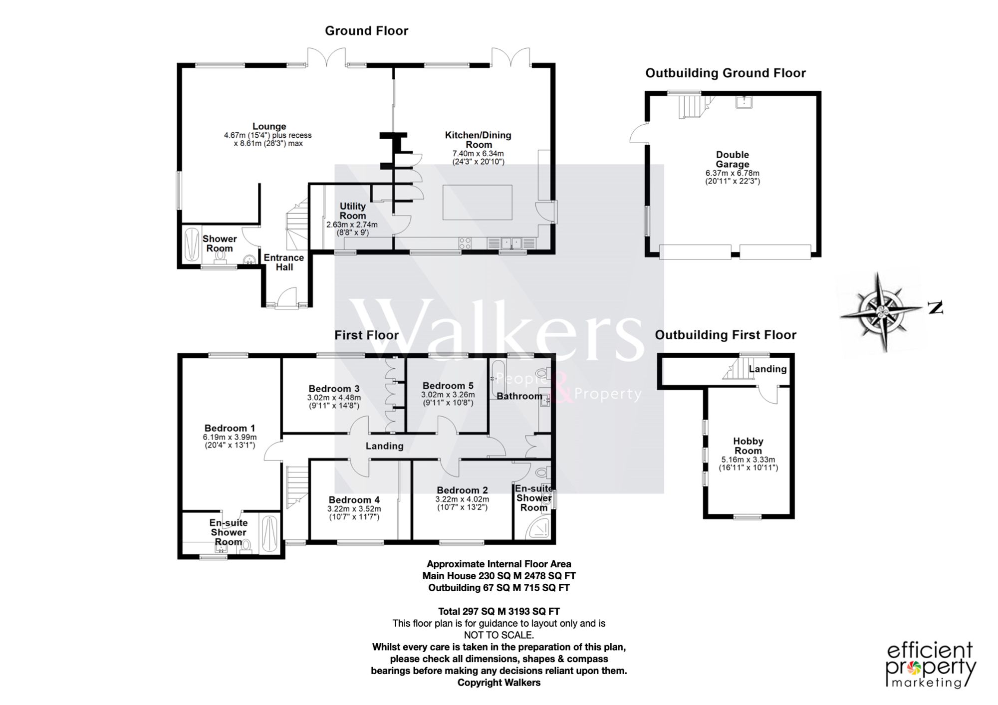 Upstairs, the first floor hosts five well-proportioned double bedrooms. Two benefit from their own en-suite bathrooms, while a large family bathroom serves the remaining three bedrooms.