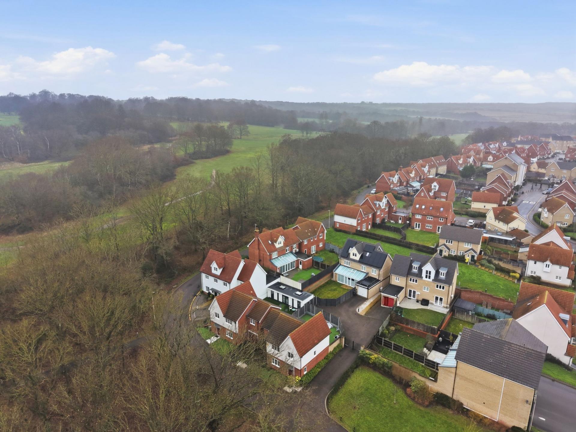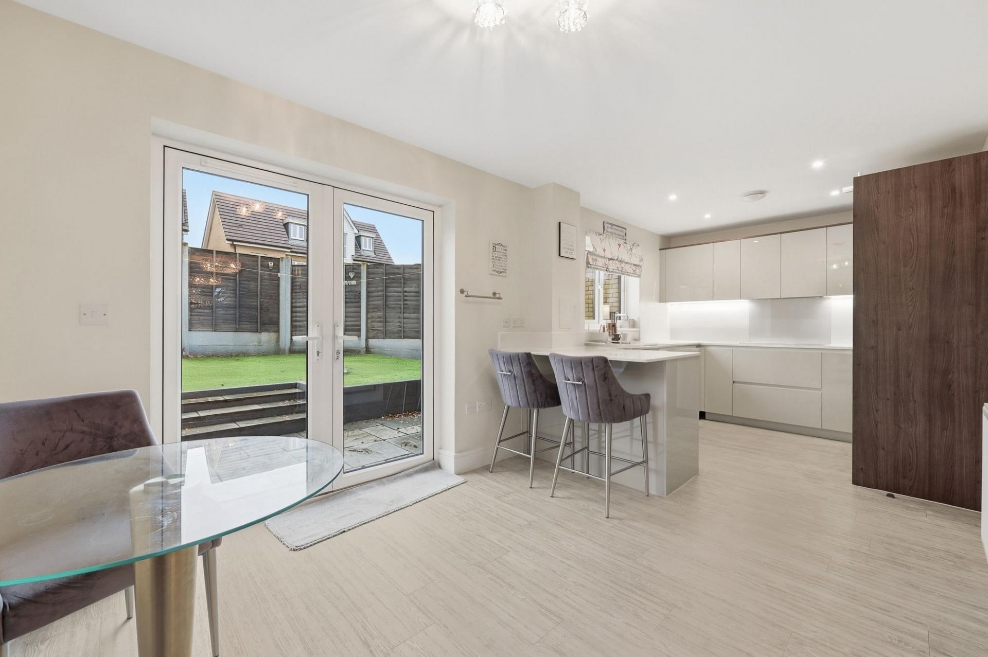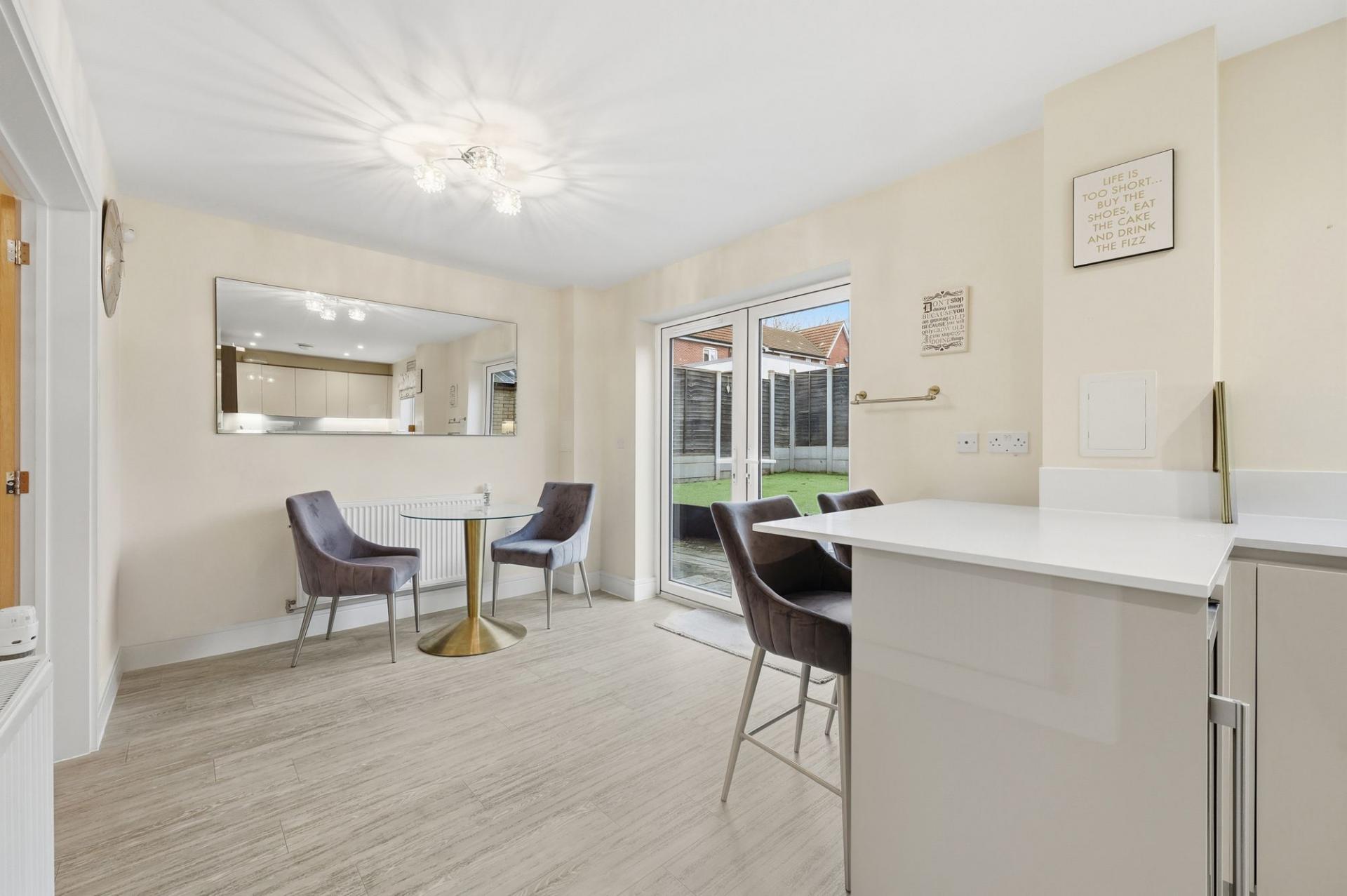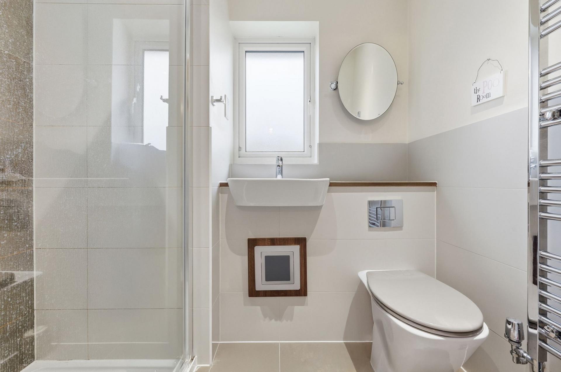 Upstairs, each of the four bedrooms are generously proportioned, providing flexible options for guest rooms, a home office or a dressing room. The principal suite has its own en-suite bathroom, finished with modern fixtures and elegant tiling. The additional bedrooms share a contemporary family bathroom, thoughtfully designed with both style and functionality in mind. Downstairs, a convenient cloakroom adds to the home’s practical credentials.