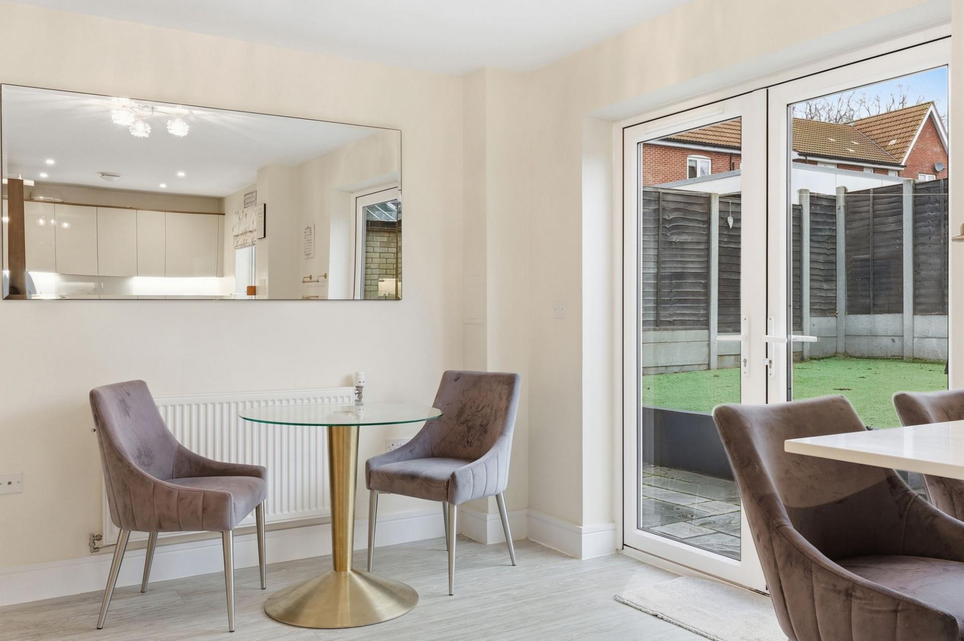 Step inside and you’re greeted by a spacious hallway that opens up to a bright and airy living room, perfect for family gatherings or relaxing evenings. The heart of the home is undoubtedly the stylishly appointed kitchen, featuring sleek cabinetry, integrated appliances and ample workspace. Flowing seamlessly from the kitchen, the dining area offers plenty of room for a large table.