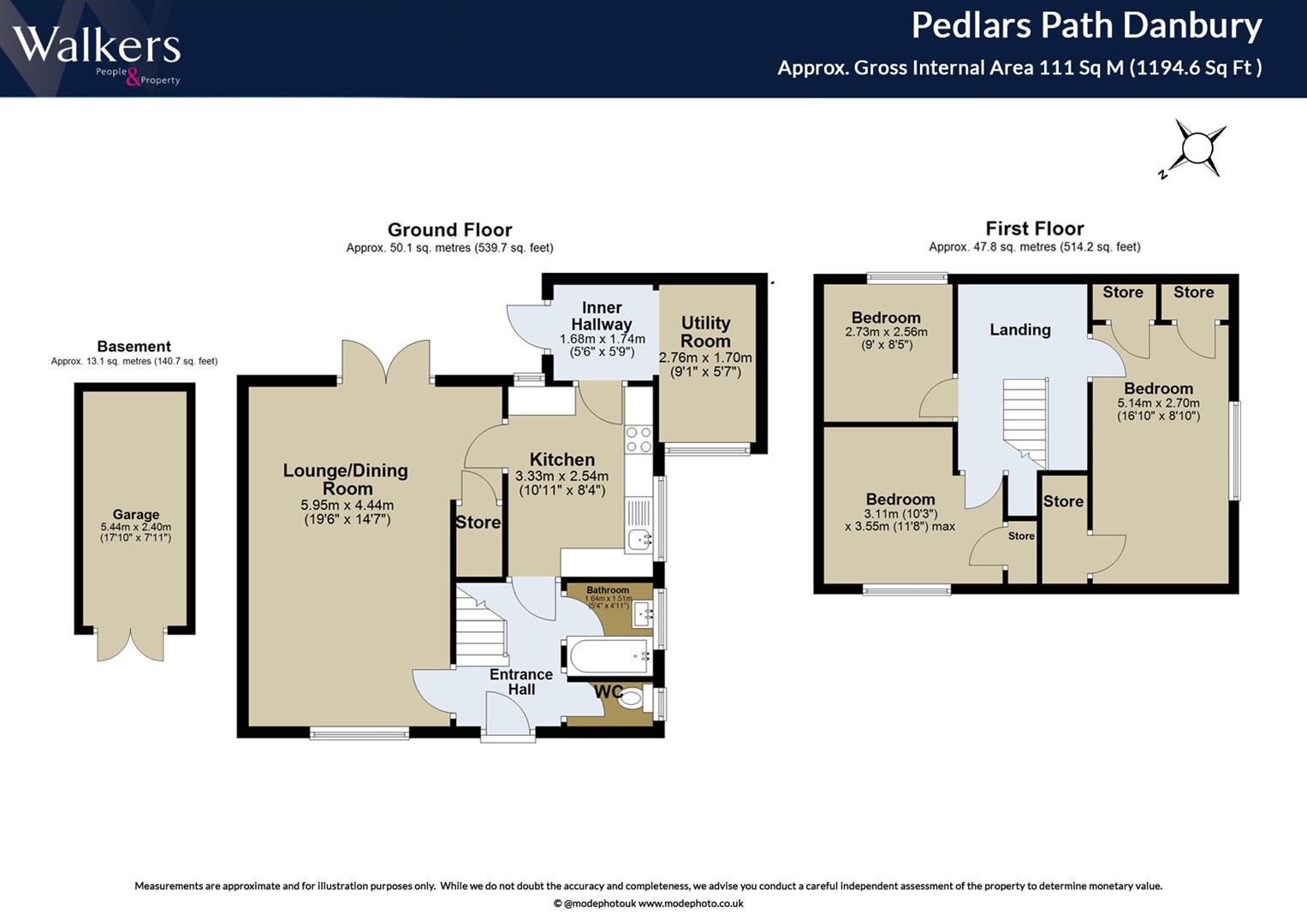 On the ground floor, the property offers a bright dual aspect lounge, a well-proportioned kitchen, utility room with direct access to the garden, and a family bathroom with separate WC. Upstairs, there are two generous double bedrooms and a further single, ideal for a child's room or study.