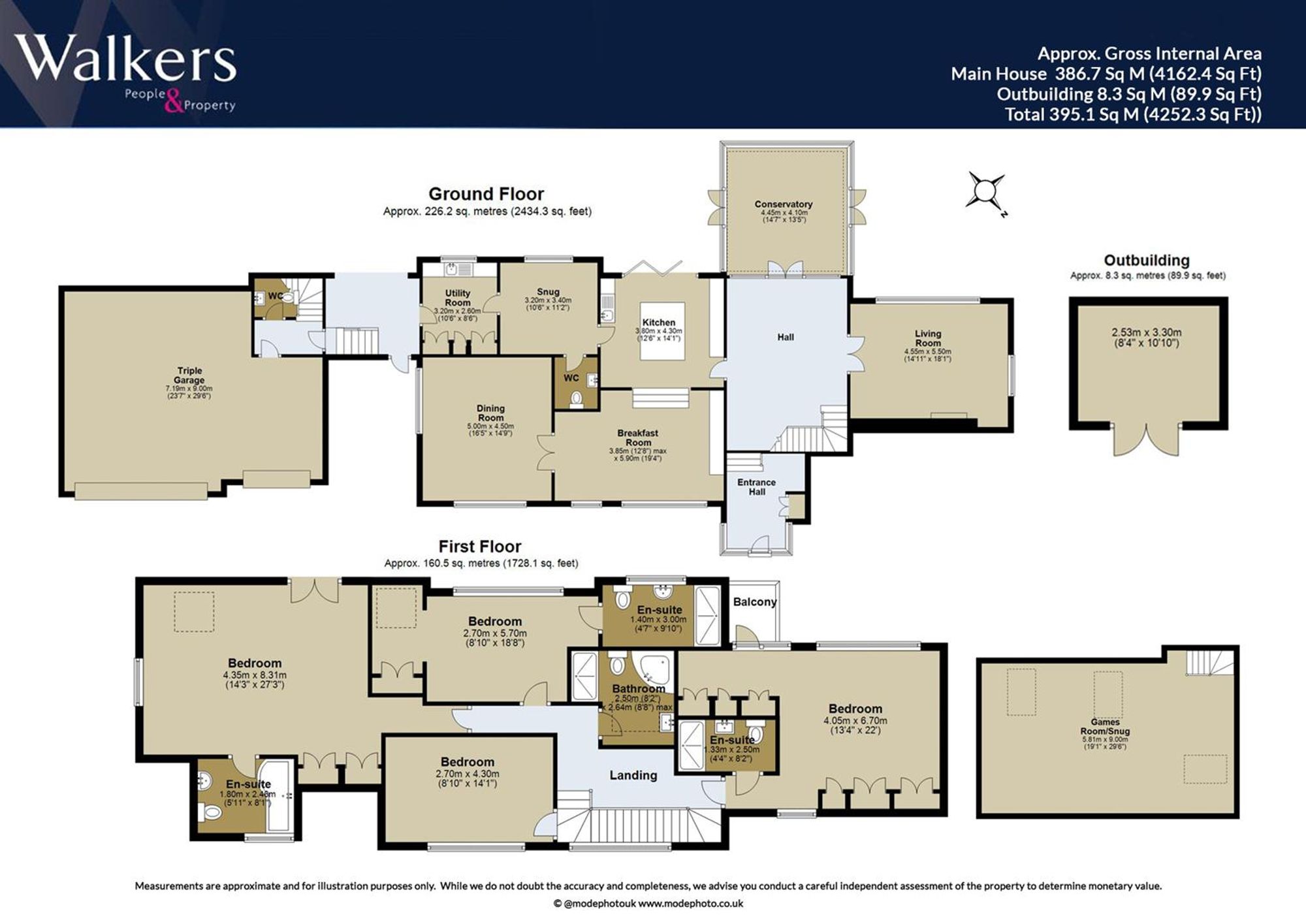 The accommodation is expansive and versatile. The ground floor offers an inviting entrance hall leading to multiple reception rooms, including a spacious living room with garden views, a conservatory, a formal dining room, and a cosy snug. The bespoke kitchen/breakfast room is well-appointed and leads to a useful utility room and a ground-floor WC. We feel there is scope to add a rear extension to enlarge the kitchen, which would provide the ultimate open plan arrangement living space looking out to the grounds, subject to the usual planning consents.