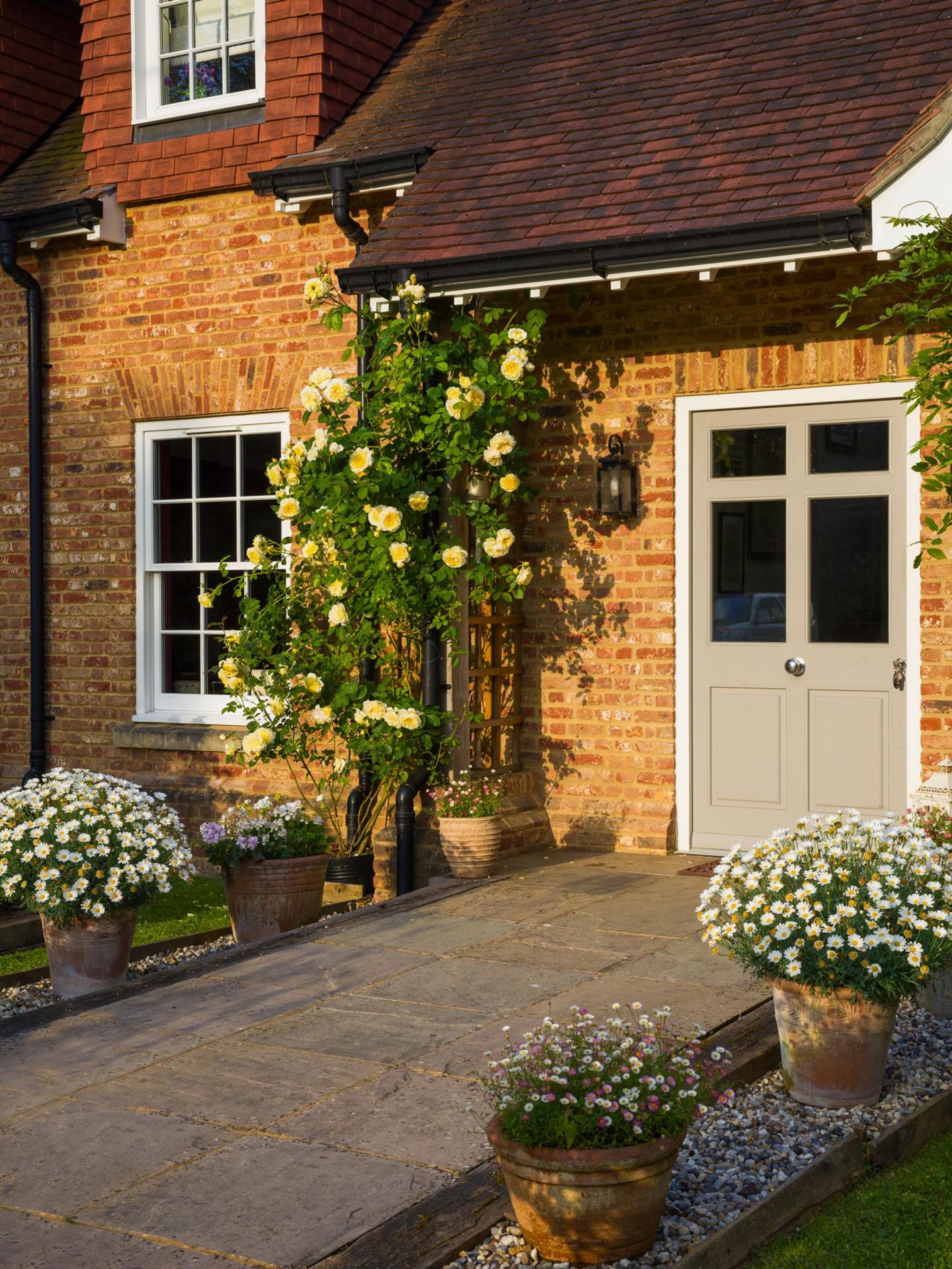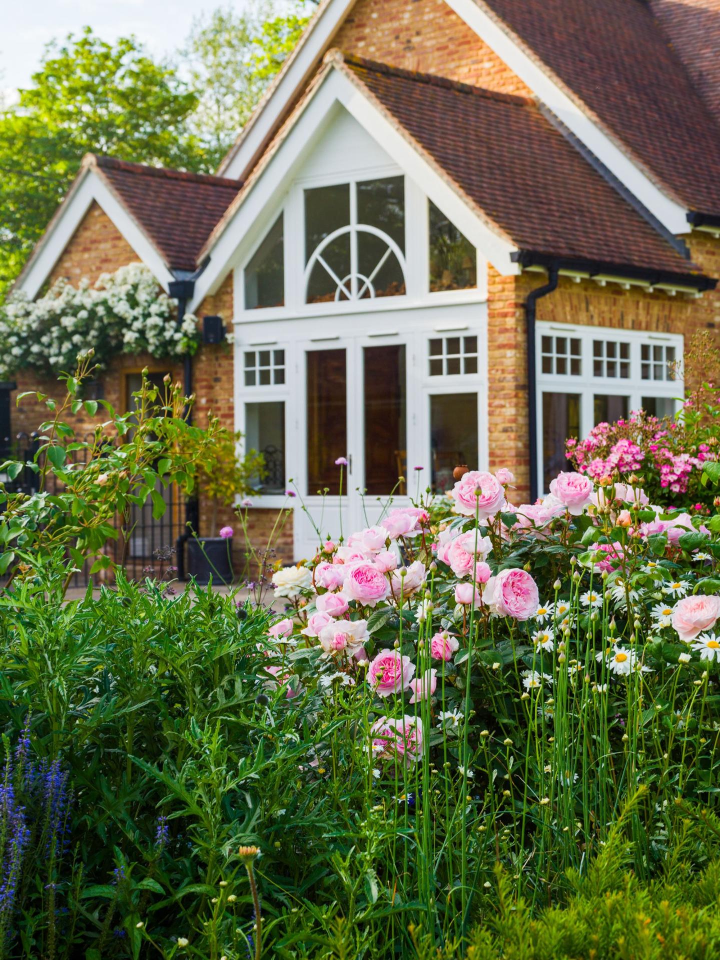 The patio area is bordered by one of many mature, beautifully planted perennial borders, adjacent to the Hartley botanical greenhouse.