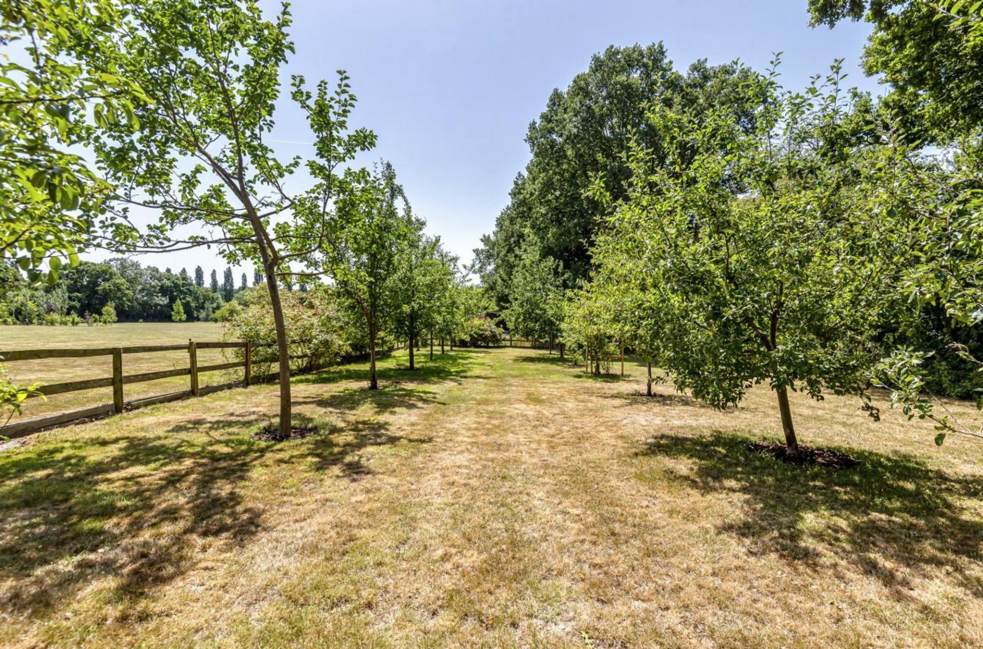 Swathes of clipped beech hedging edge the pathways and lead the eye to the expansive lawns which have been carefully enhanced with native specimen trees, a small orchard, as well as many David Austin roses.