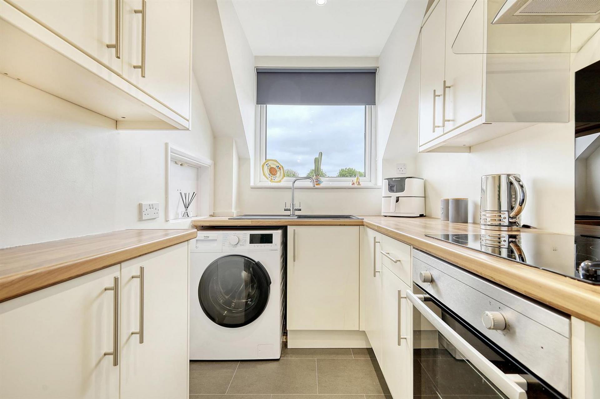 On entering you are welcomed by a bright entrance hallway which draws the eye towards the bright and spacious sitting/dining room. Both bedrooms are of good size, with bedroom one benefiting from built-in fitted wardrobes. A well-appointed bathroom, with shower over the bath, a separate WC which serves both bedrooms. The kitchen is also fitted with a range of wall and base units with some fitted appliances.