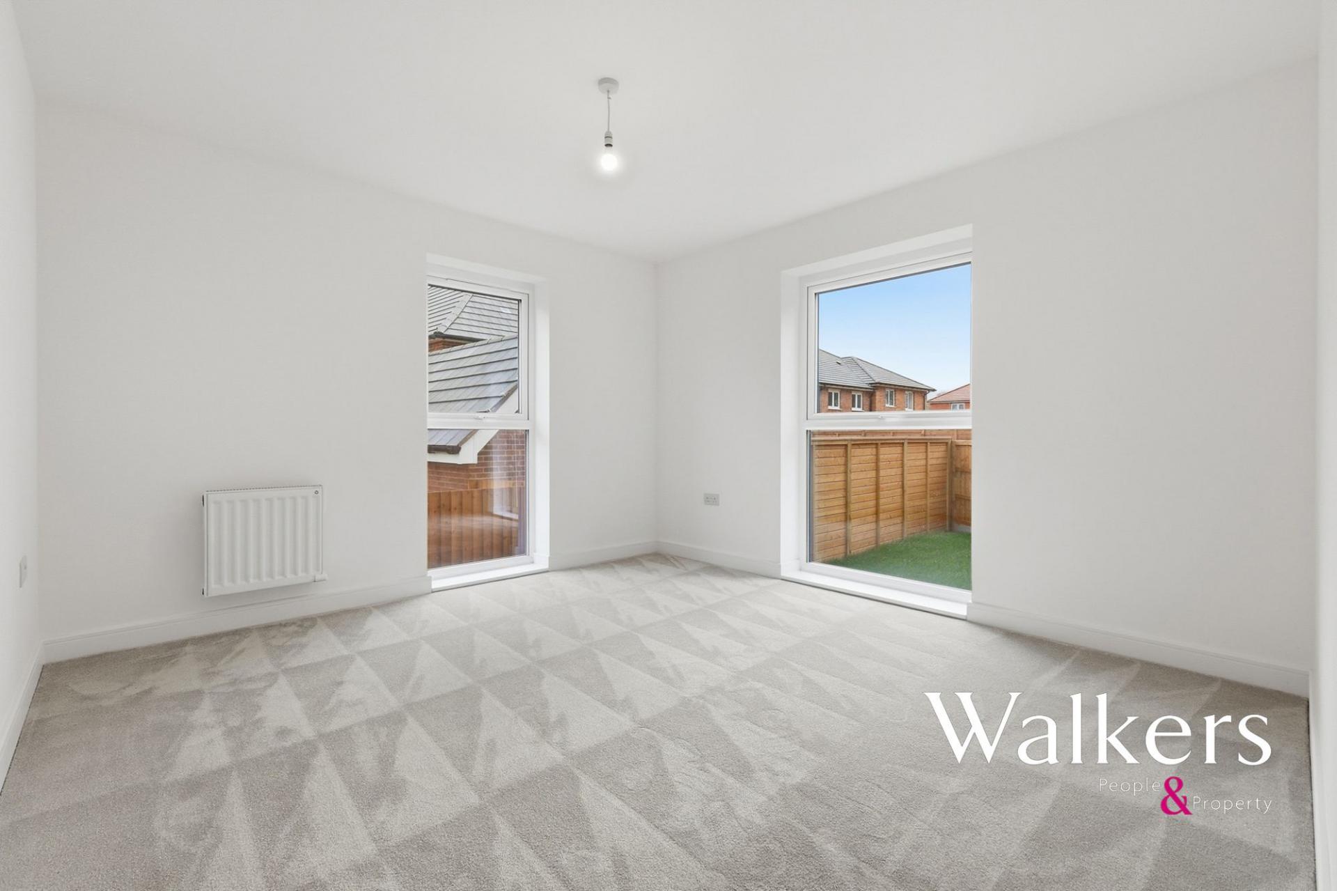The accommodation includes two well-proportioned bedrooms, with the principal bedroom enjoying an en-suite shower room, while bedroom two benefits from dual-aspect windows, creating a light and airy feel. A contemporary central bathroom and additional built-in storage off the hallway complete this well-balanced home.