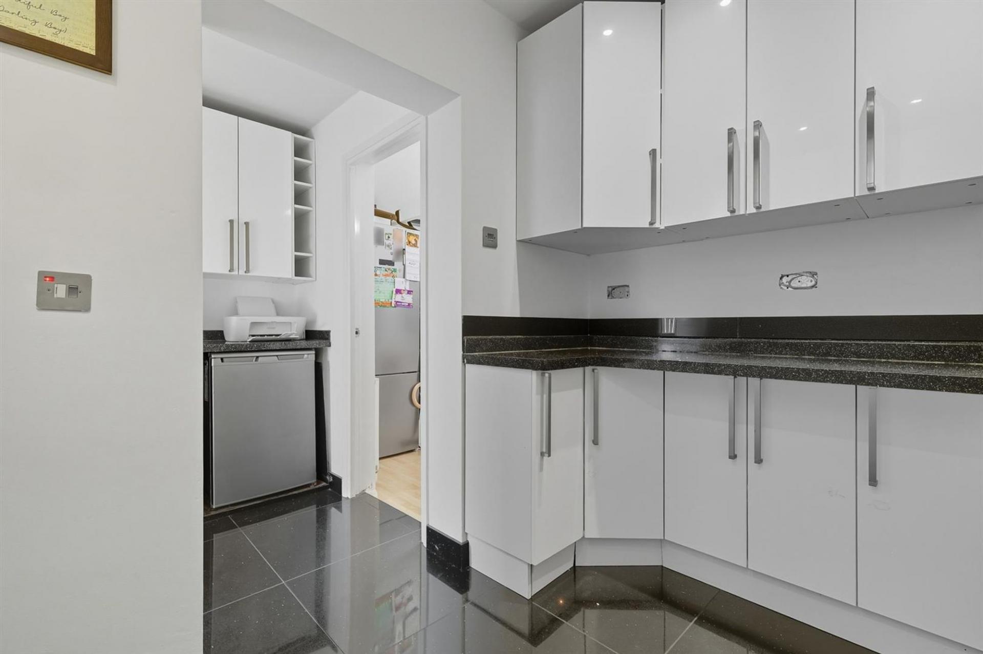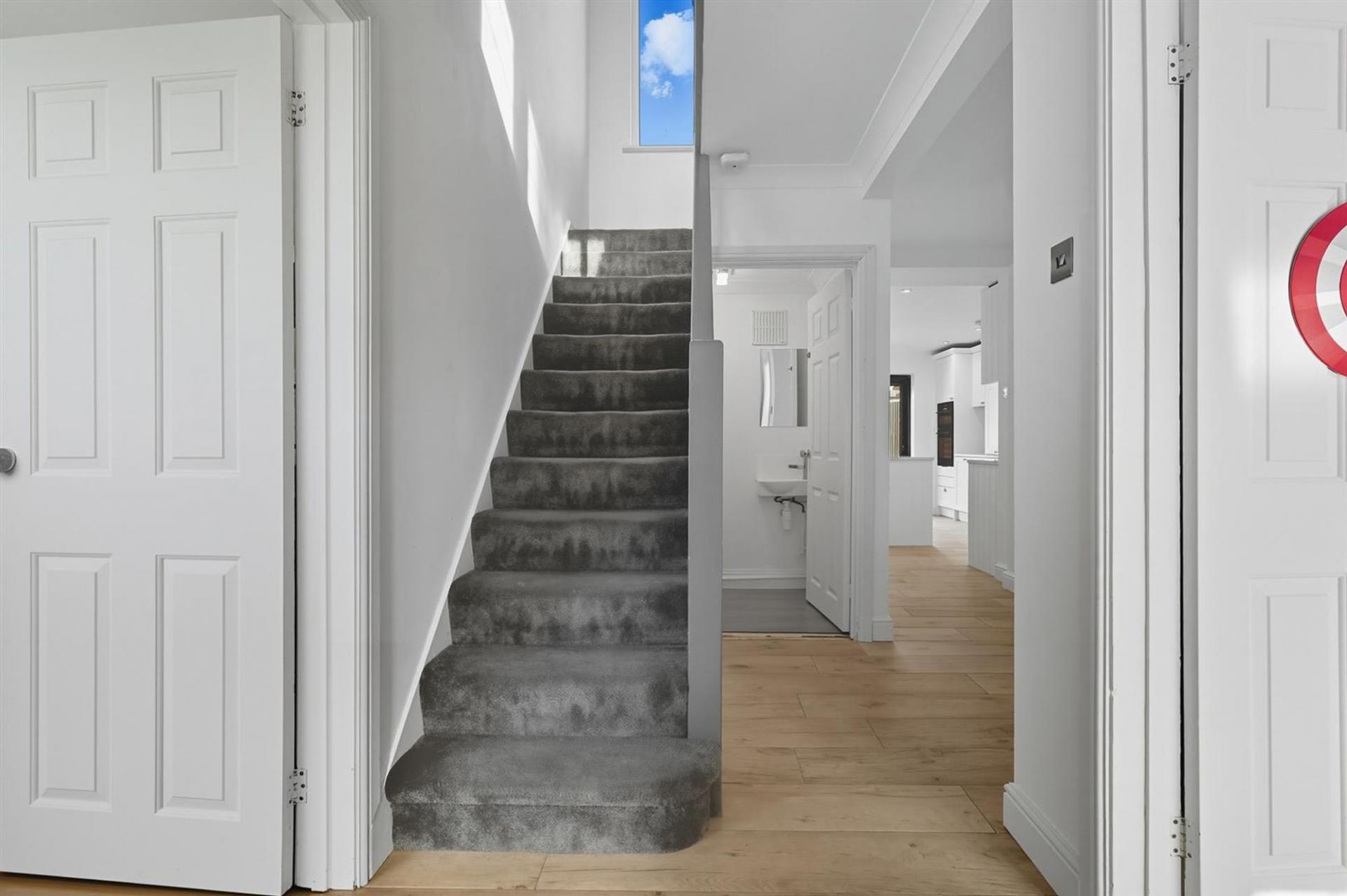 Thoughtfully extended to the rear, the heart of the home is the striking open-plan kitchen/dining space - an ideal setting for both family life and entertaining. Designed with style and function in mind, the kitchen features a central island with a breakfast bar with room for the whole family with views over the rear garden through the extensive sliding doors.