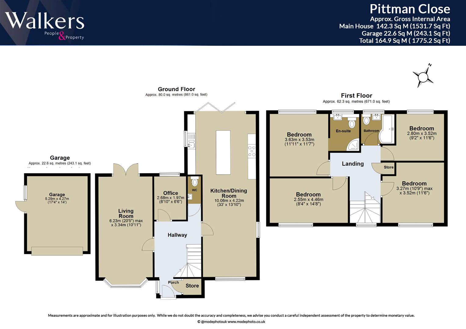 Step inside and you'll find a welcoming layout that flows effortlessly throughout. The spacious through-lounge, complete with a charming feature fireplace, offers the perfect setting for both relaxing and entertaining. A dedicated study provides an ideal space for home working, while the extended kitchen/dining room with a central island creates a contemporary hub for family life and social gatherings. A downstairs WC adds to the convenience. Upstairs, four well-proportioned bedrooms include a superb principal suite with en-suite shower room, complemented by a modern family bathroom.