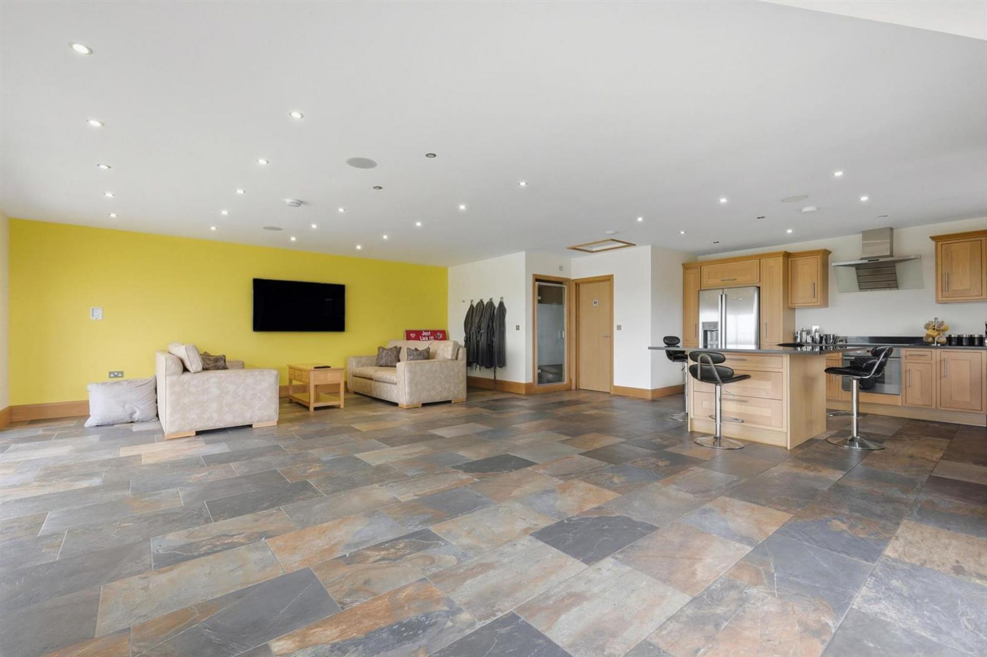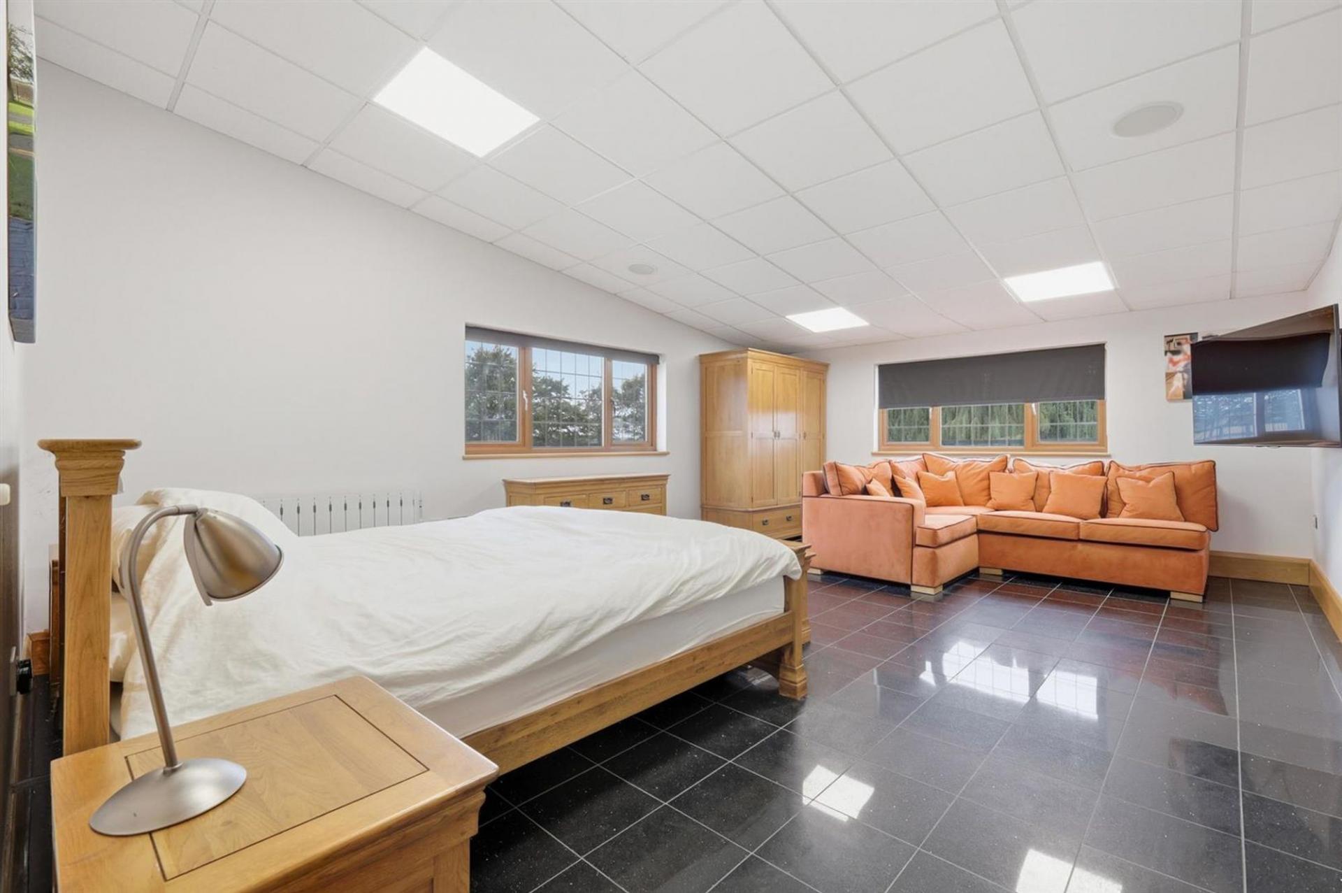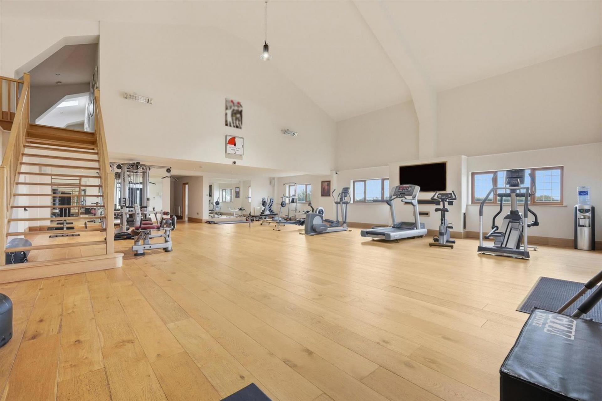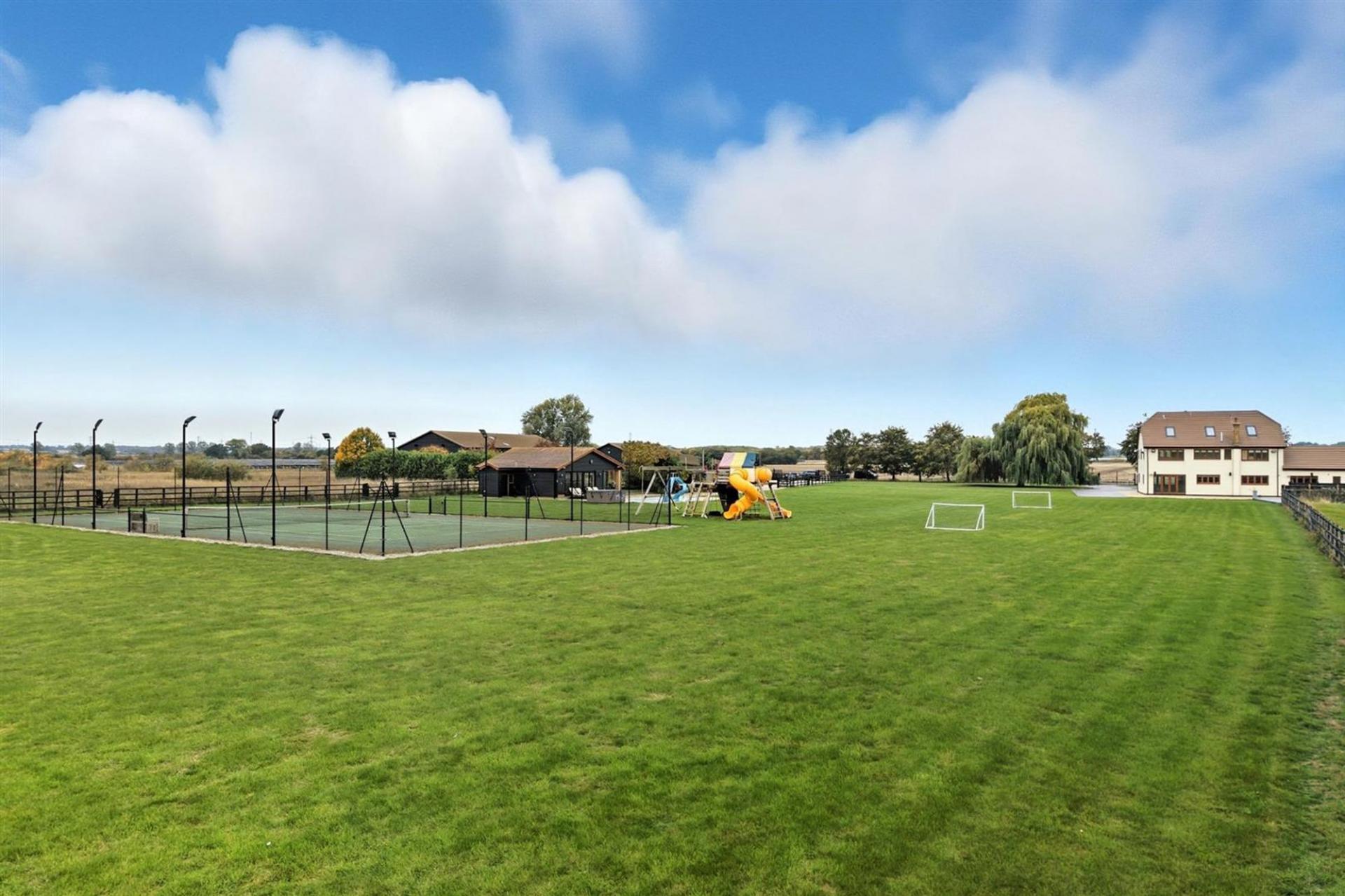 The present owners have created a superb lifestyle home, offering the ultimate in family entertainment with an abundance of leisure space to include a gym, swimming pool, tennis court, cinema room, giant play barn, home offices, a large self-contained annexe, machinery storage, and a large outdoor entertaining terrace. In addition, a large paddock sits to the rear of the plot, providing equestrian use potential, and great deal of hardstanding is also available around the barns. Two separate gated entrances provide secure access to both the main house and barns, with a vast amount of parking space and vehicle storage area.